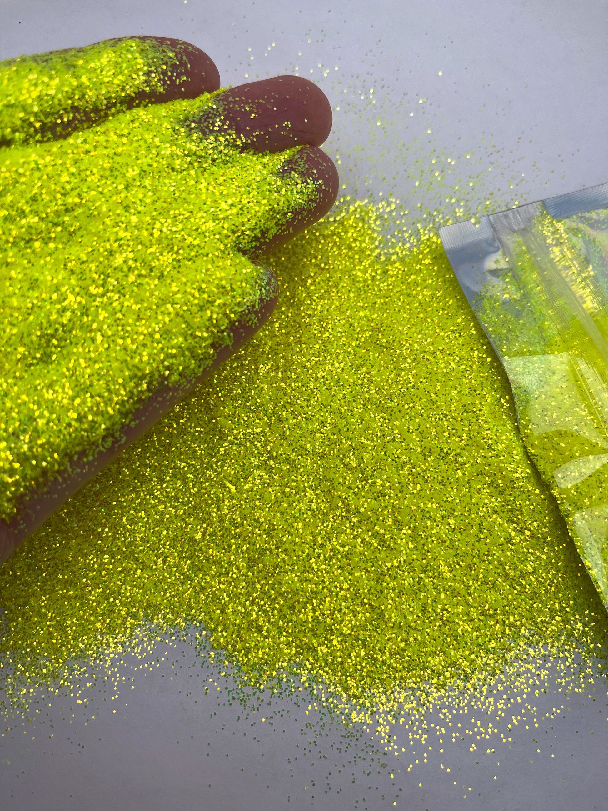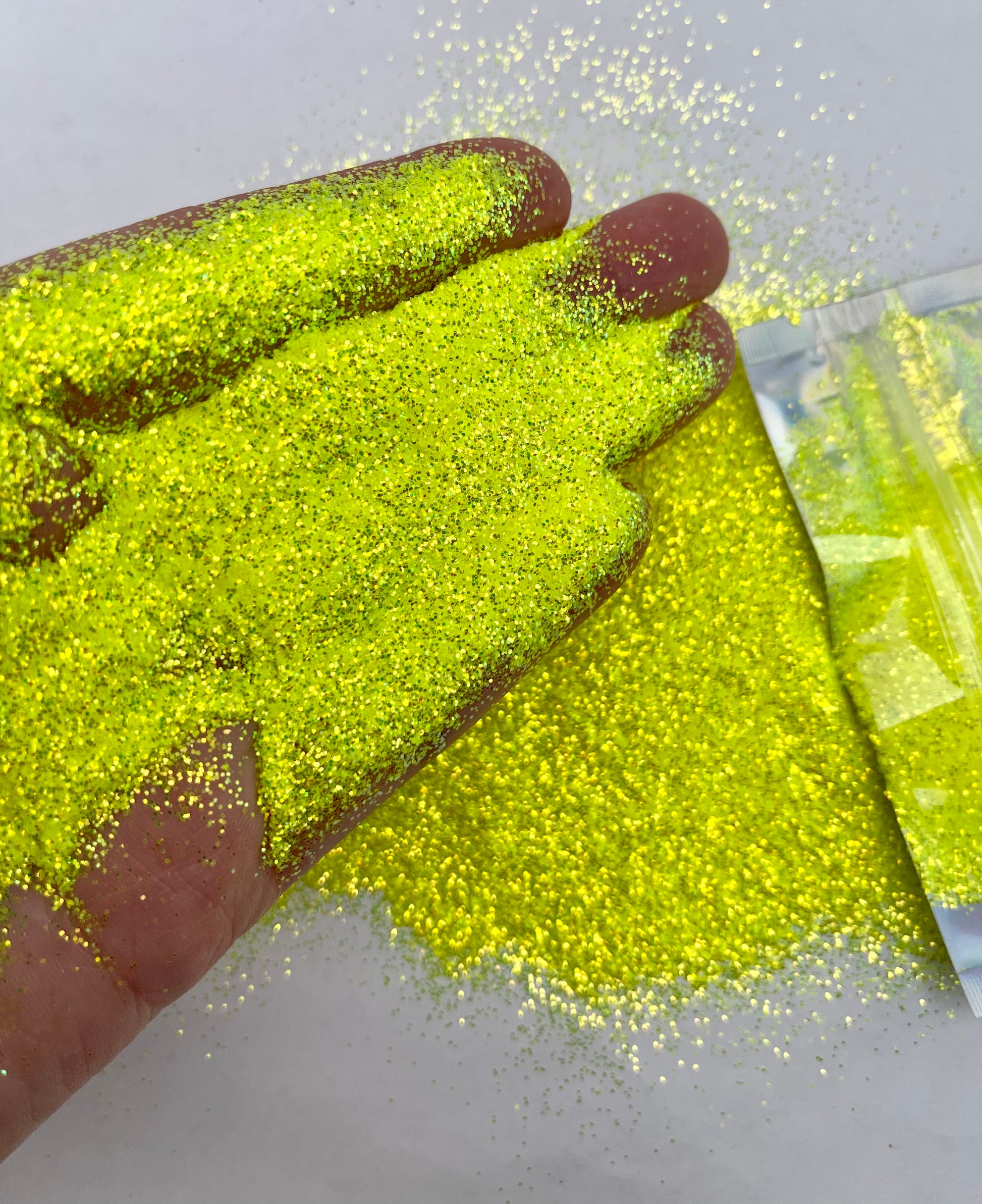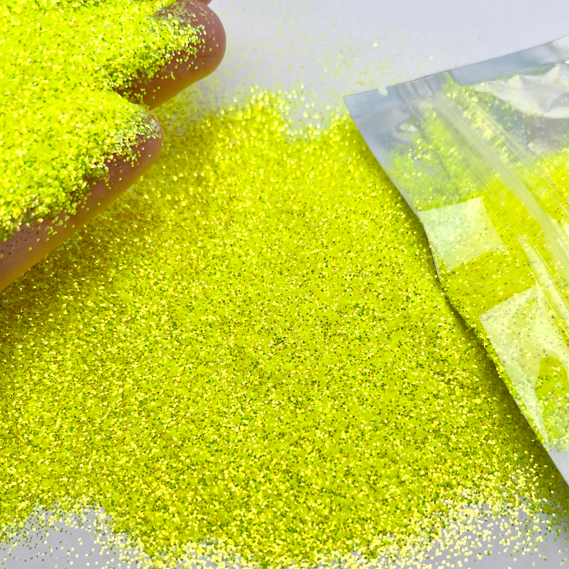 Lemon Drop is a neon high sparkling iridescent glitter.