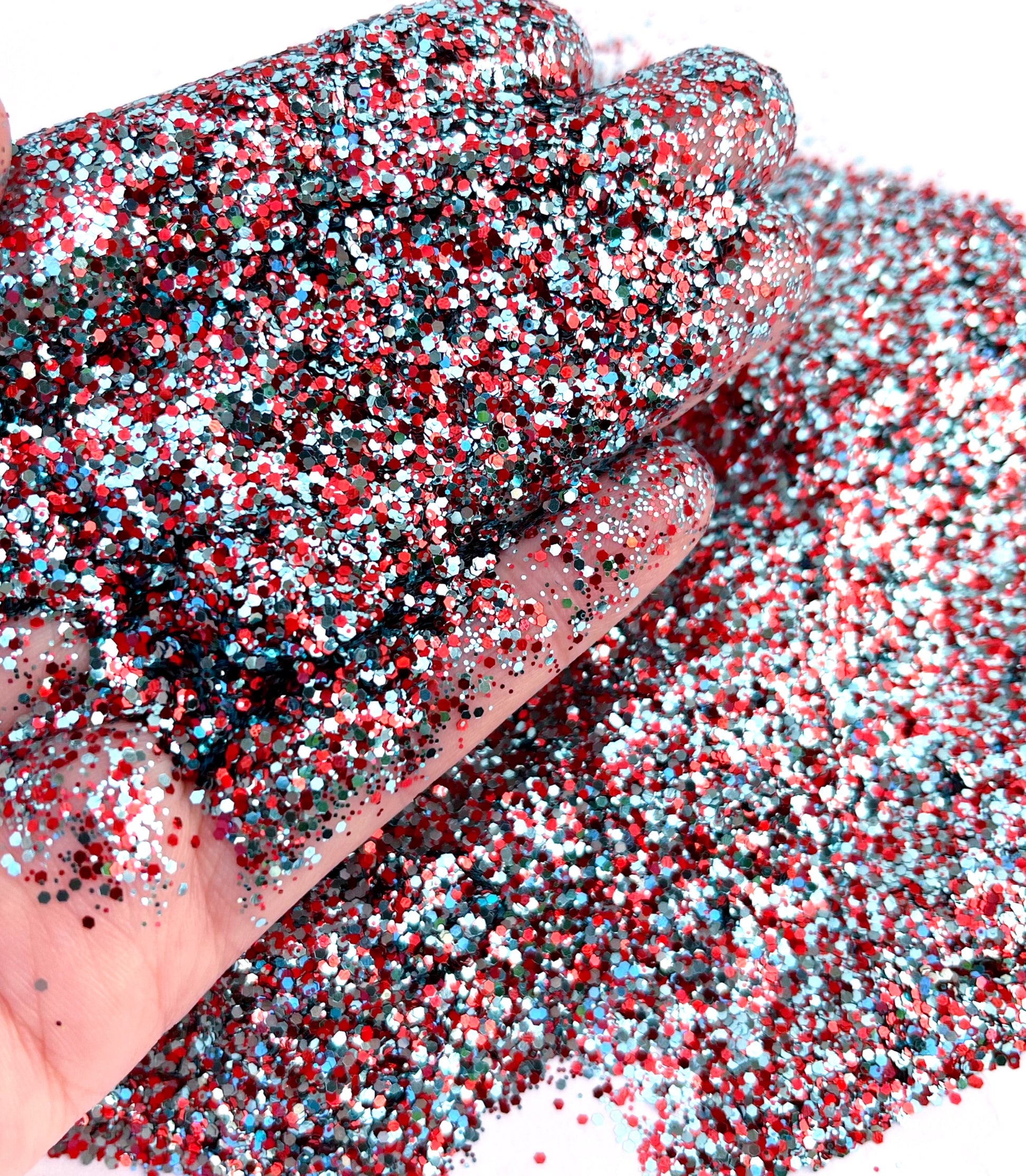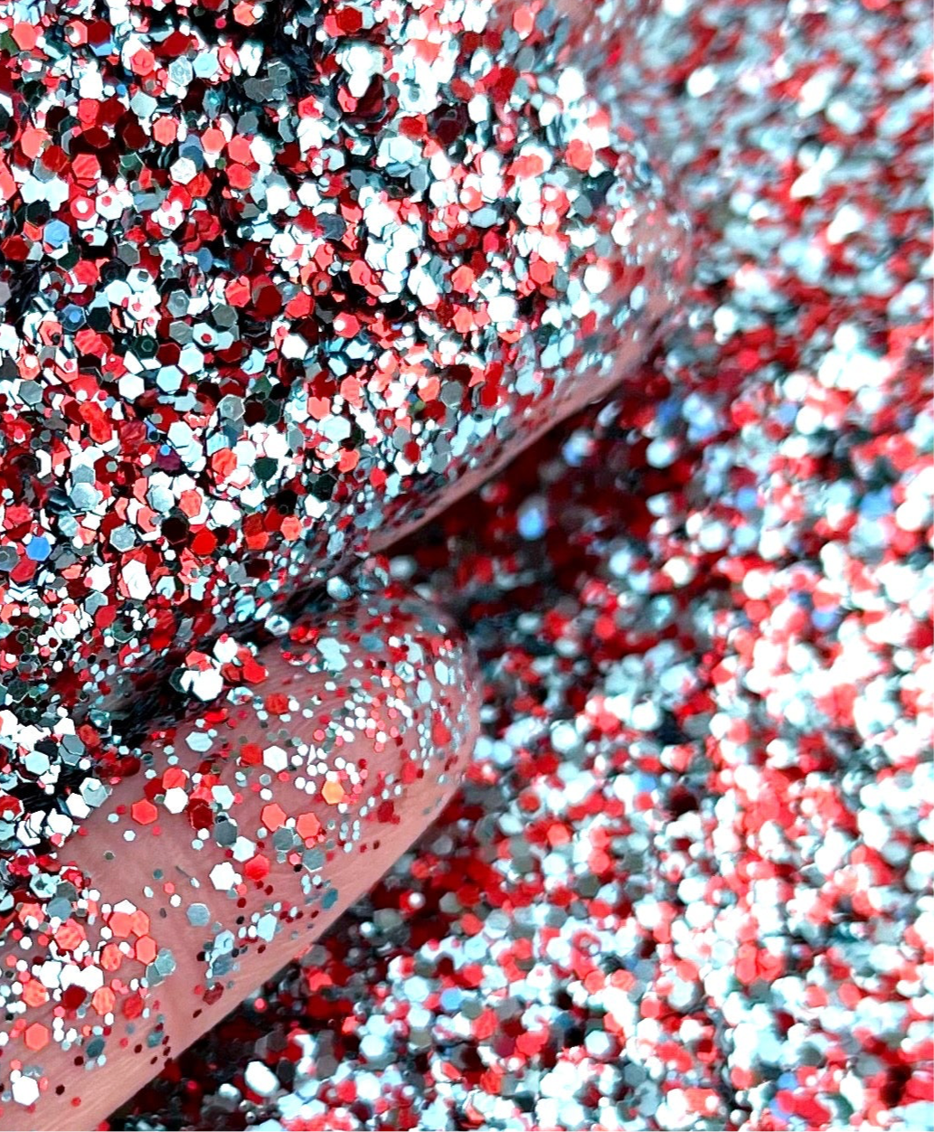 Liberty is a gorgeous mix of icy silvery blue and red. Custom mini chunky mix!
