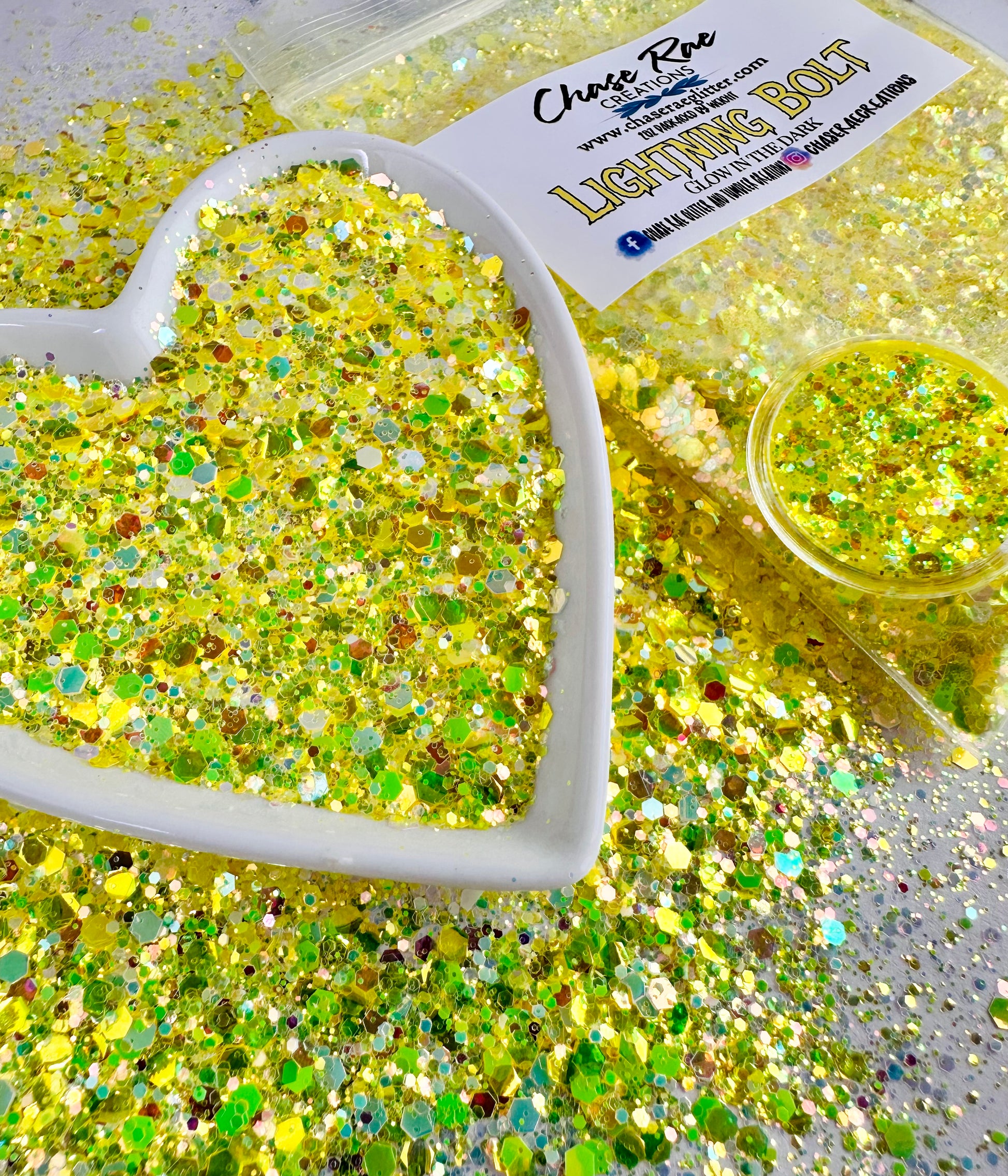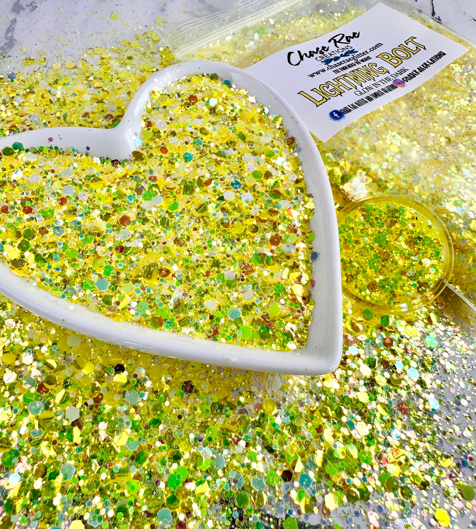 Lightning Bolt is a gorgeous, bright yellow, glow in the dark Chunky mix.