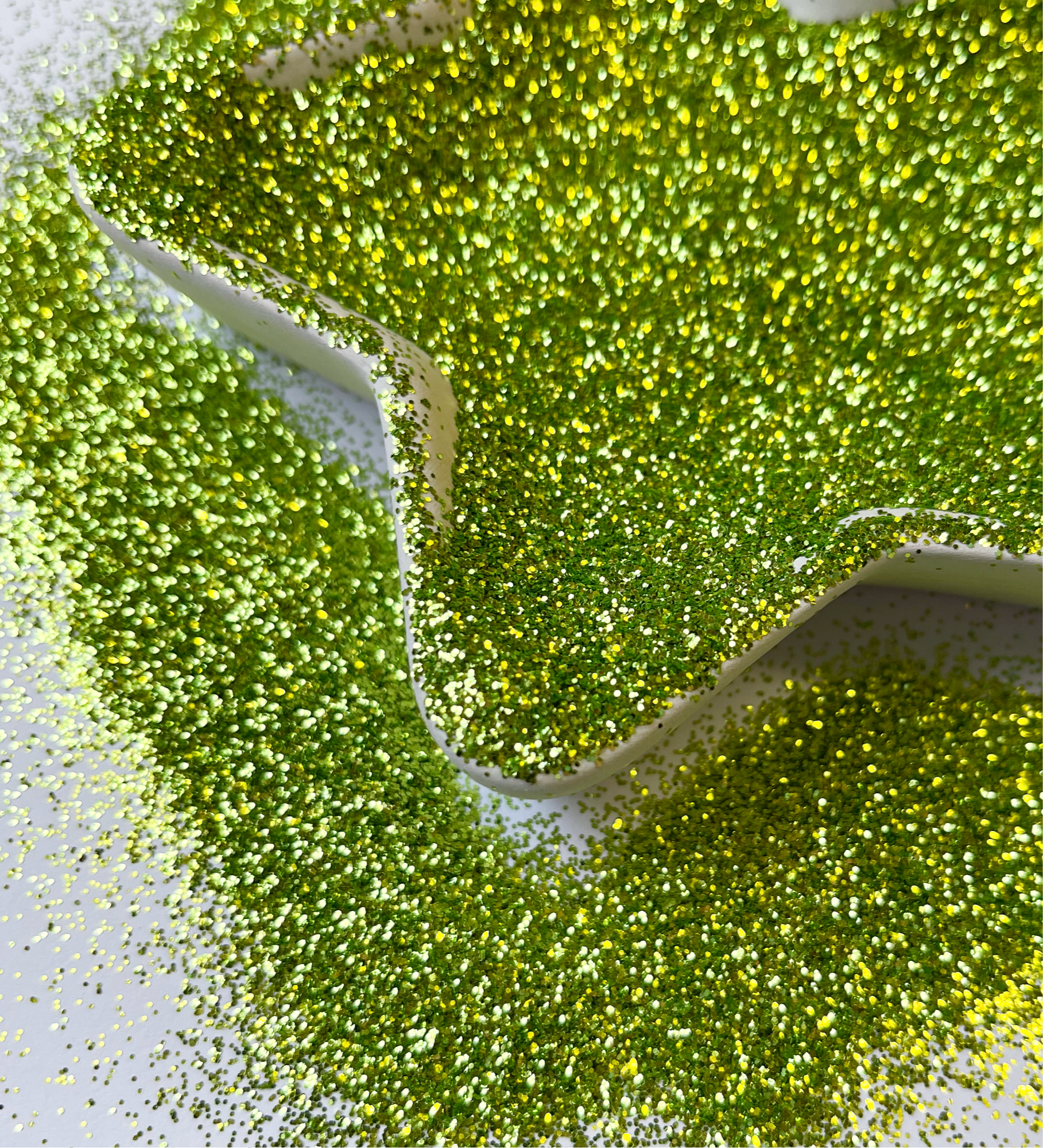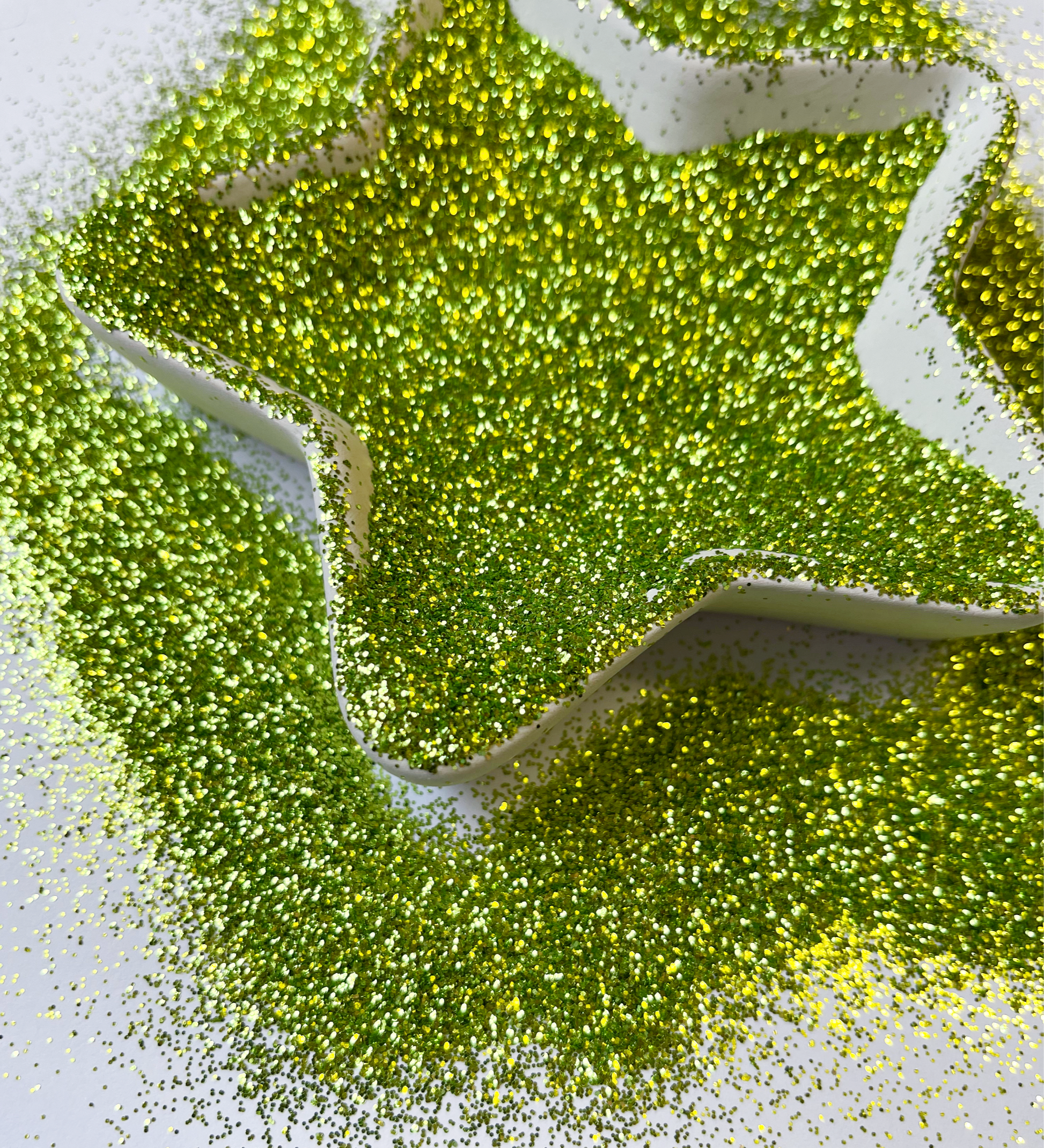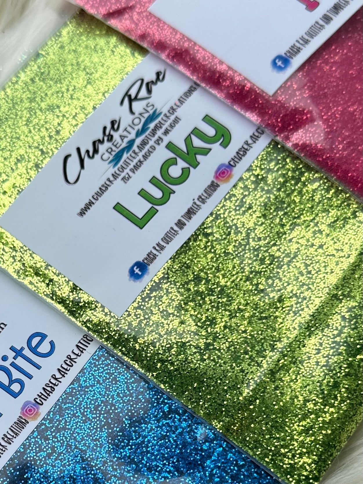 Lucky is a solid color bright green glitter. Pics do this one no justice!