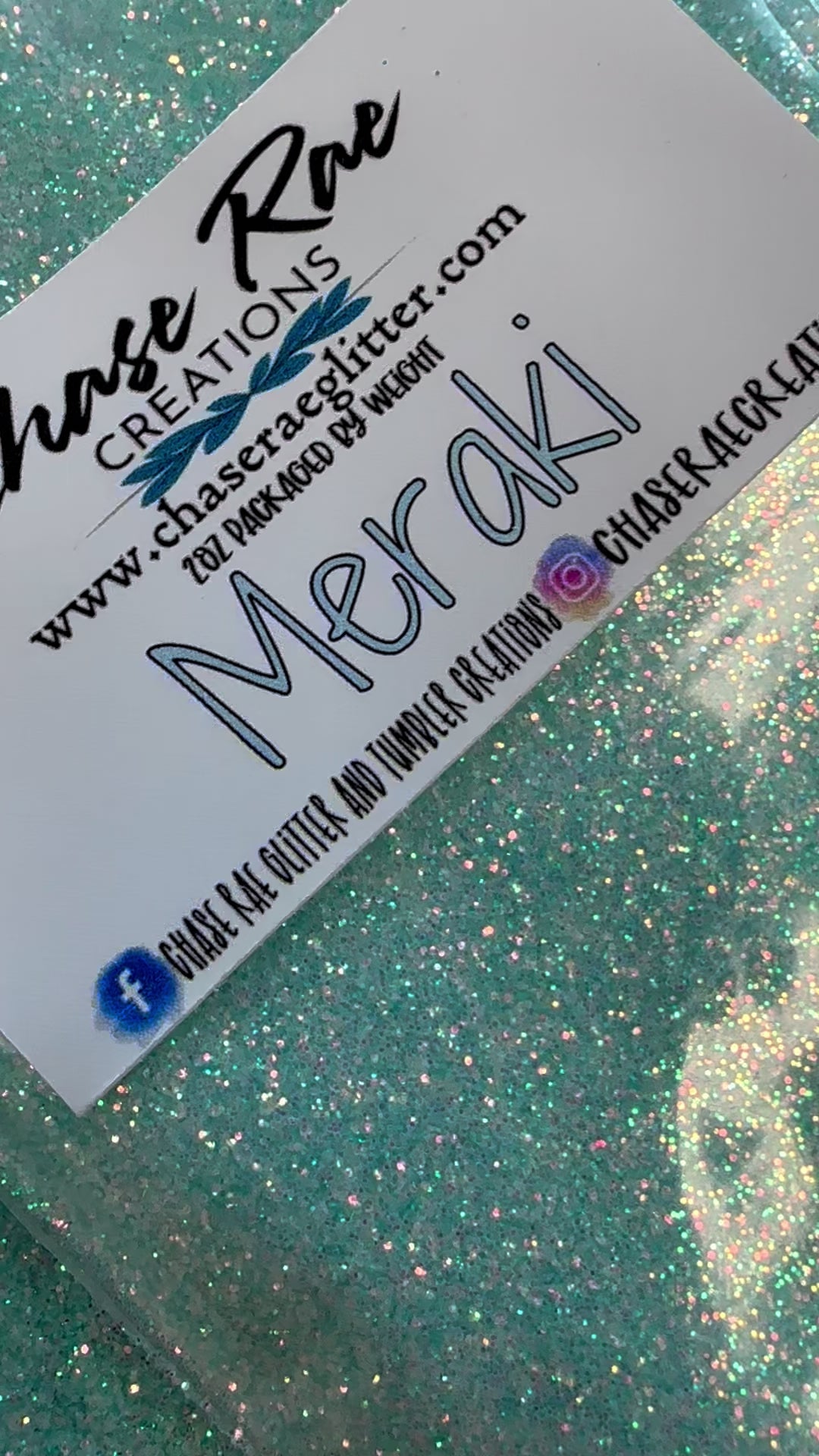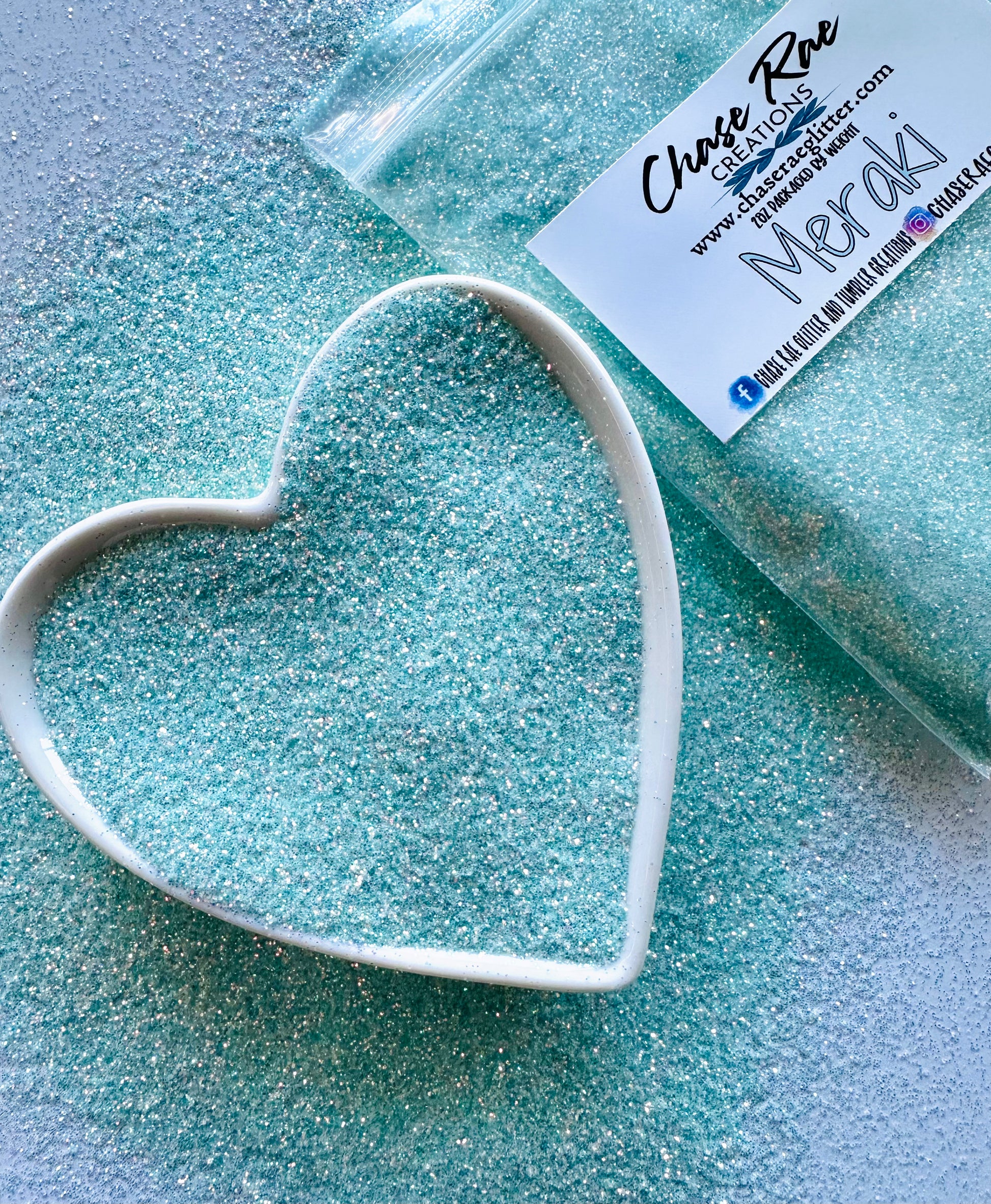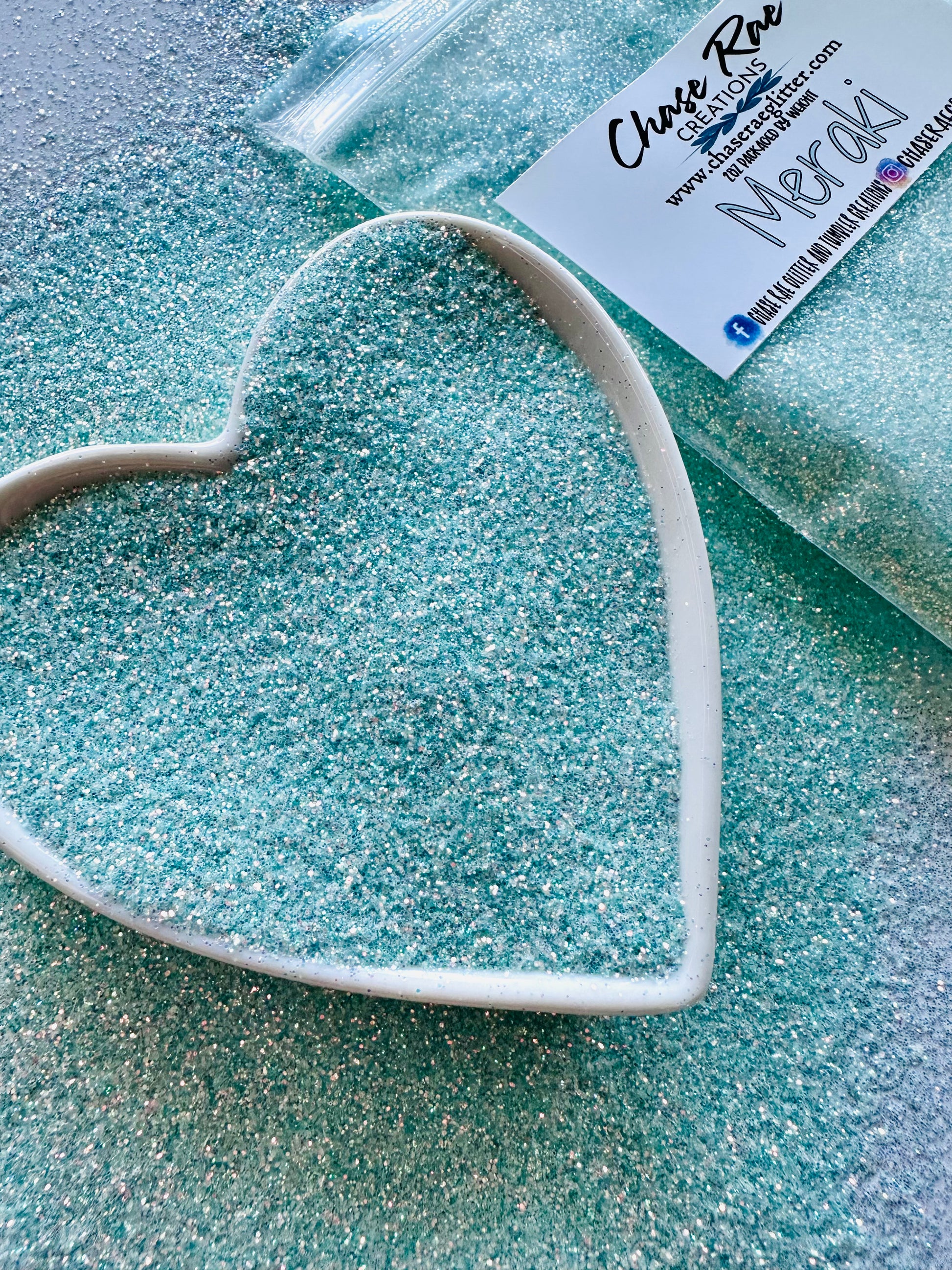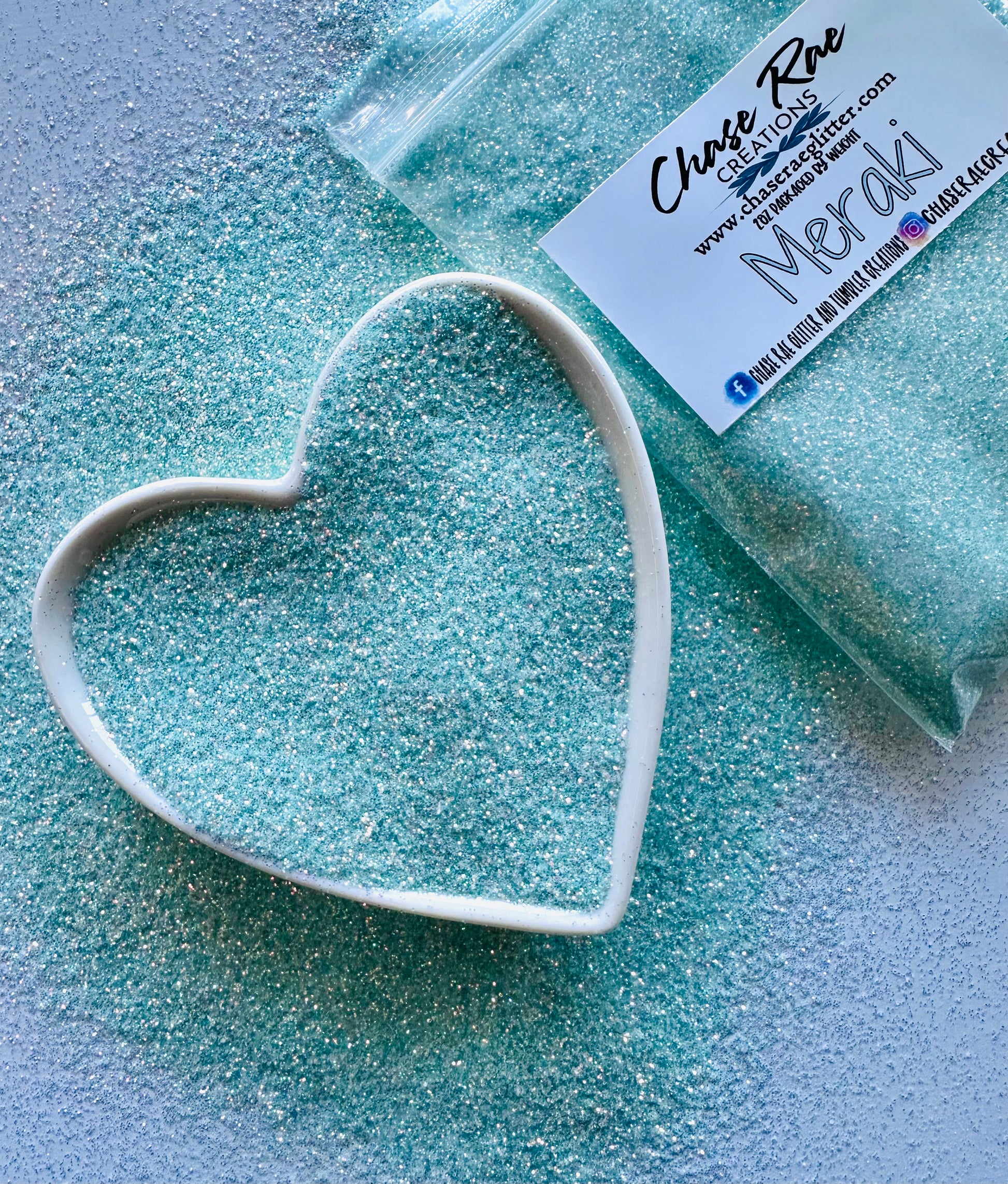 Meraki is such a gorgeous glitter! Soft, tiffany blue opal. Has a rainbow shimmer.