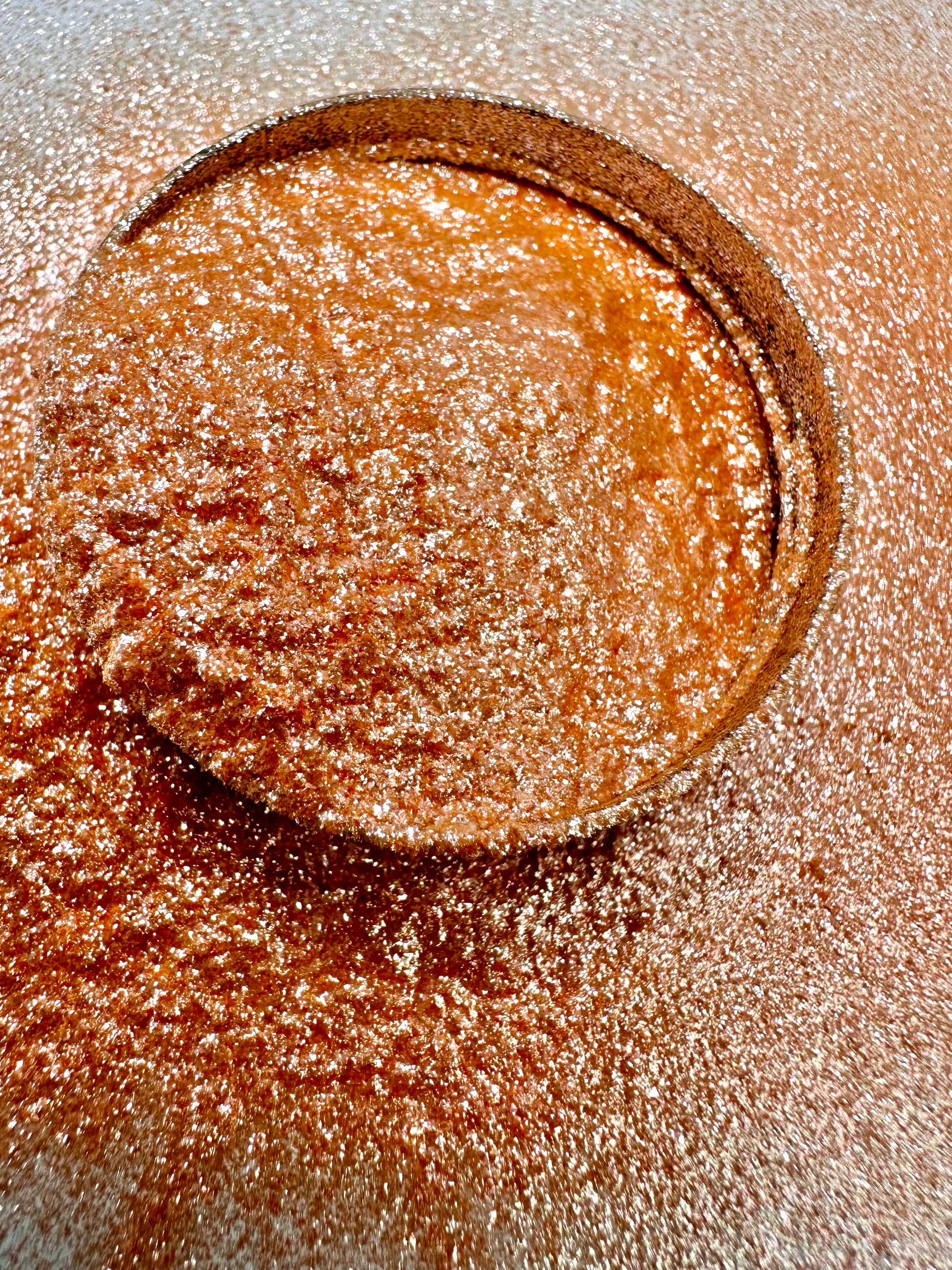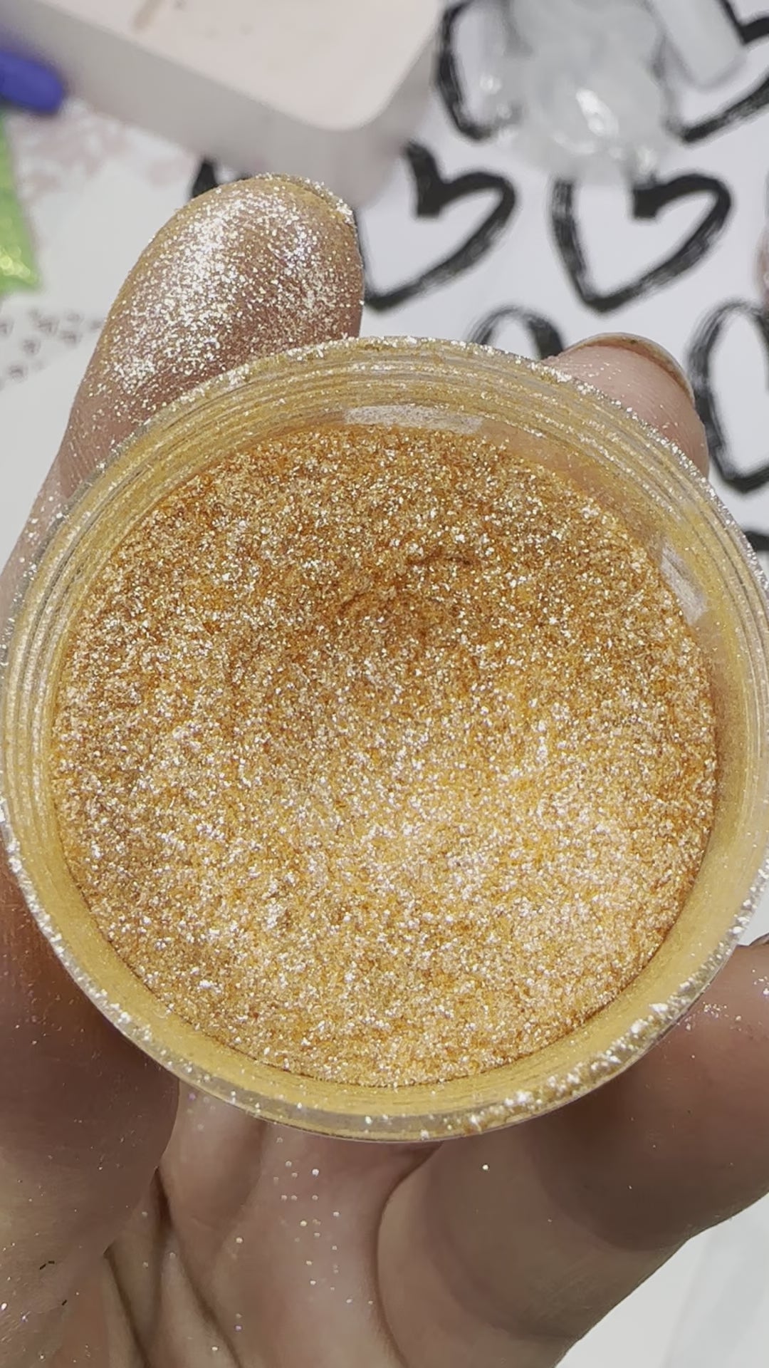 Mimosa is a gorgeous, bright orange, pearl mica flake. Super fine and lightweight!