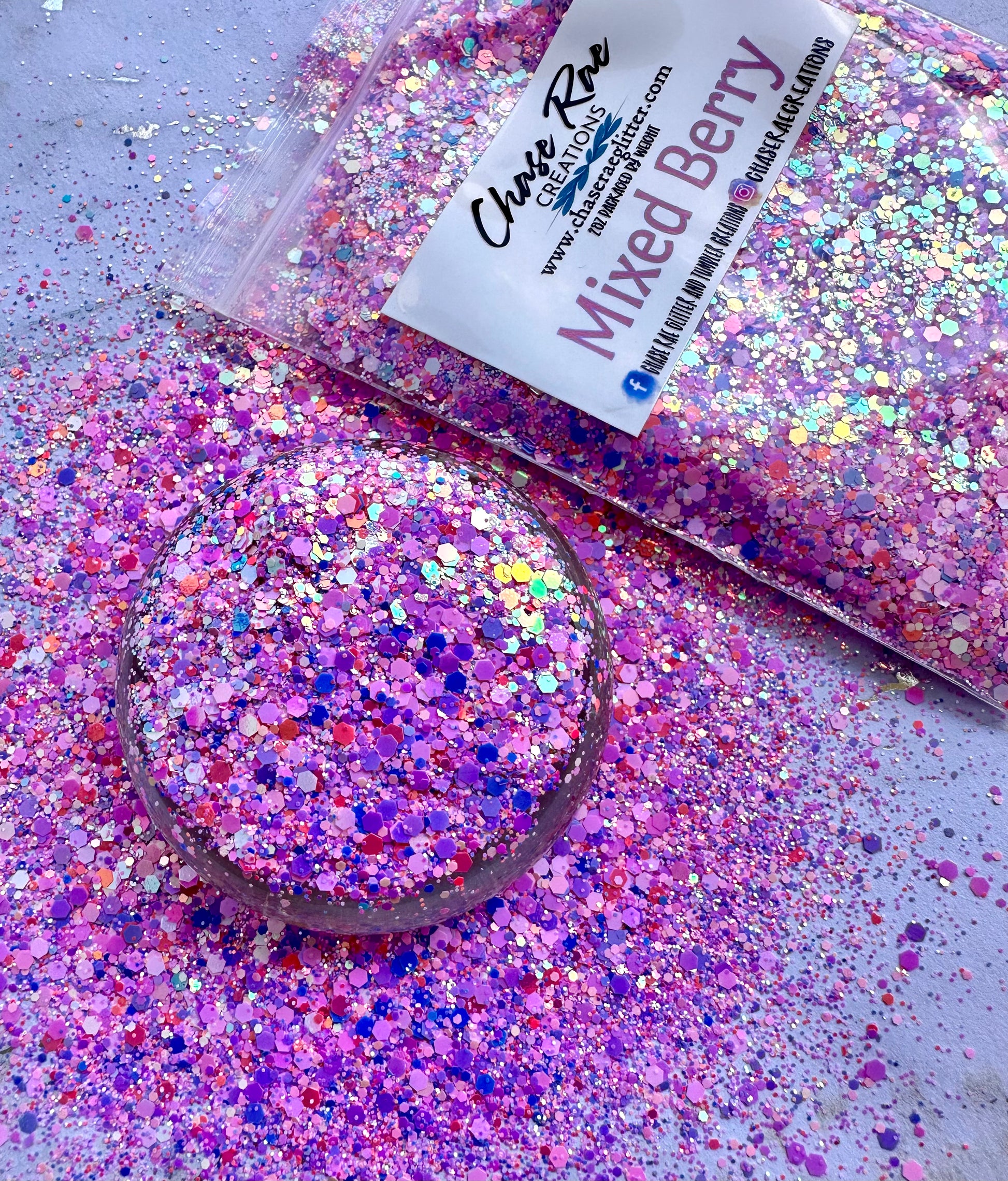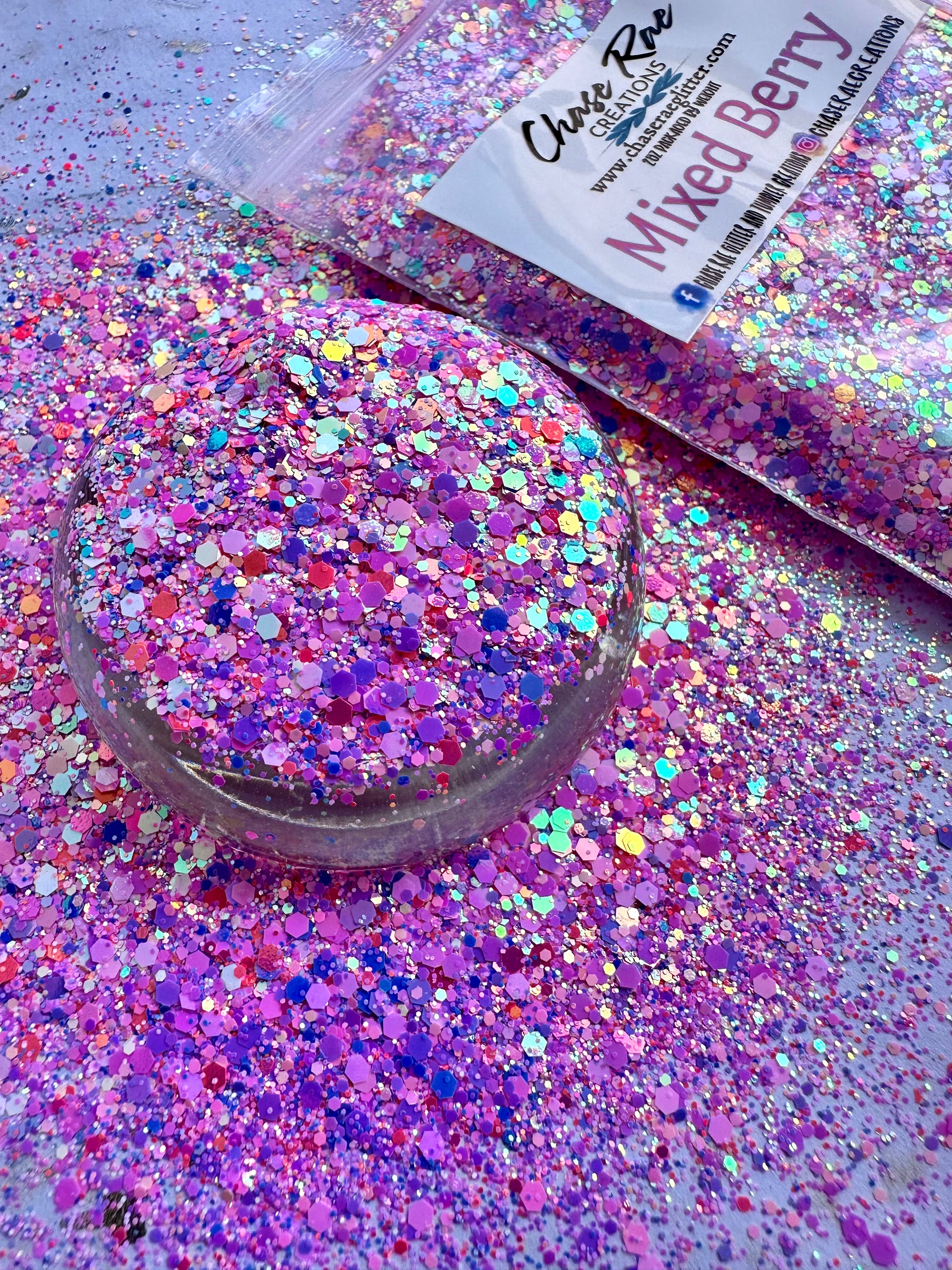 This semi chunky mix is perfect for Spring or Summer! Mixed Berry is a mix of pinks, purple, and a smidge of coral. All solid colors. Non-translucent.