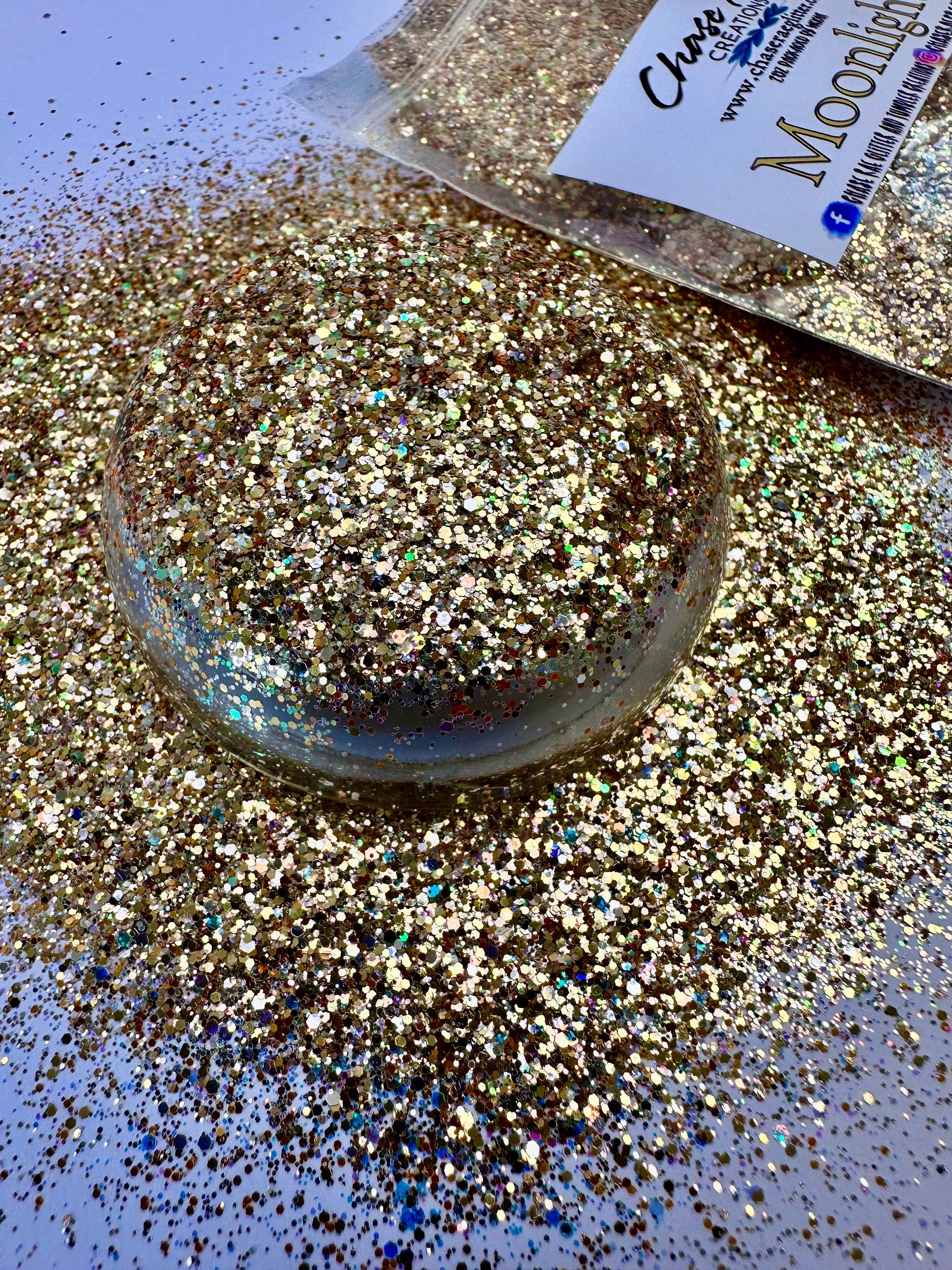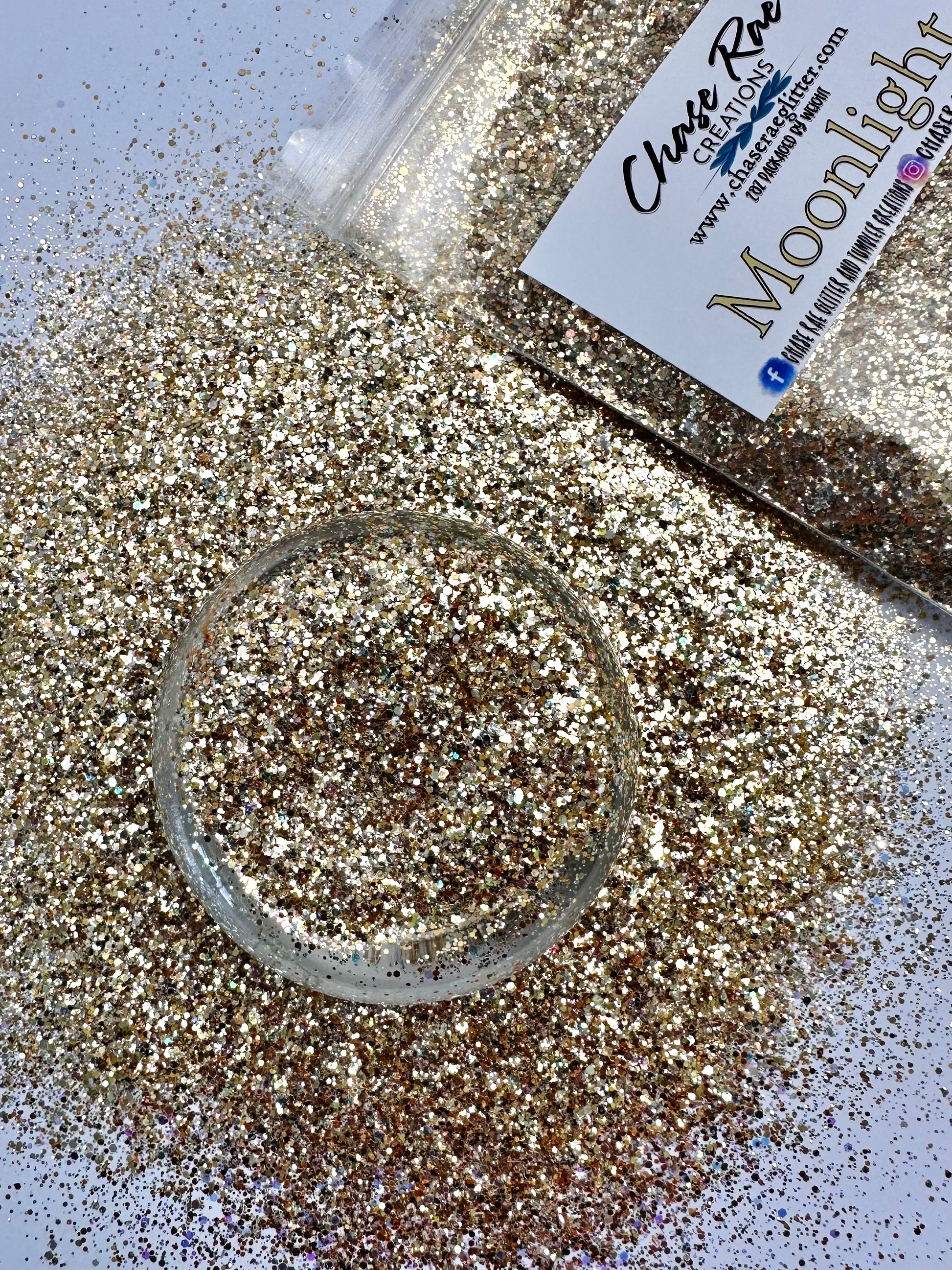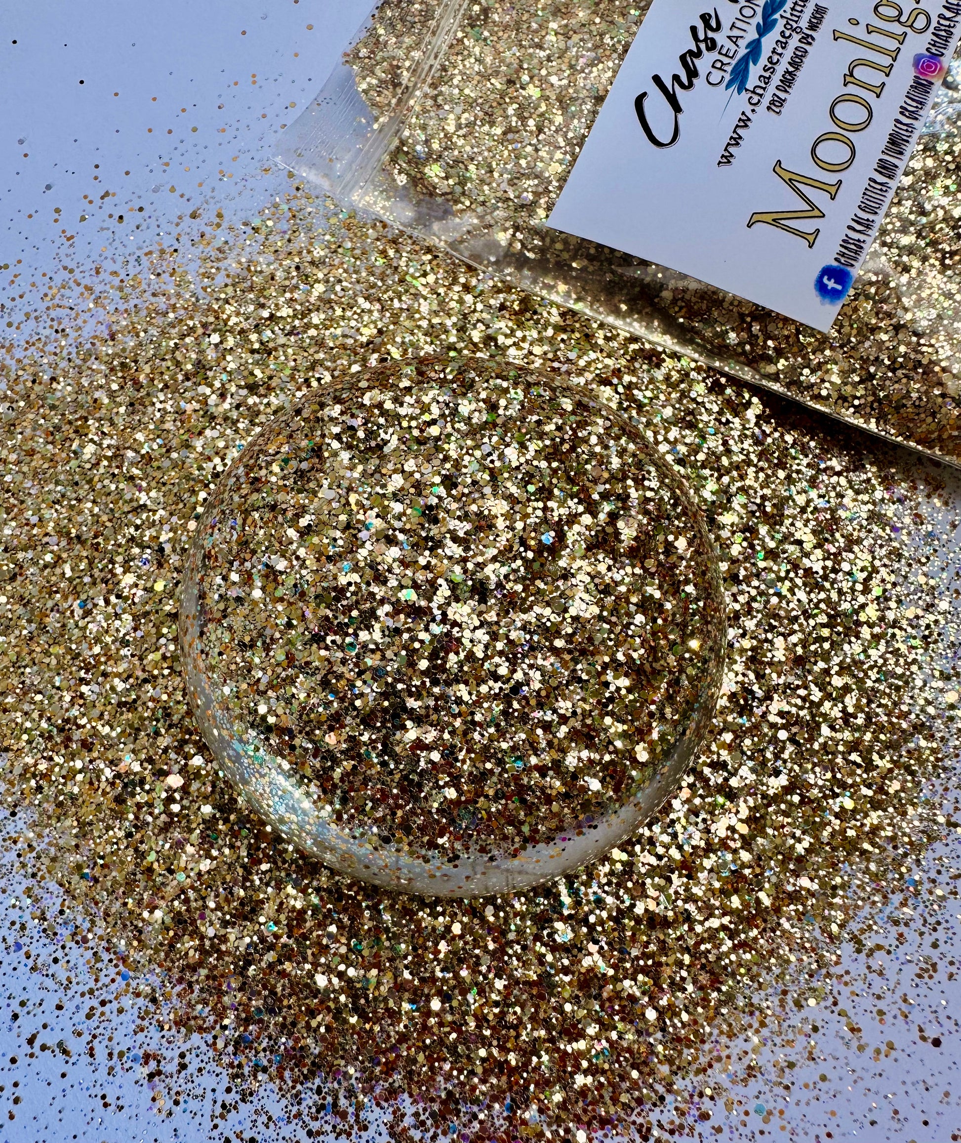 Moonlight is a mini chunky mix. Warm gold and a bit of silver and opal make up this gorgeous mix!