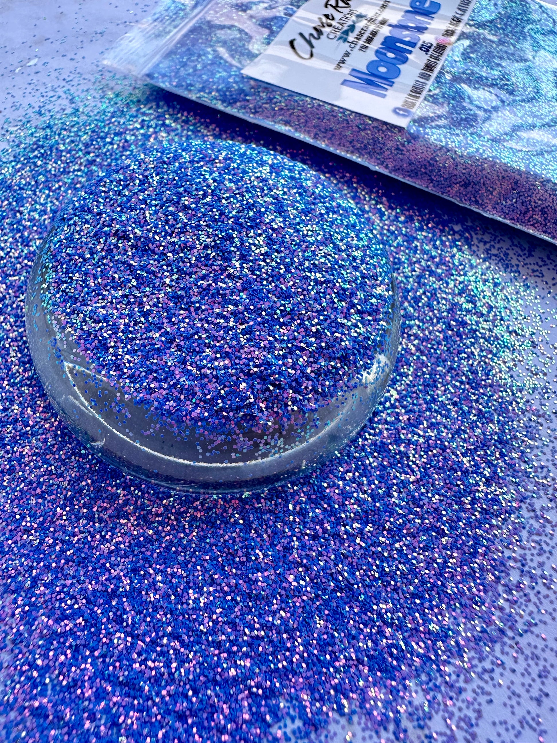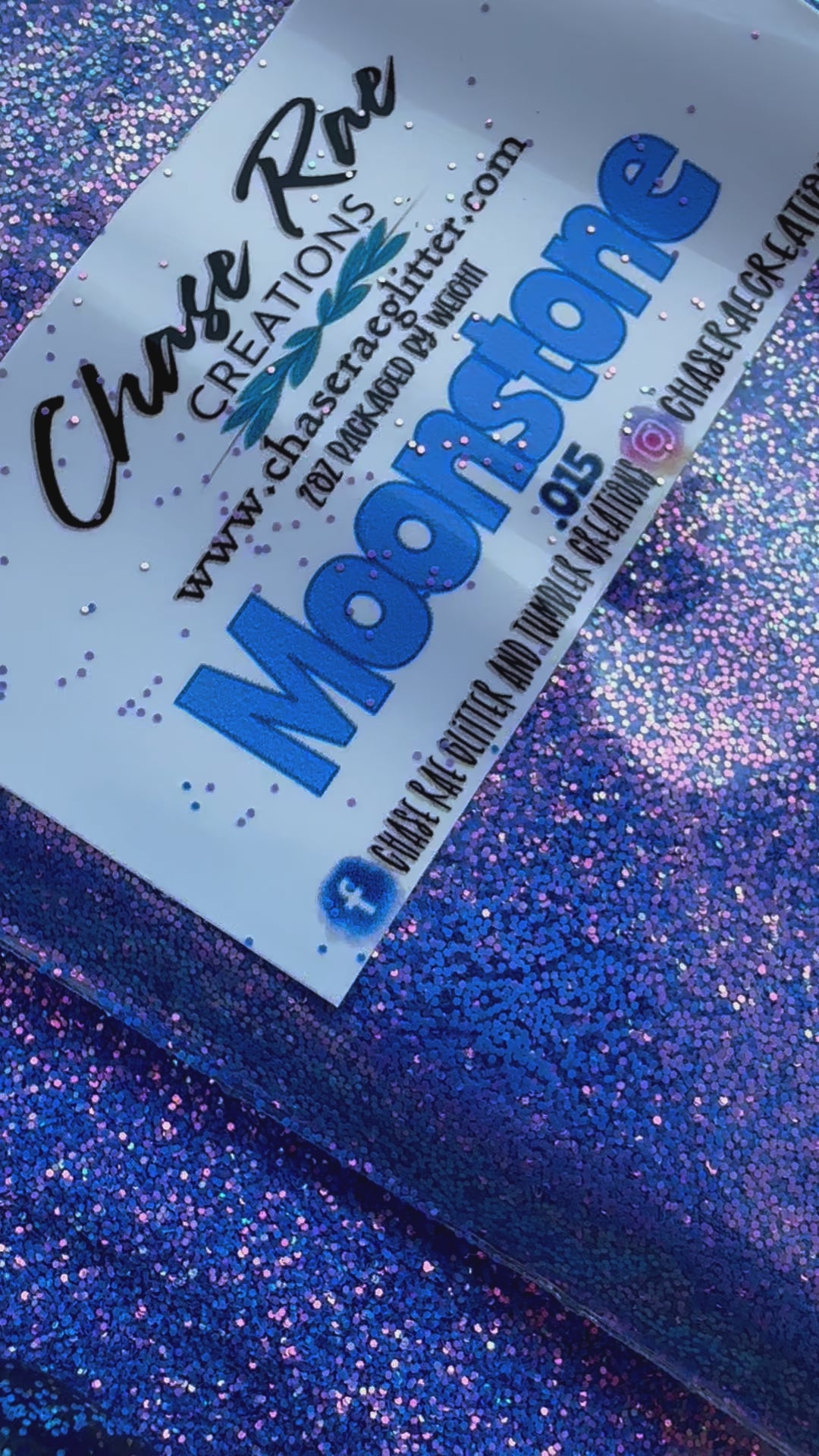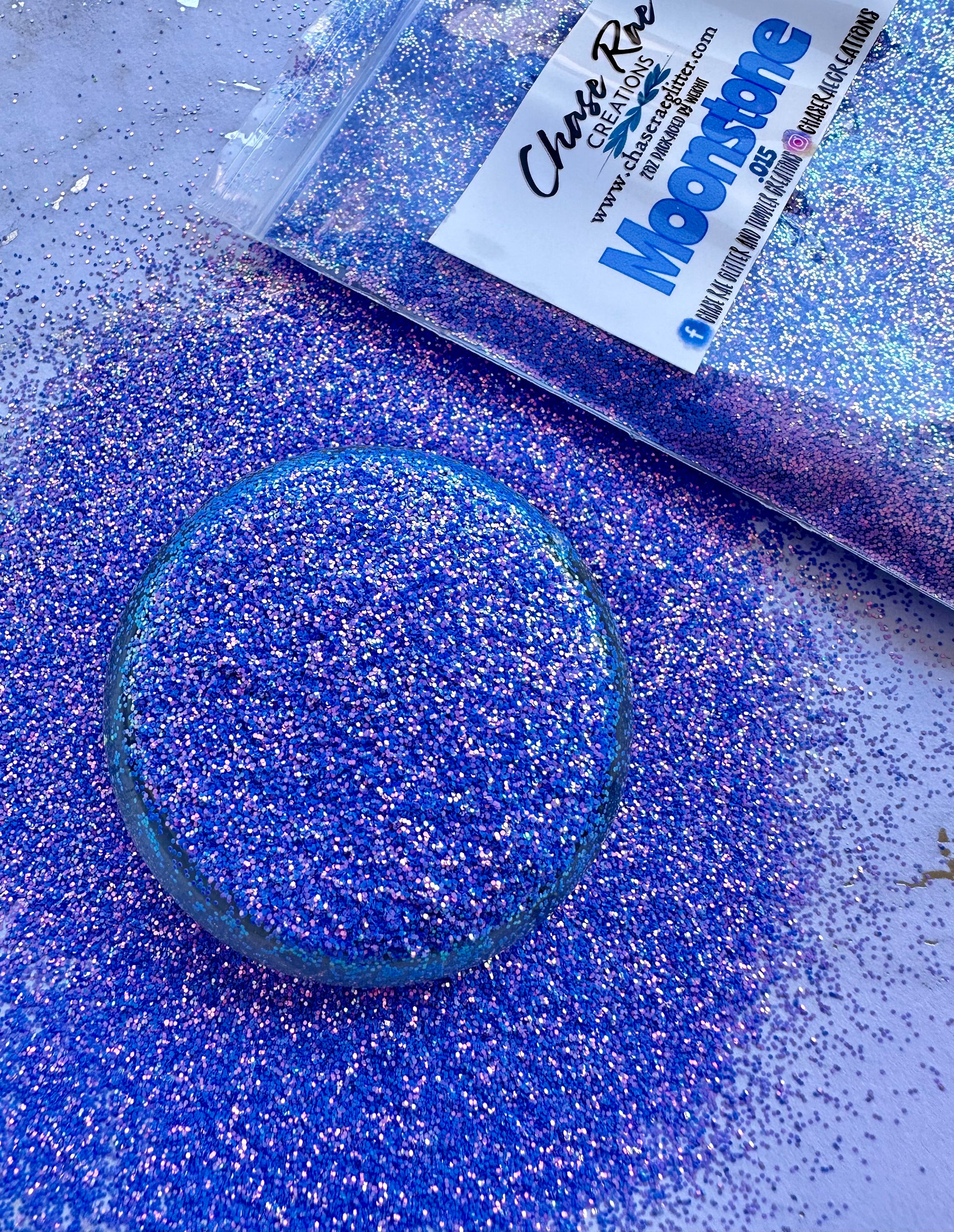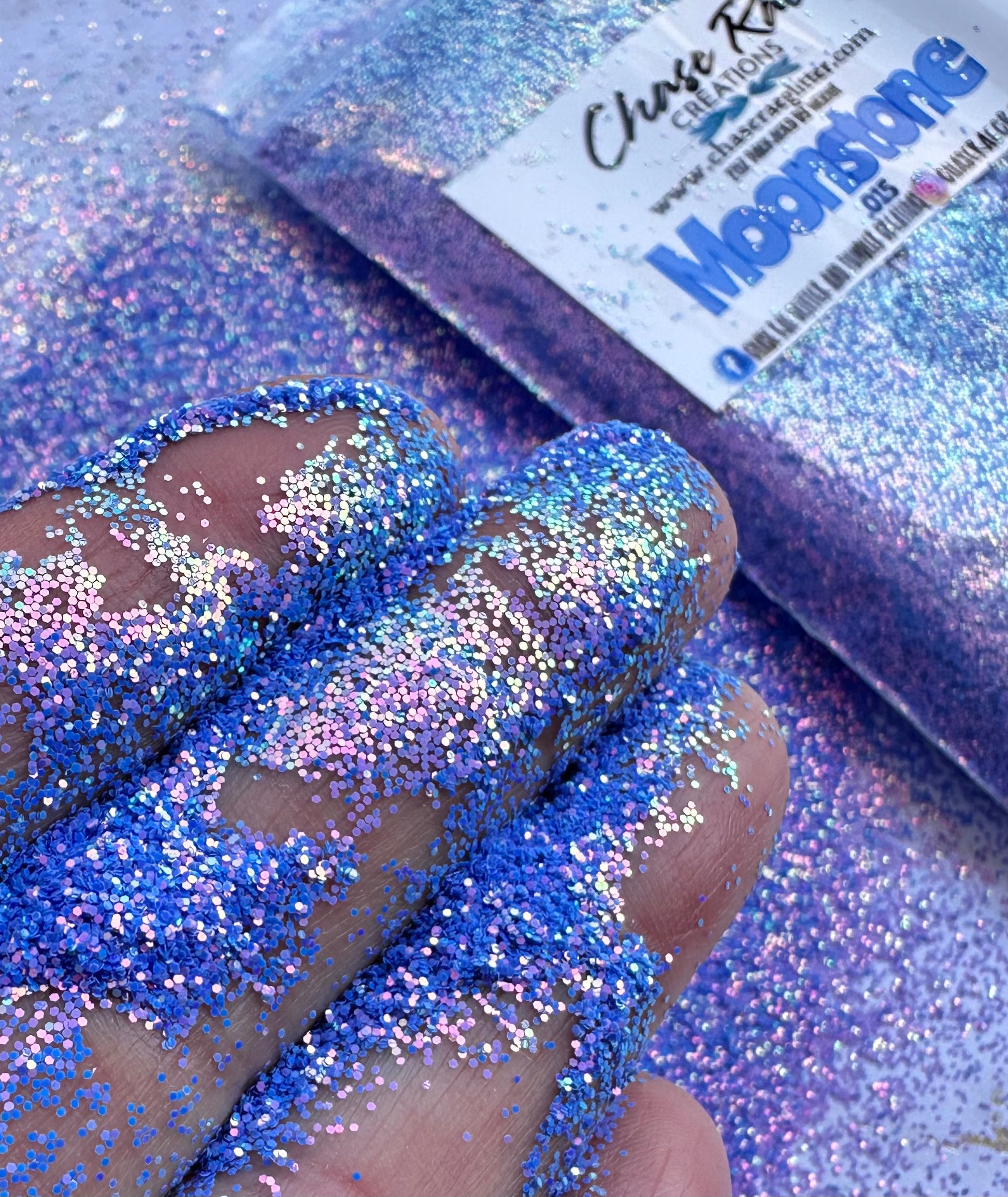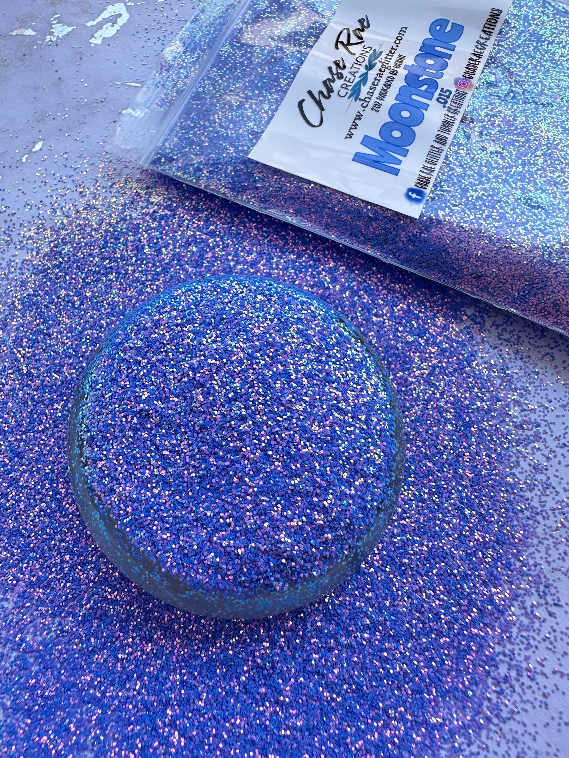 Moonstone is a gorgeous purple / blue glitter. Iridescent, but not translucent. Periwinkle.