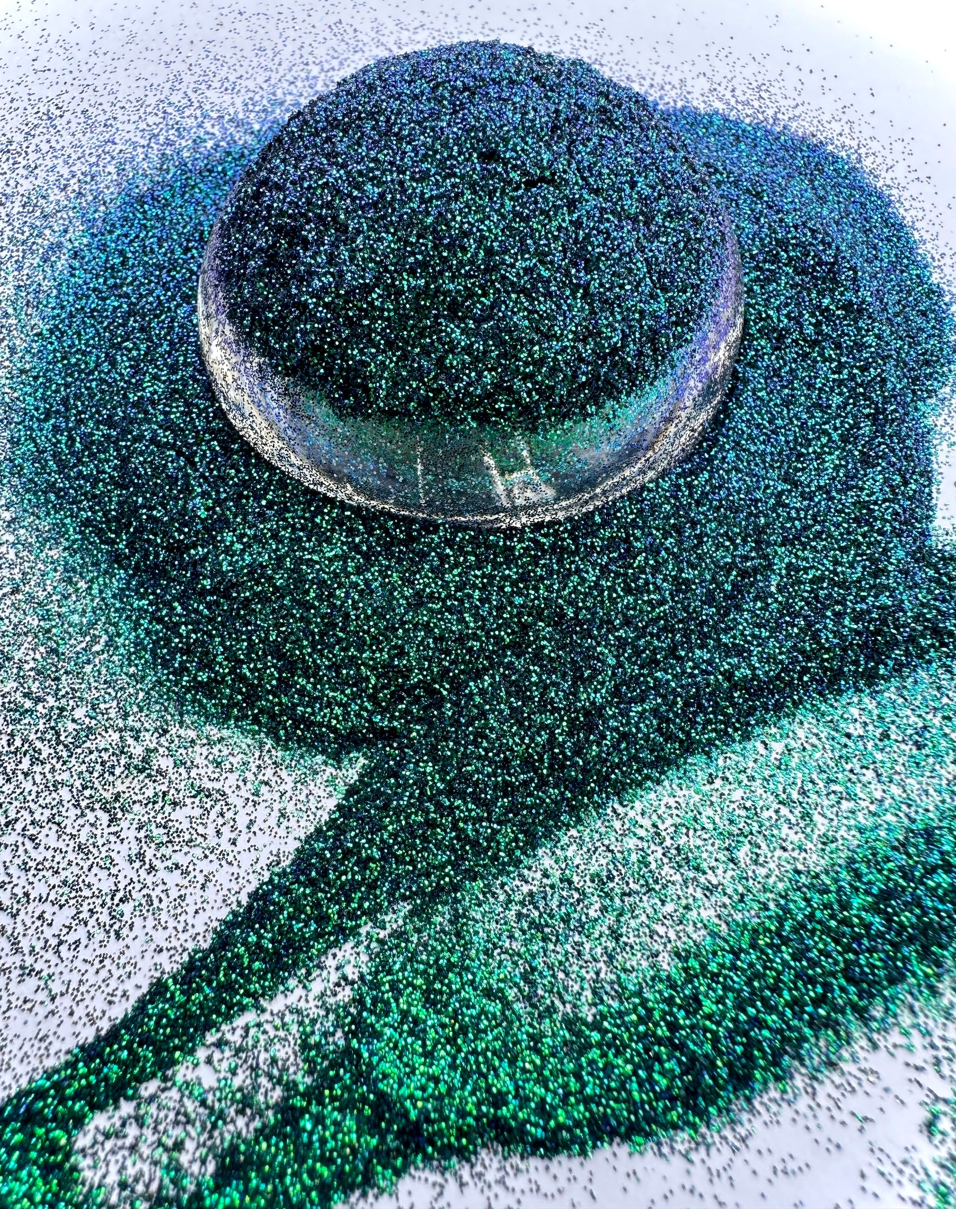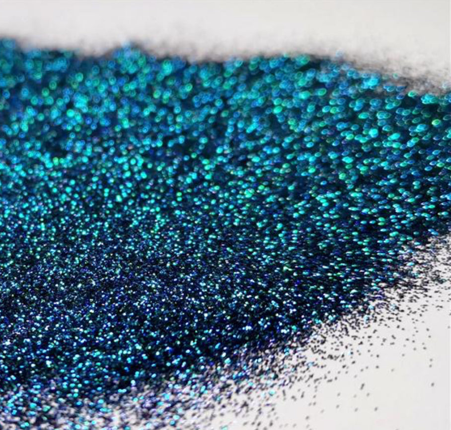 Morla is an emerald, green glitter with a slight shift to blue. All metallic and high sparkle.
