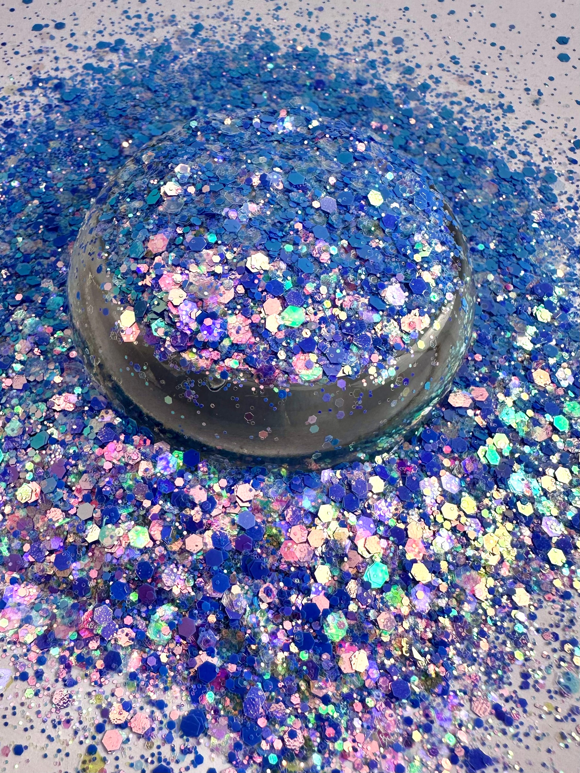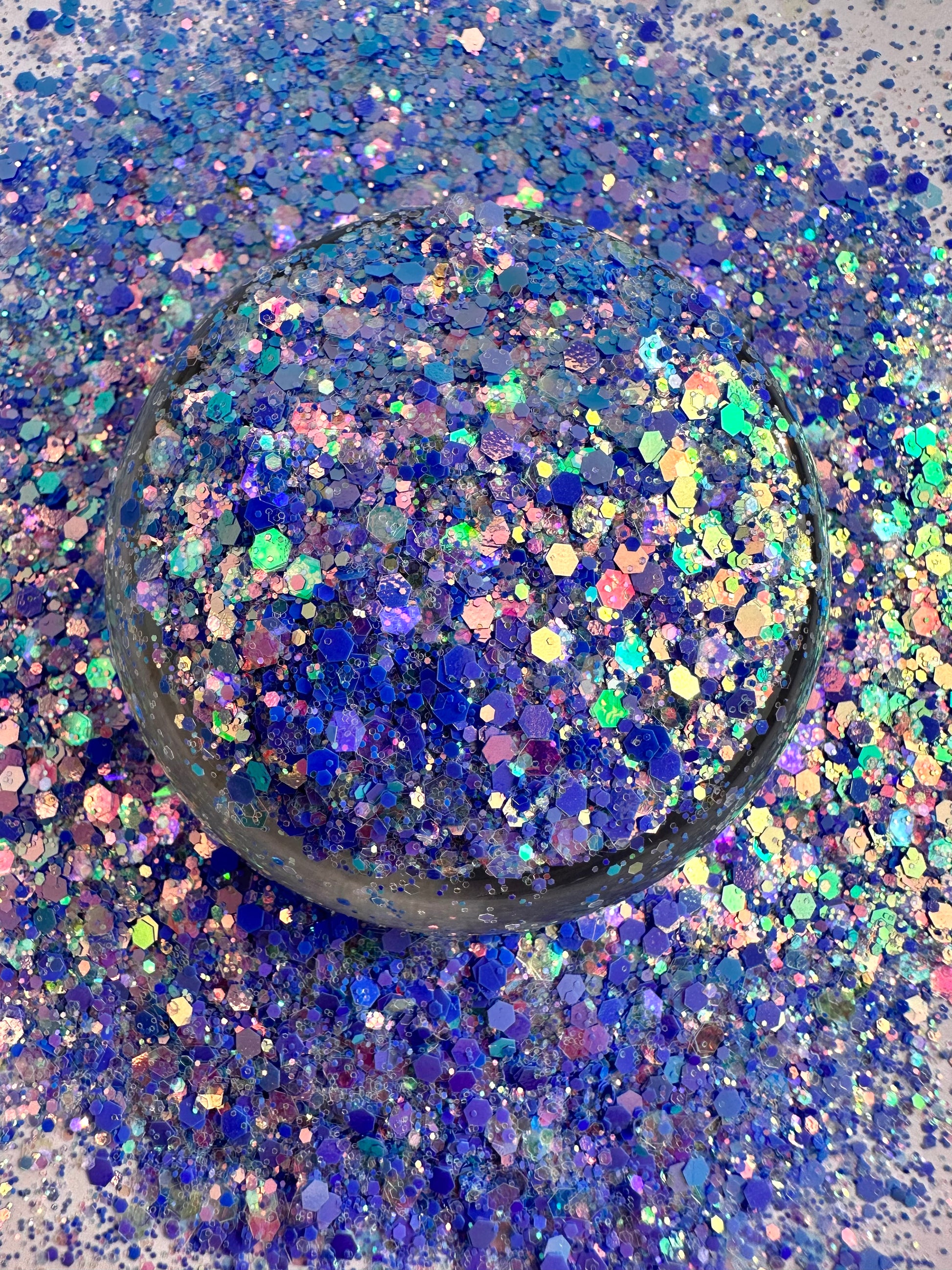 Morning Glory is a beautiful blue / periwinkle chunky mix.