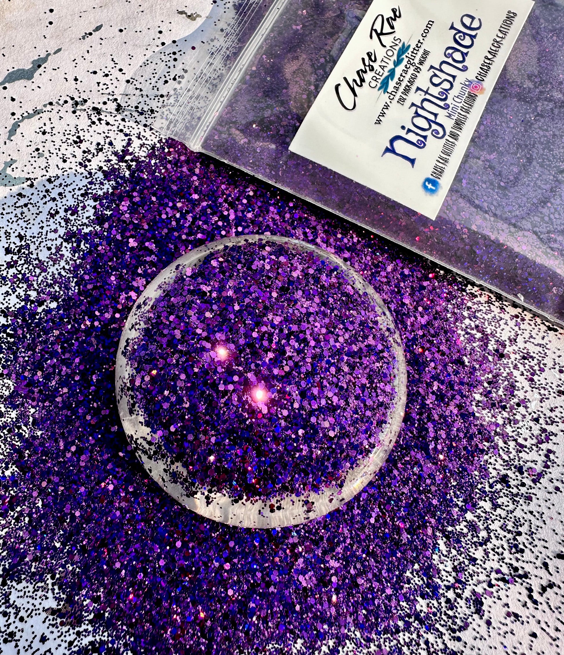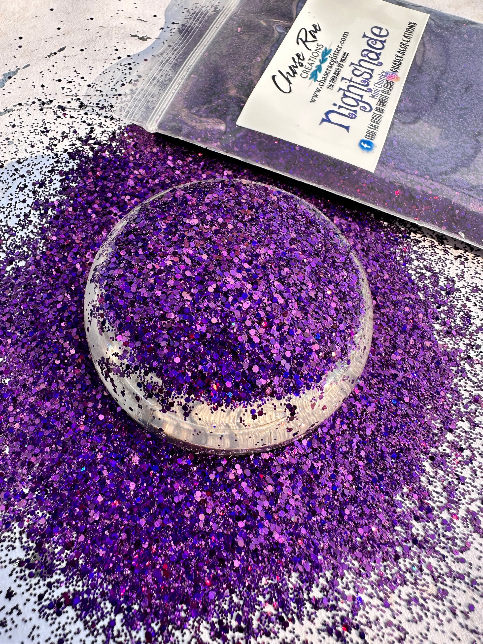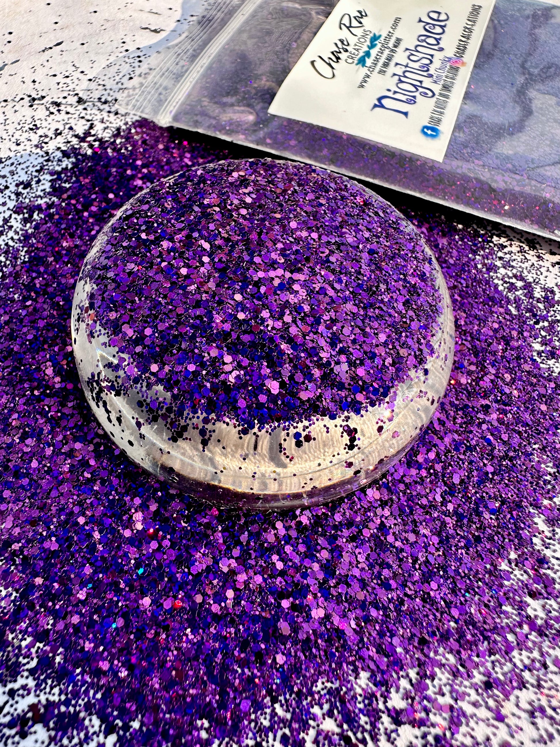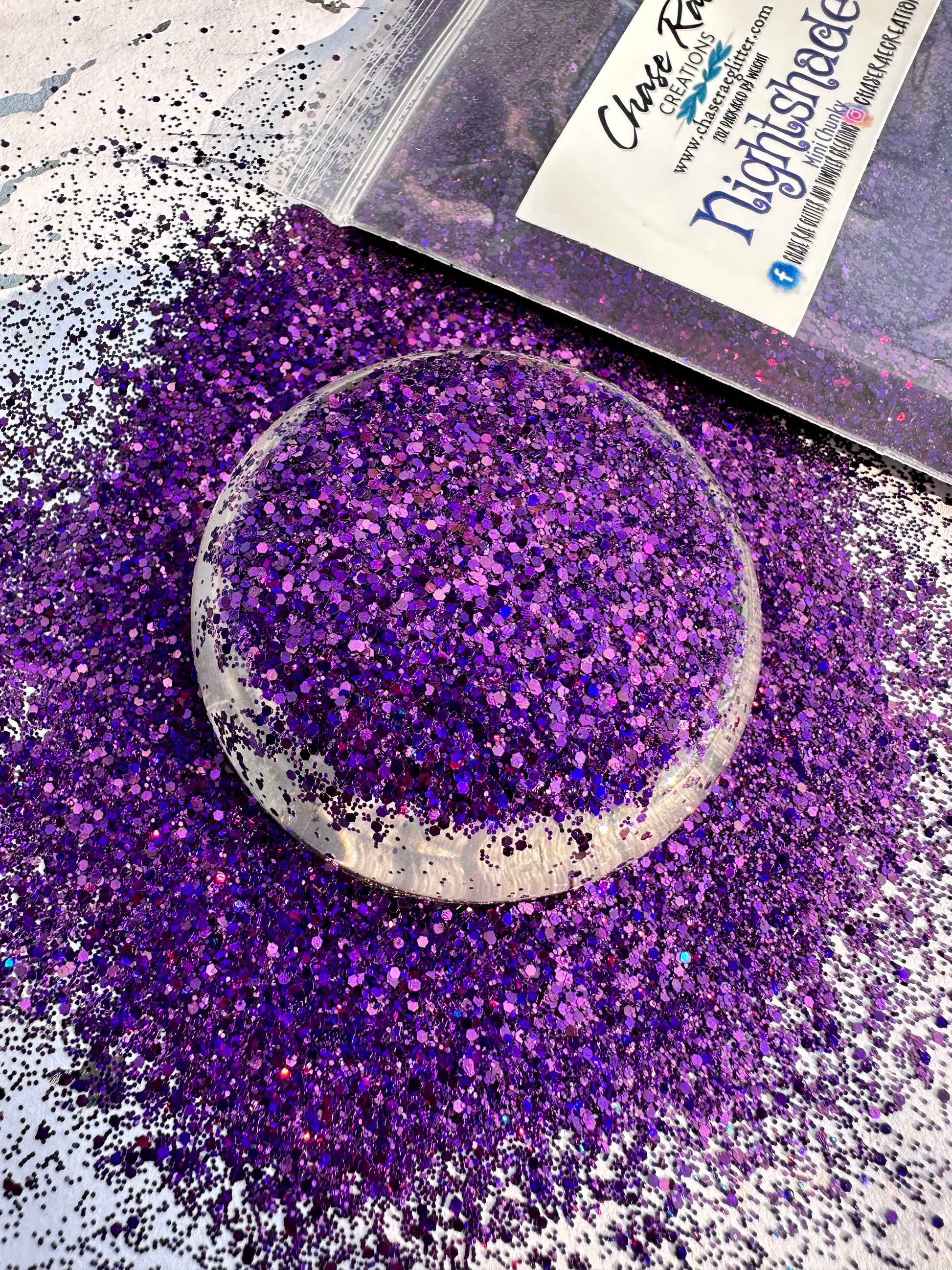 Nightshade is a deep, dark, purple holographic mini chunky mix.