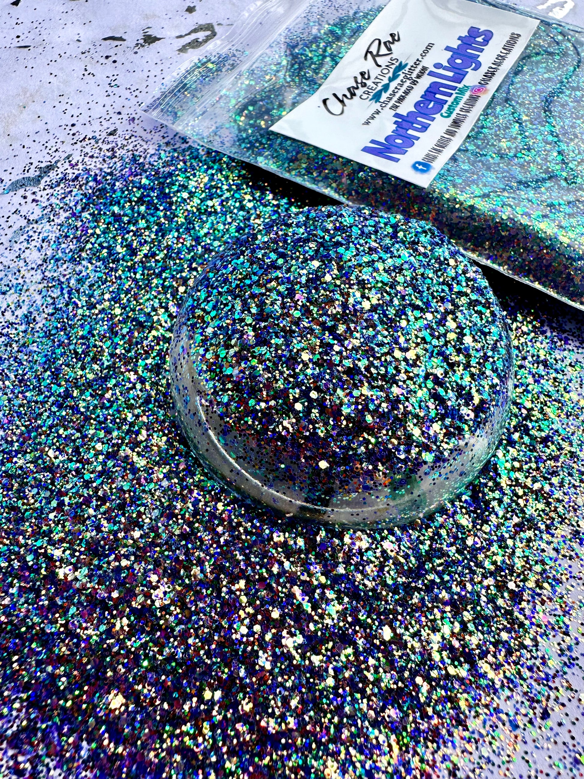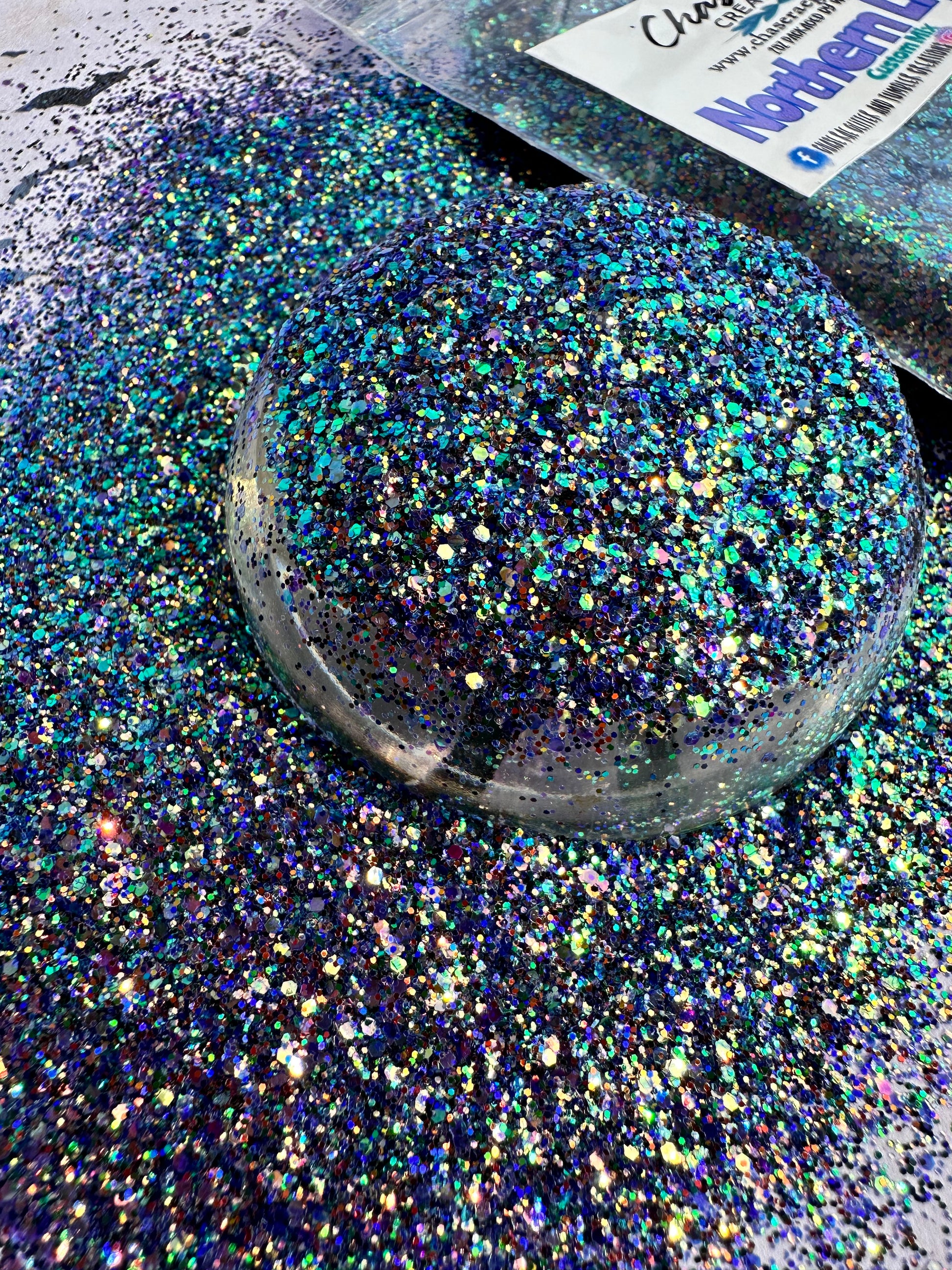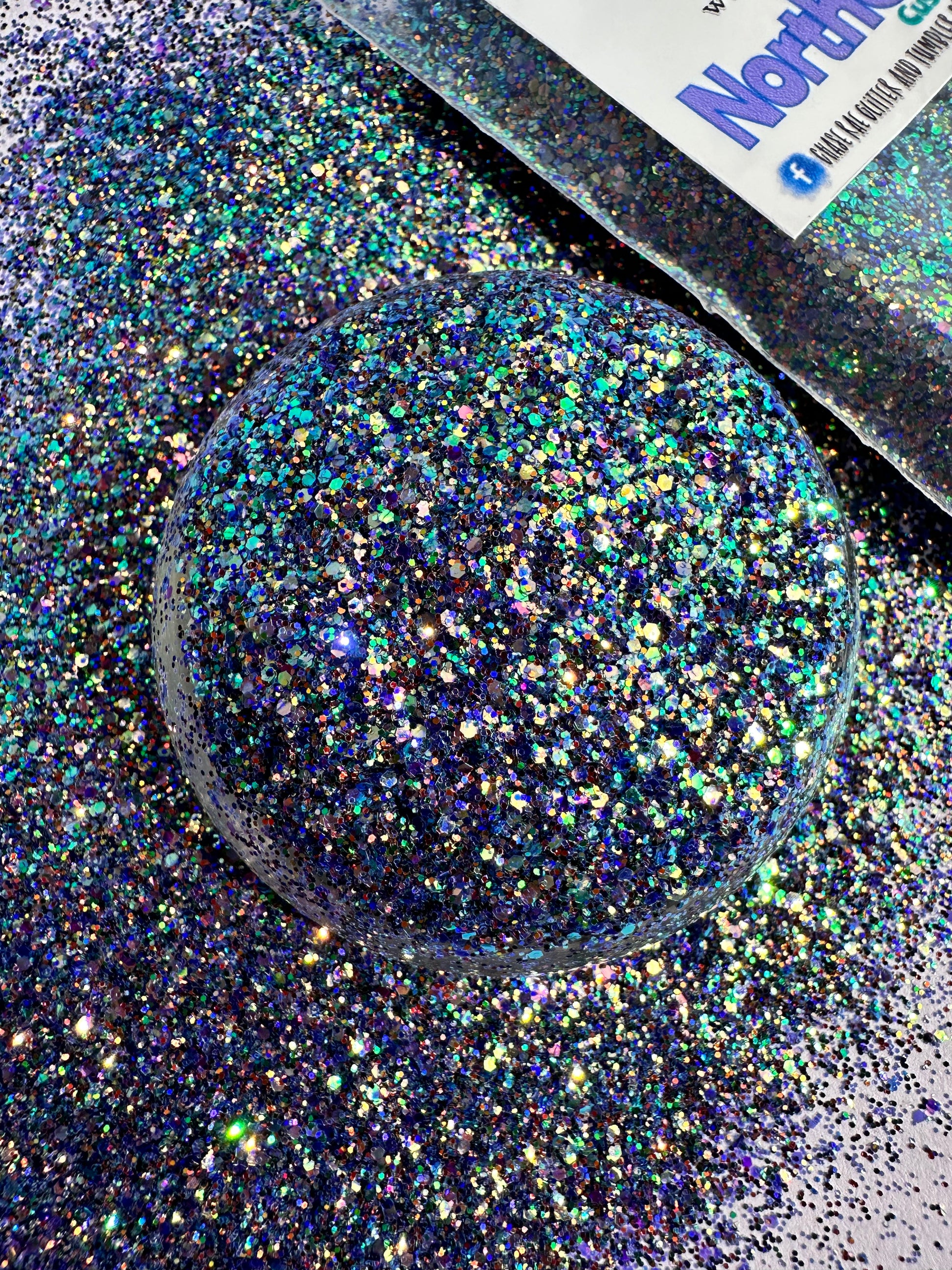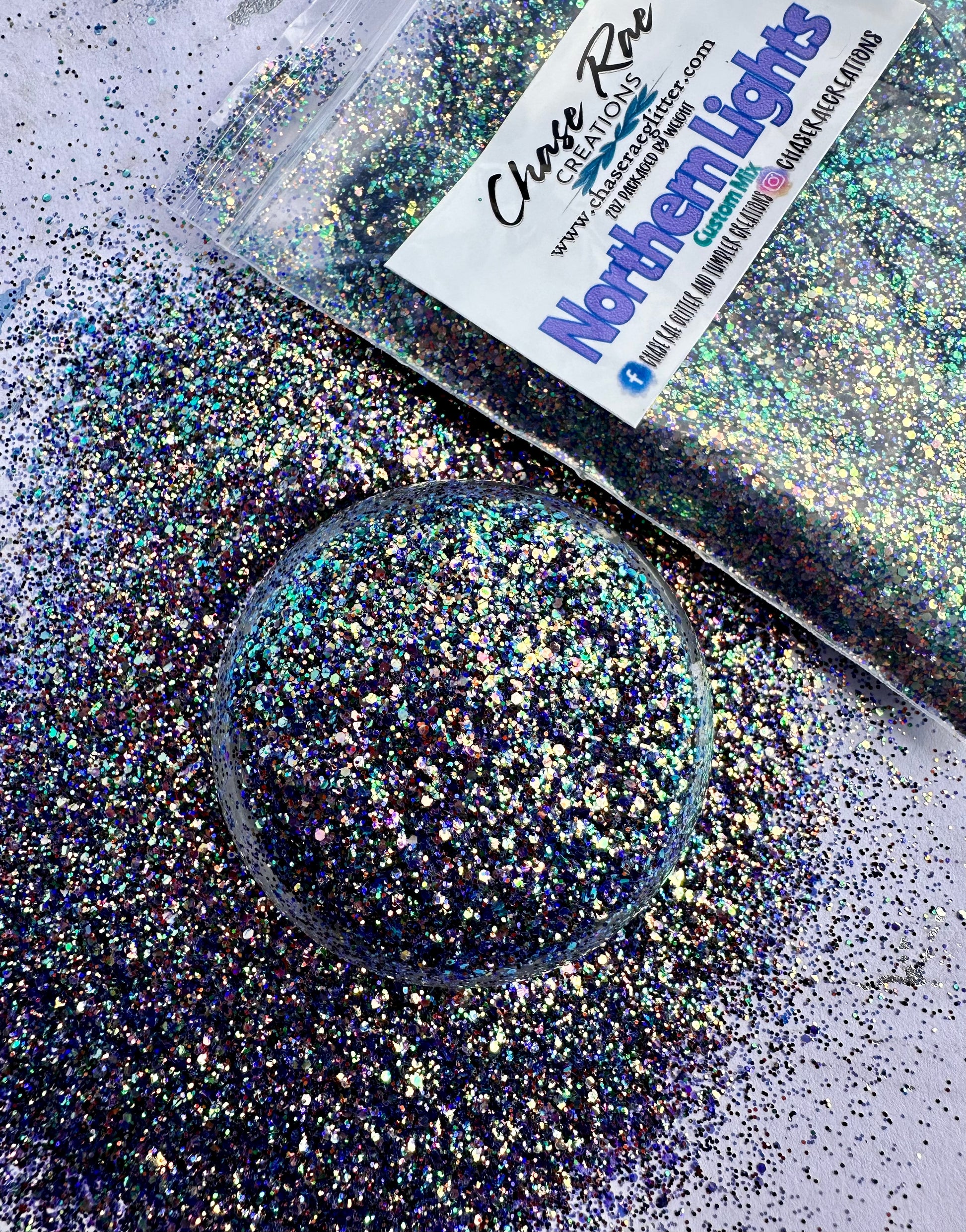 Northern Lights is a gorgeous, mini chunky, CUSTOM mix. With a shifty purple being its primary color, it also has almost every color in it. This one is sure to wow you!