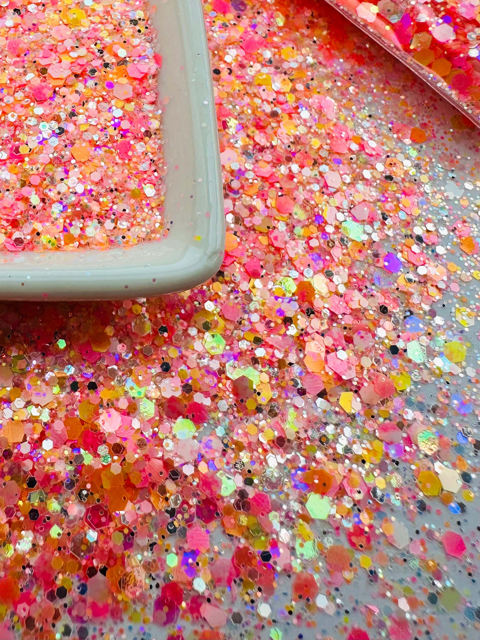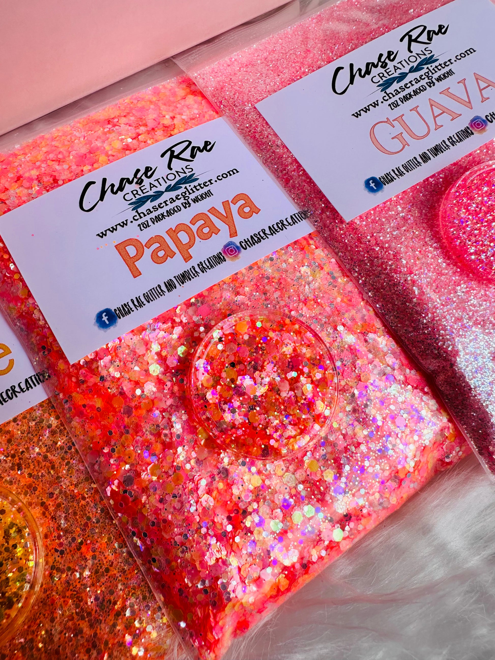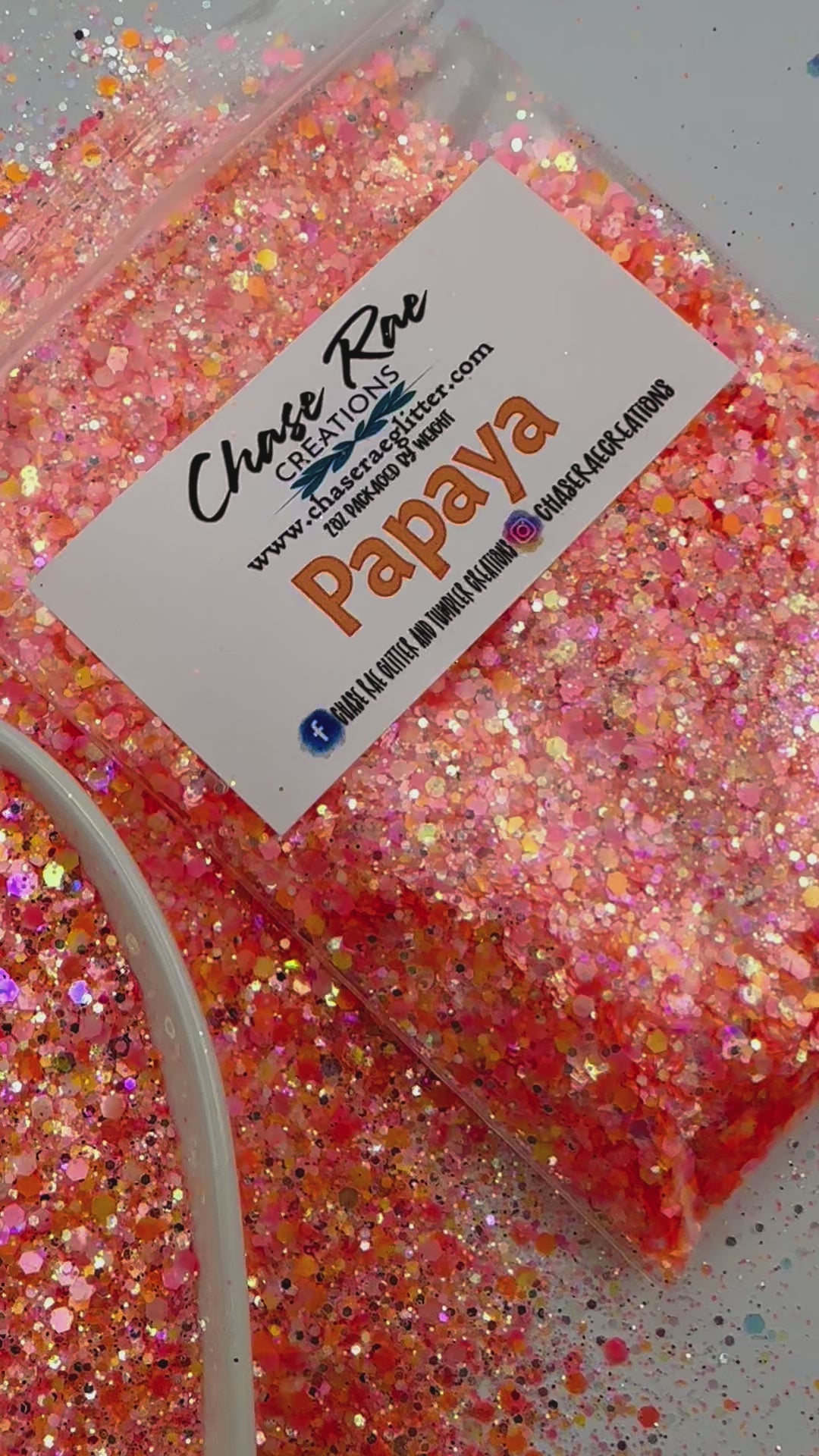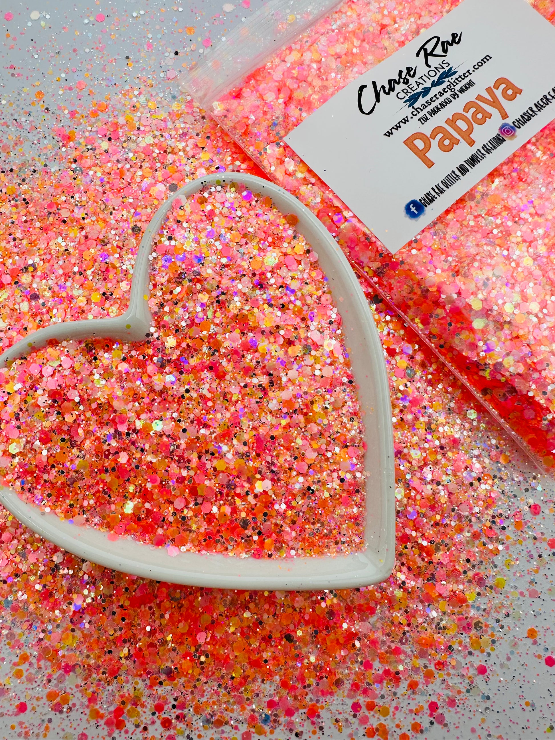 This semi chunky mix is perfect for Summer! Papaya is a mix of orange, and coral with a hint of pink, Reminds me of a beautiful sunset!