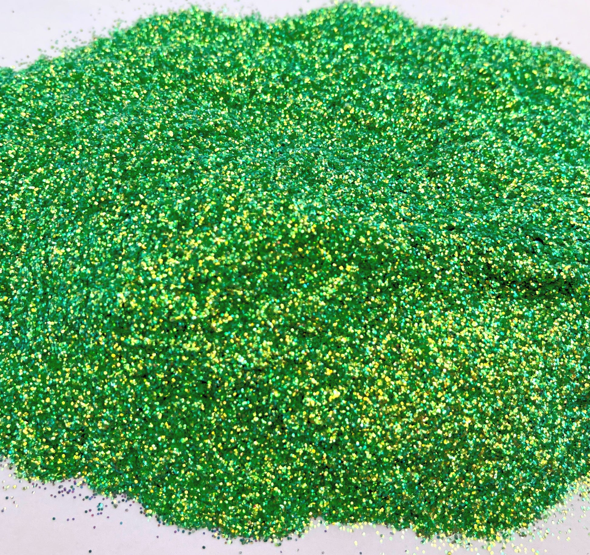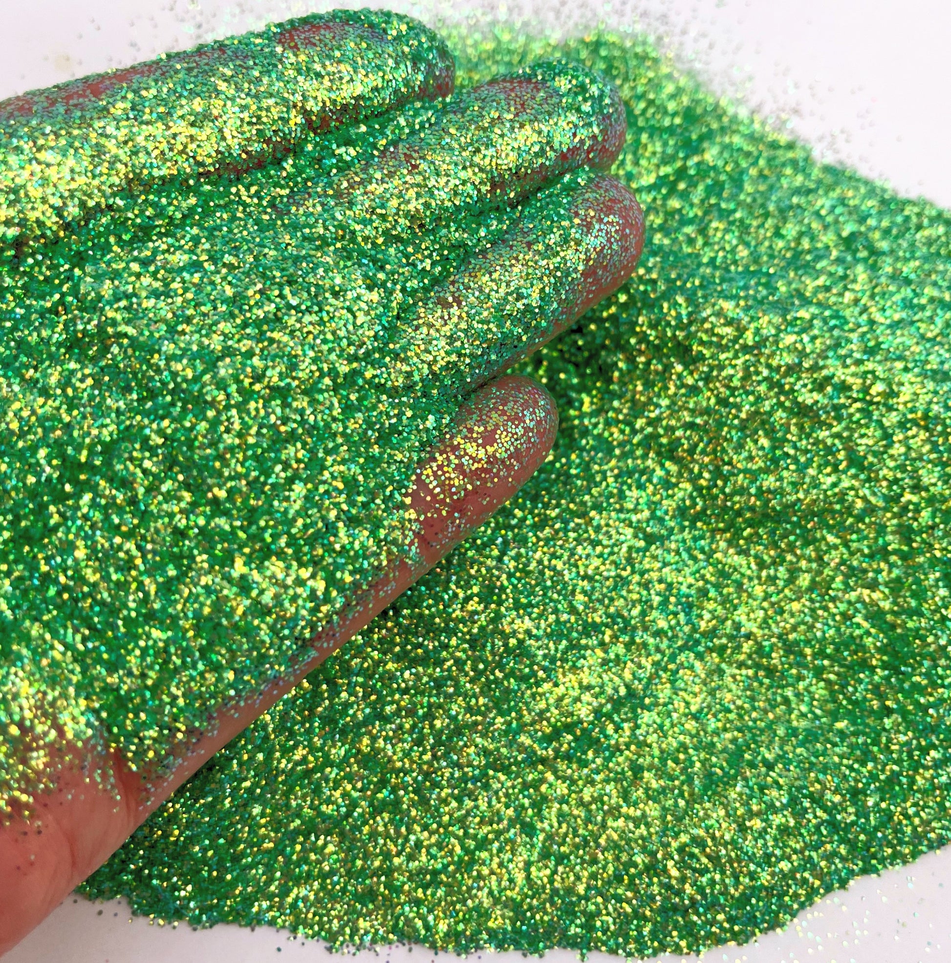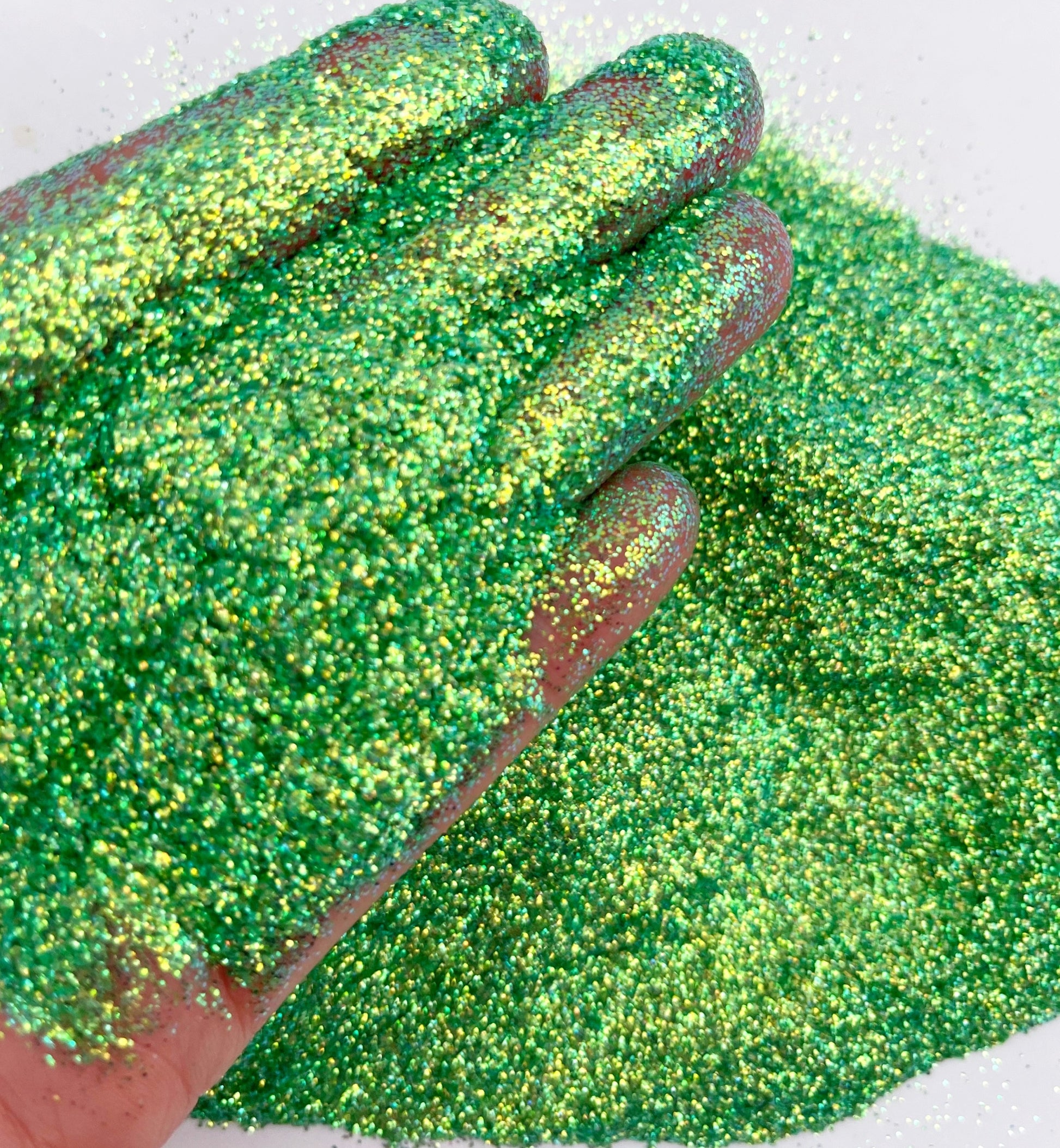 Patty is a gorgeous iridescent green glitter with a slight golden shift.