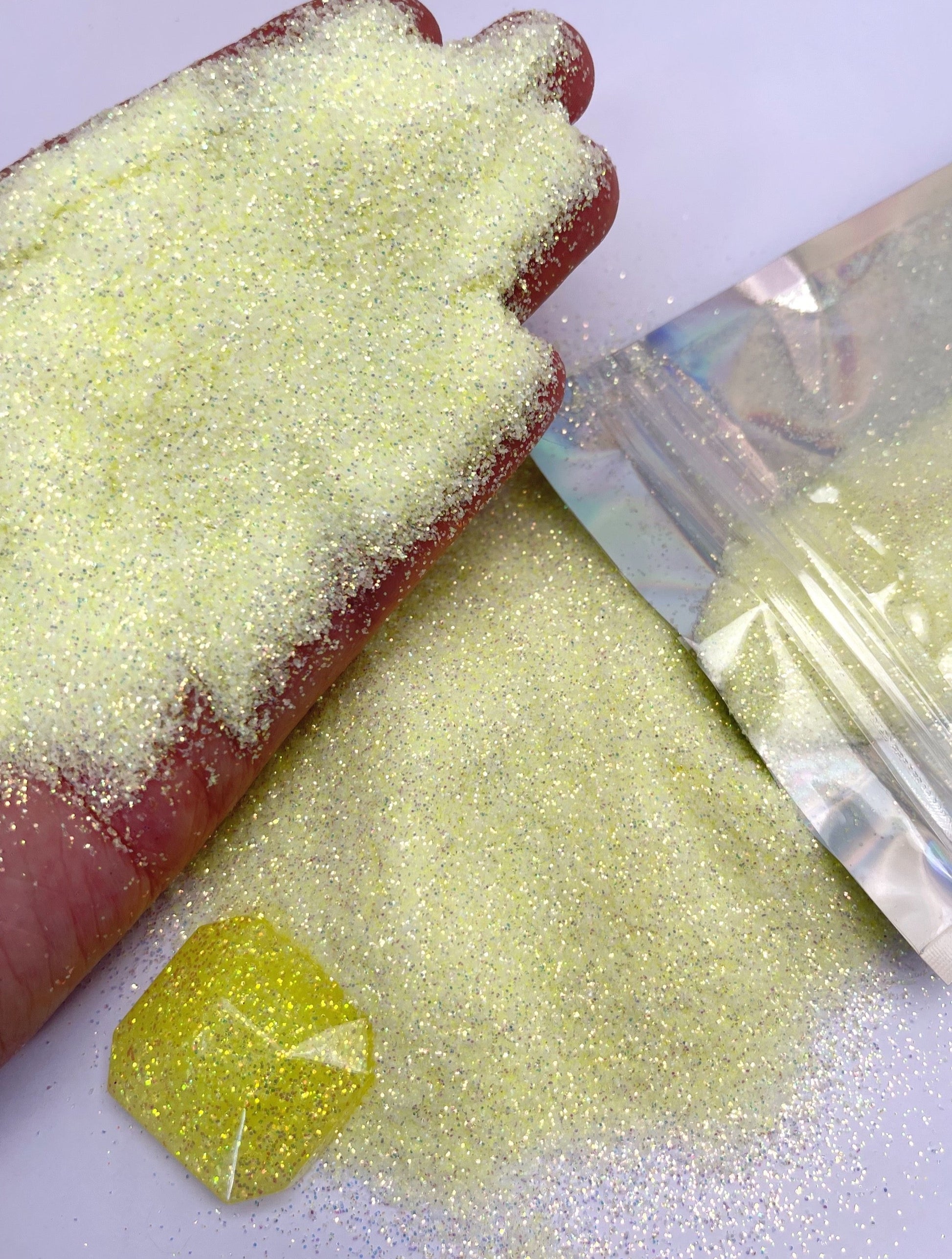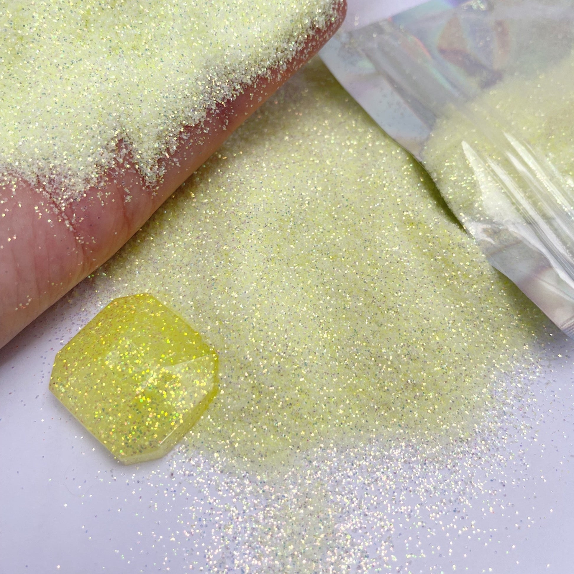 Peeps is a soft, pastel yellow. Semi translucent and high sparkle.