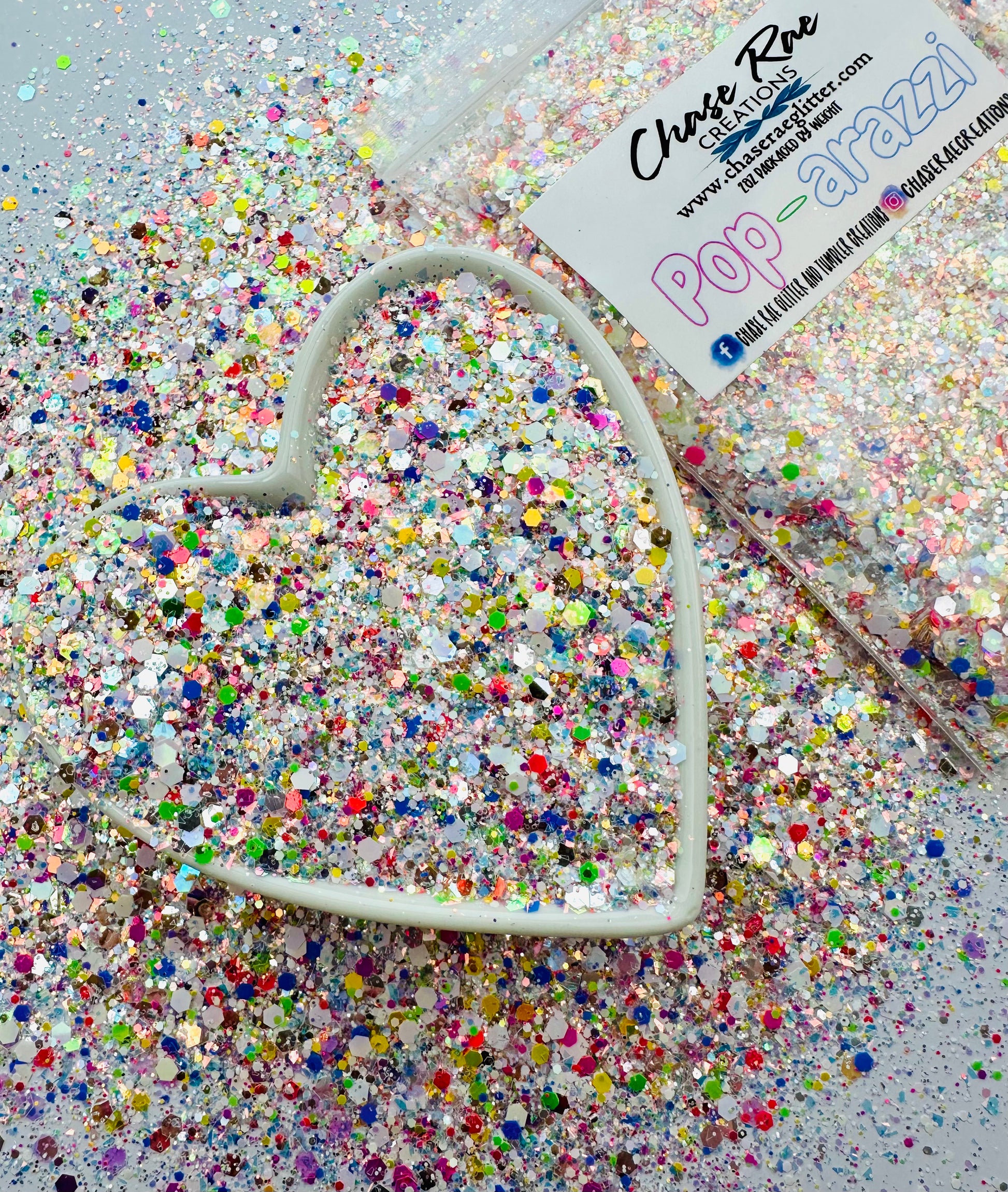Pop-arazzi is a gorgeous mix that is sure to make any project POP! Neon and iridescent pieces mixed with white.