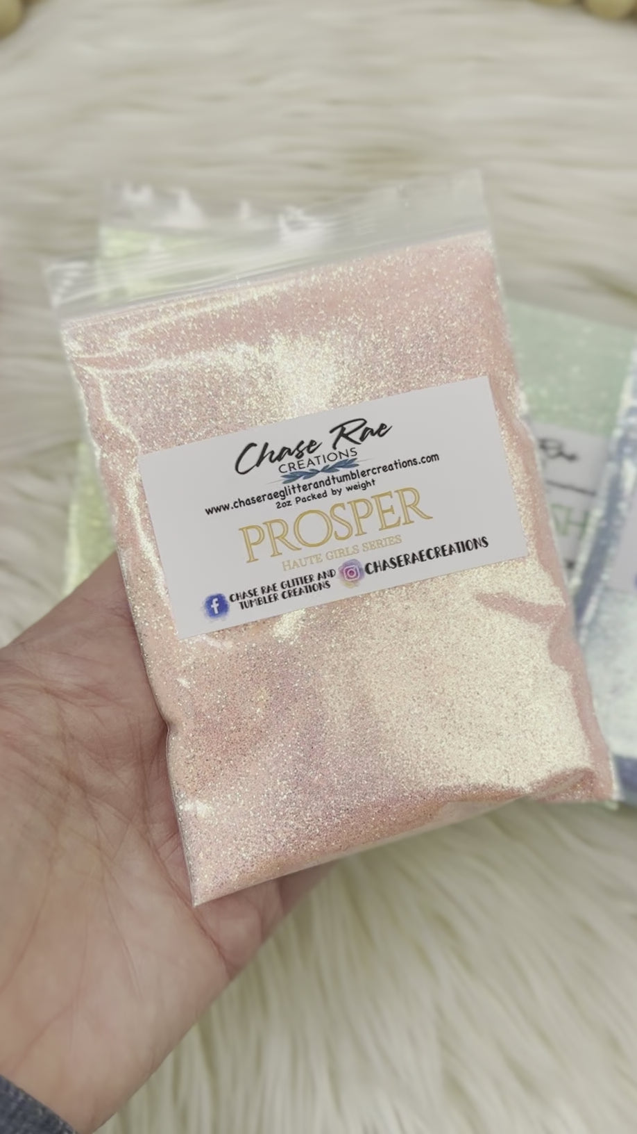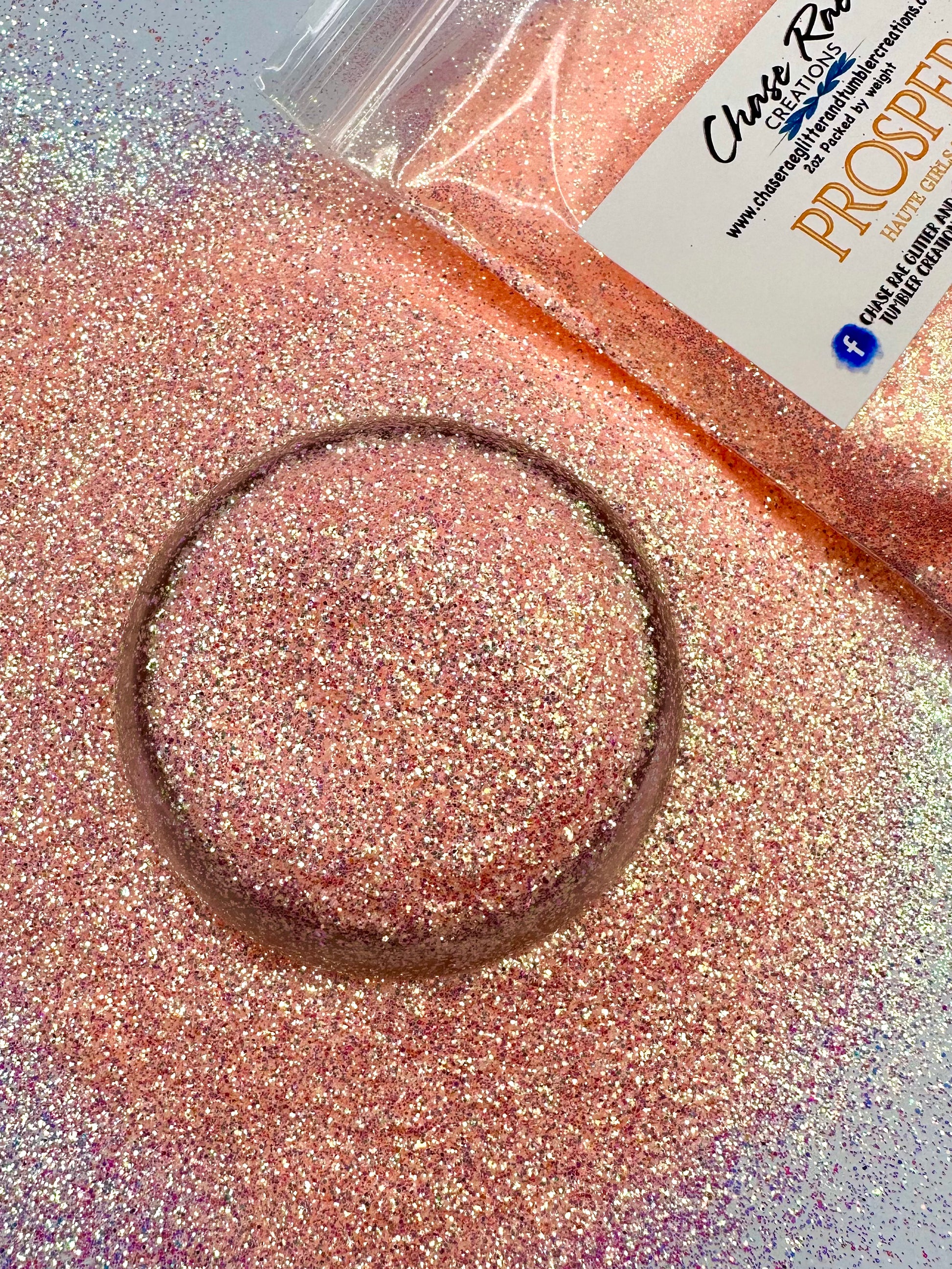 Prosper is a soft, pastel orange with EXTRA sparkle!