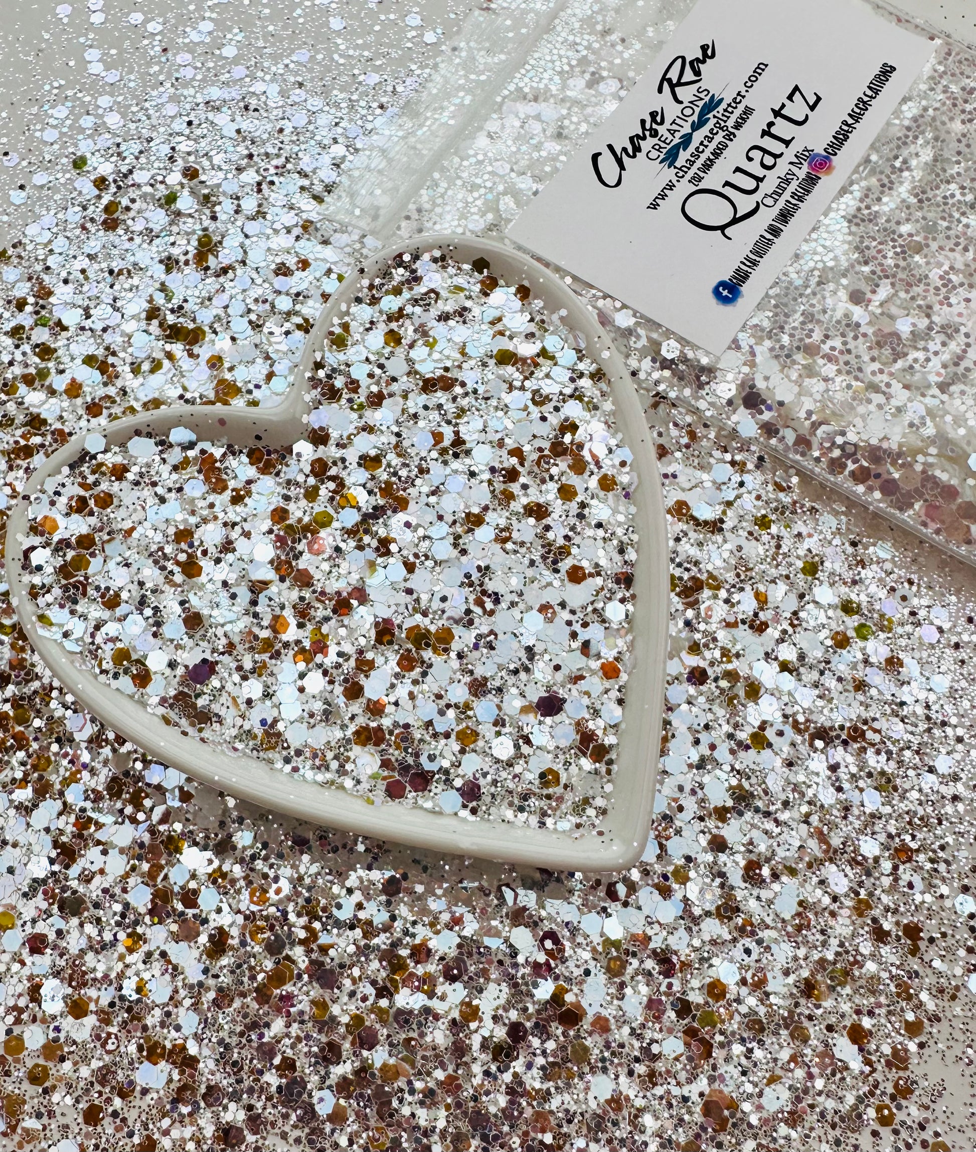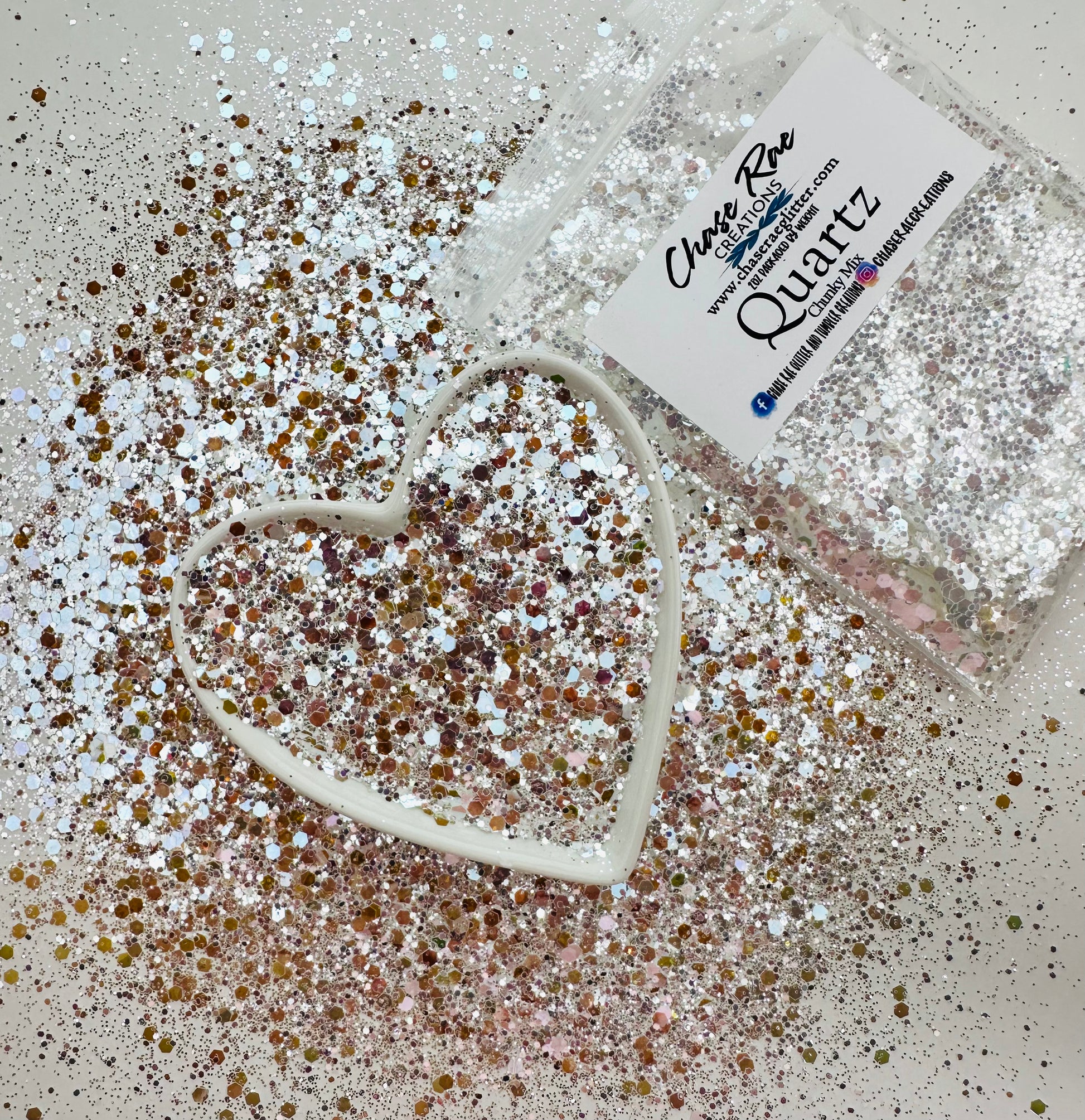 A mix of metallic and semi translucent pieces with mirror sparkle.
