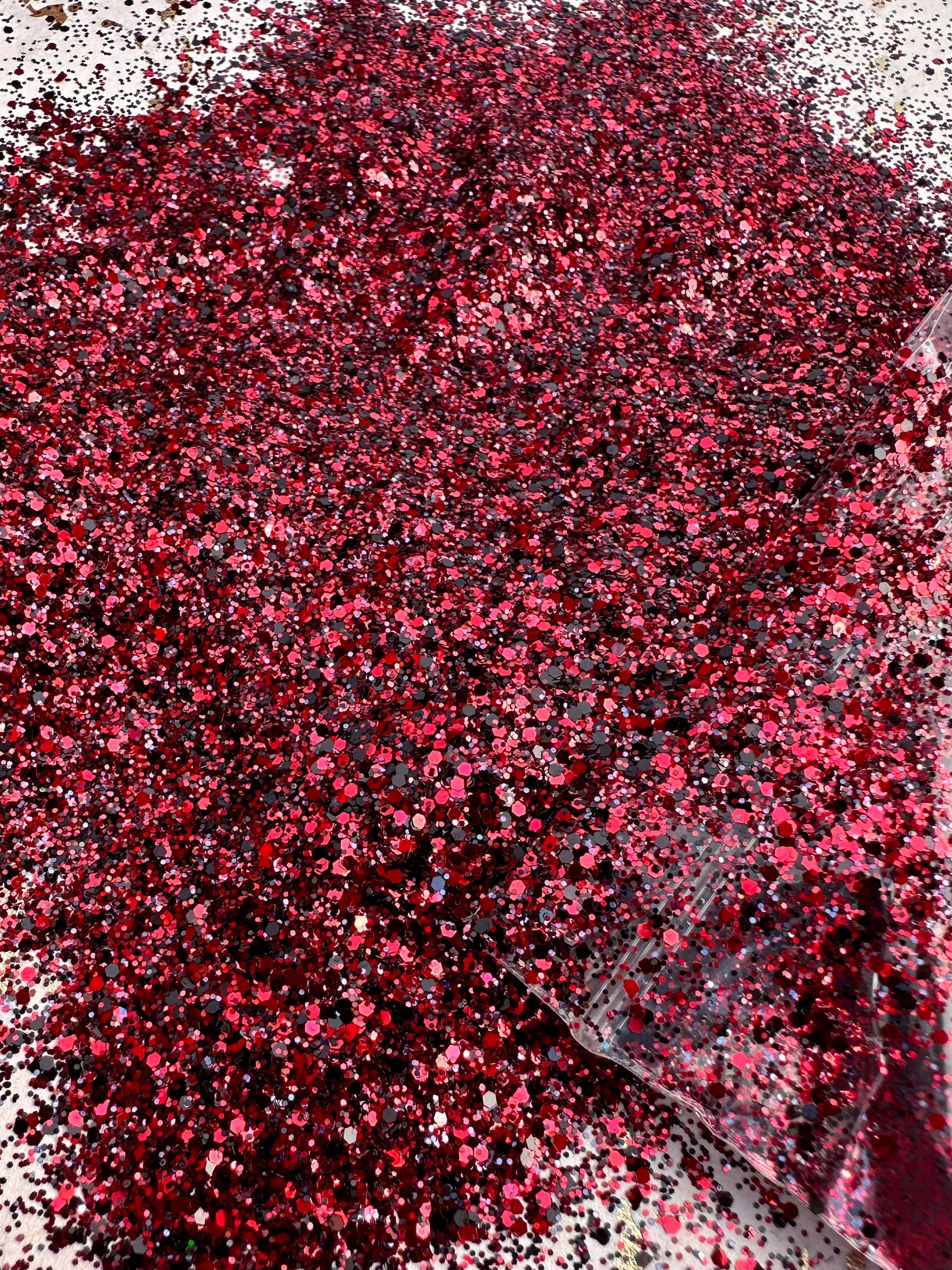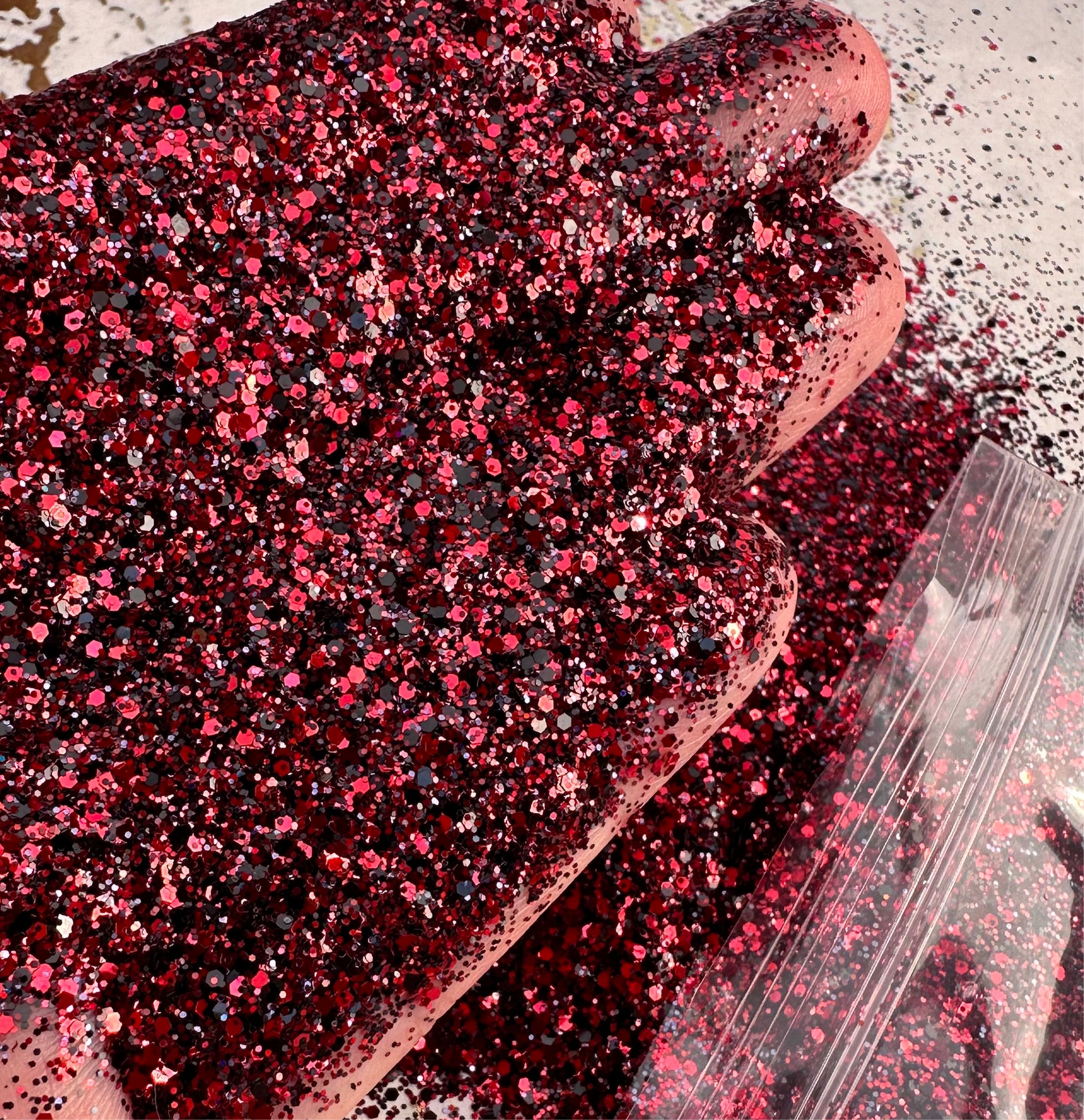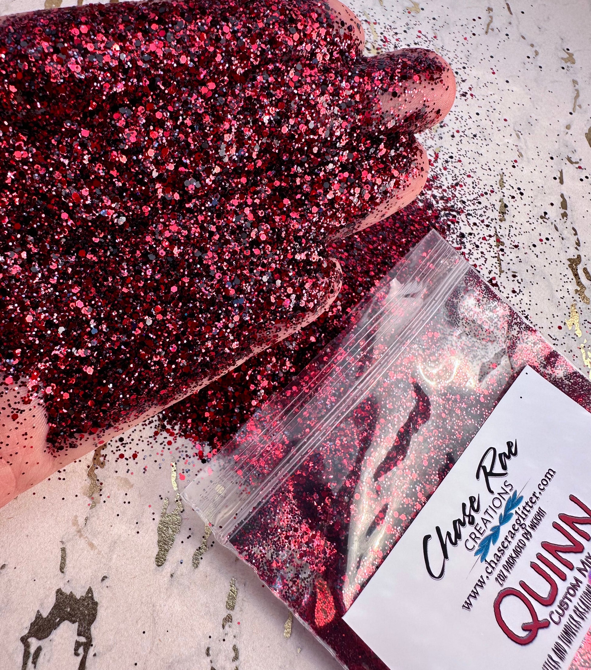 Quinn is HOT! She's a mini chunky mix of red, black, and holographic pieces of both!