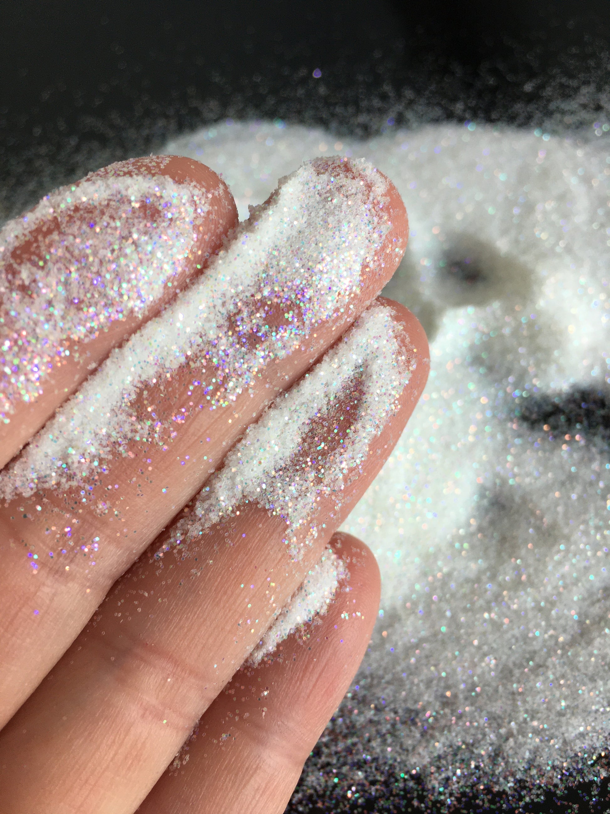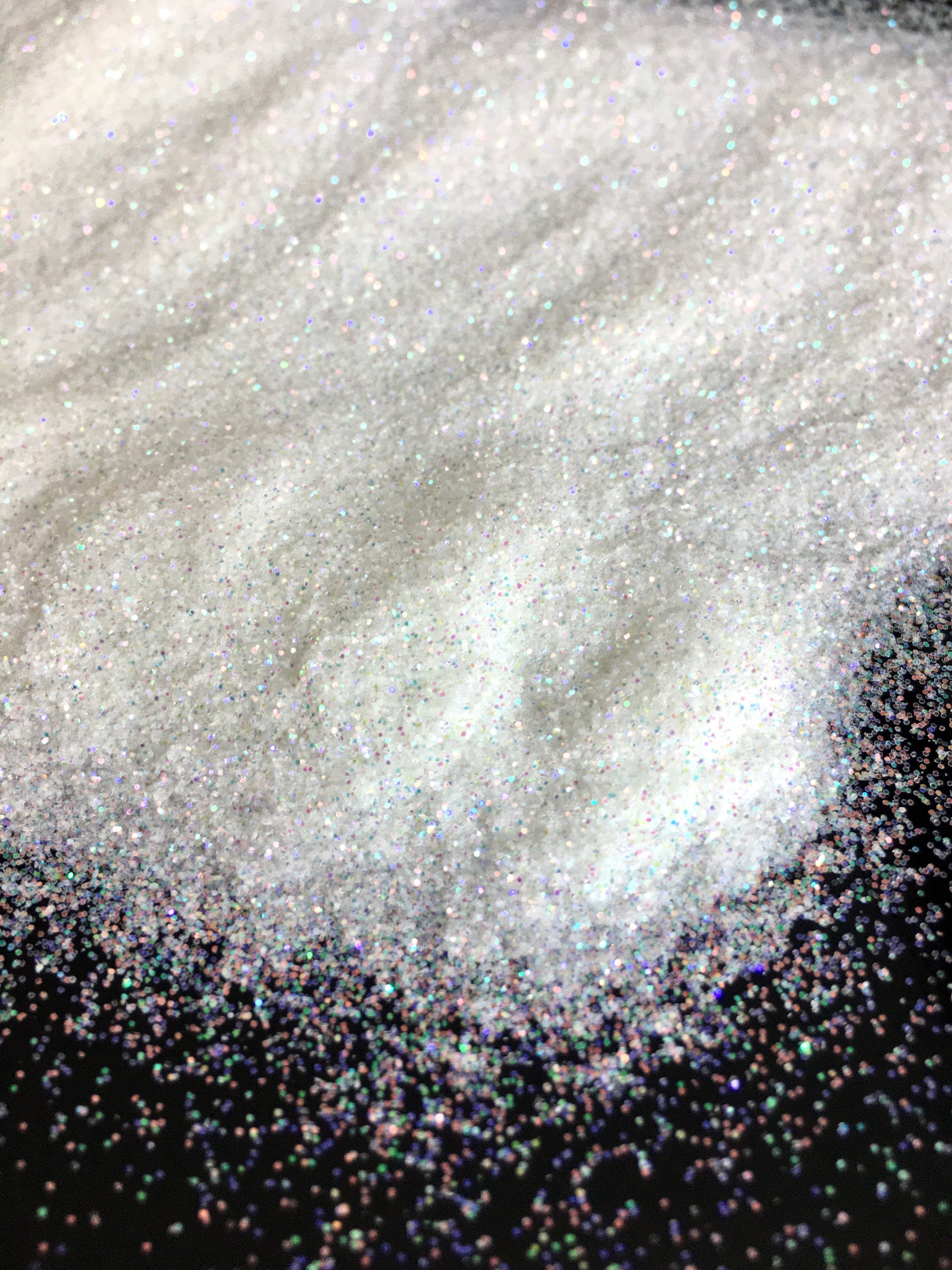 Rainbow Brite is a beautiful rainbow white glitter. Semi translucent.