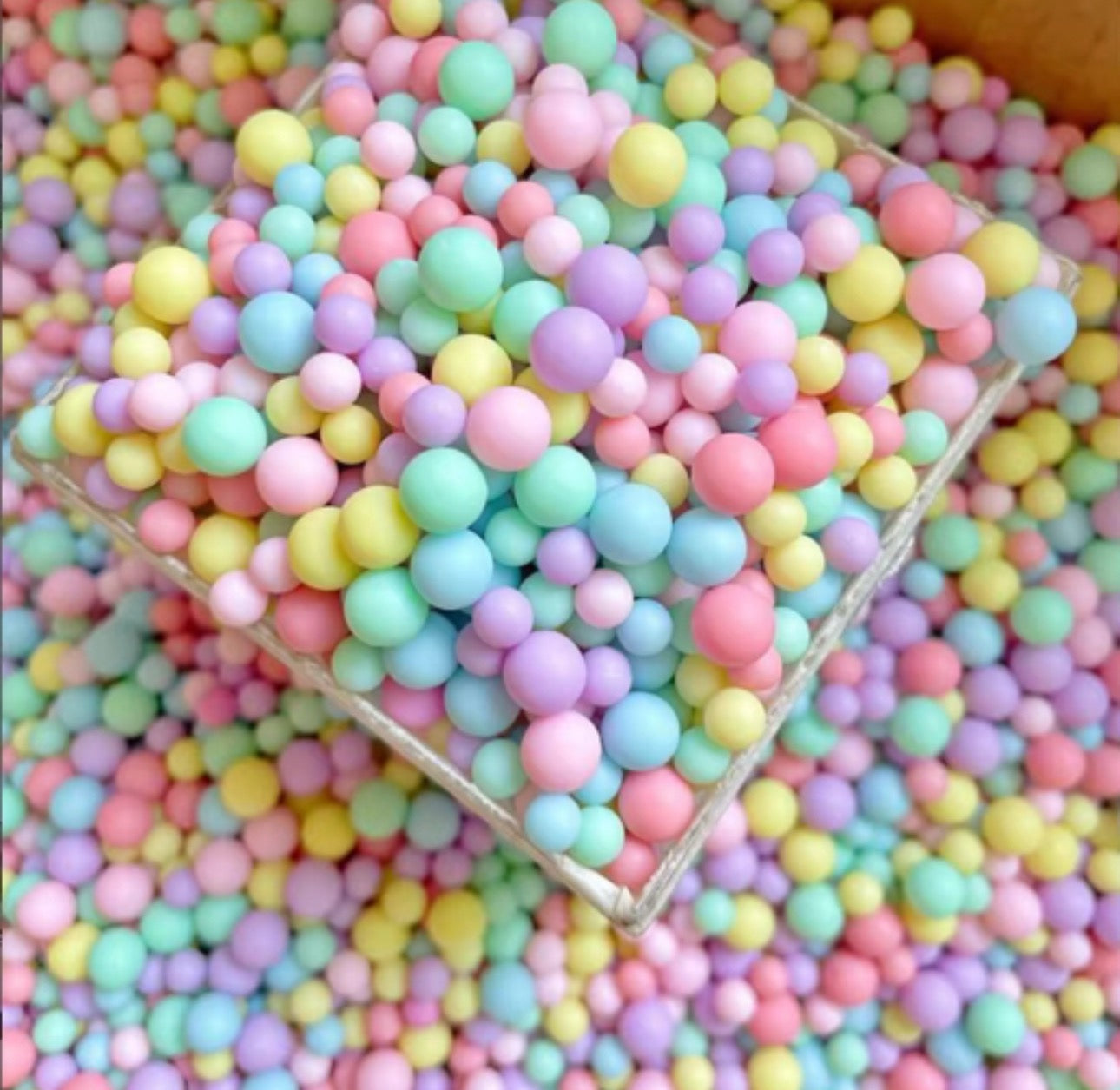 Add the perfect touch to those lids and toppers! Light weight plastic faux candy pieces in a mix of pastel colors.