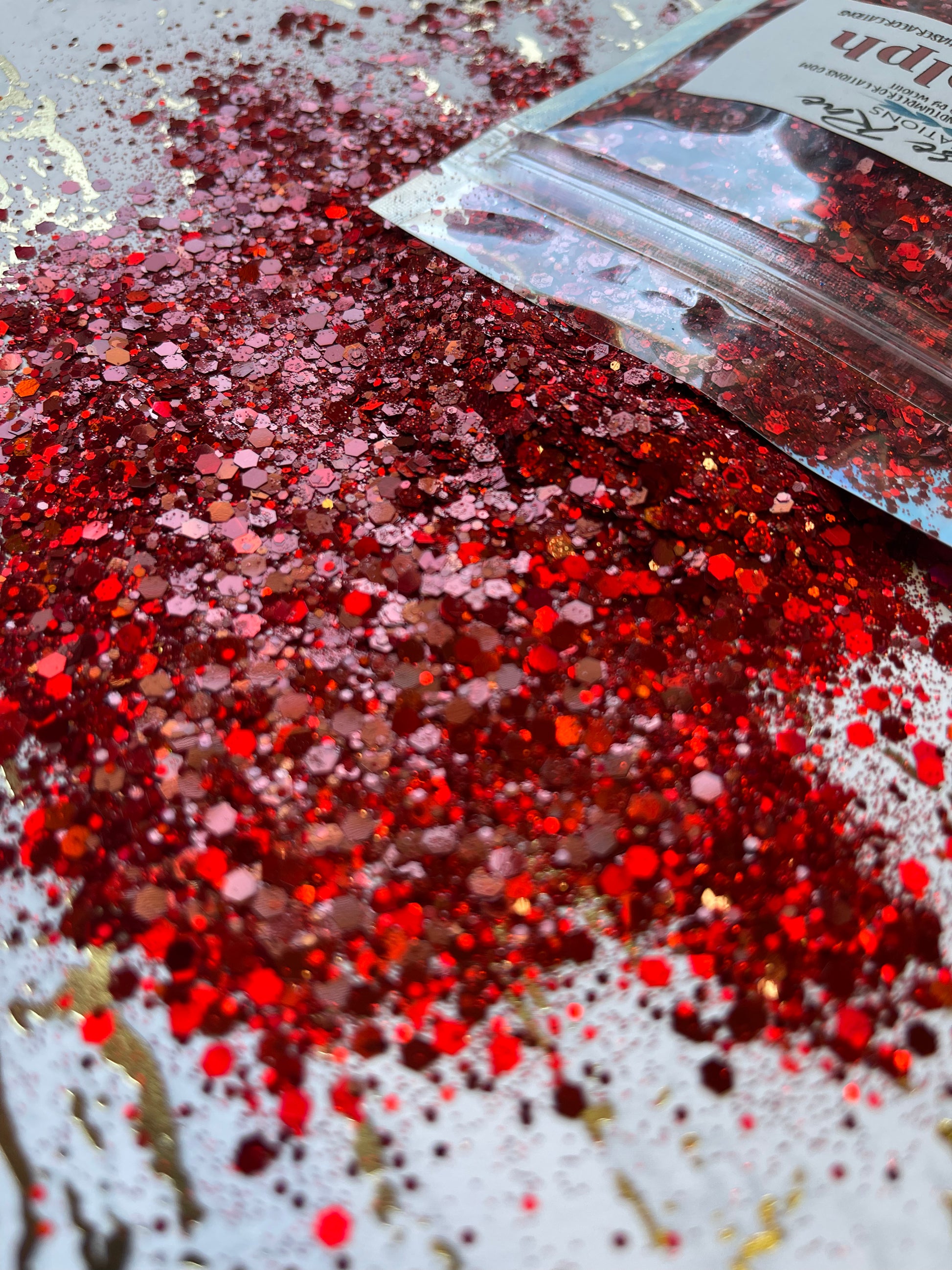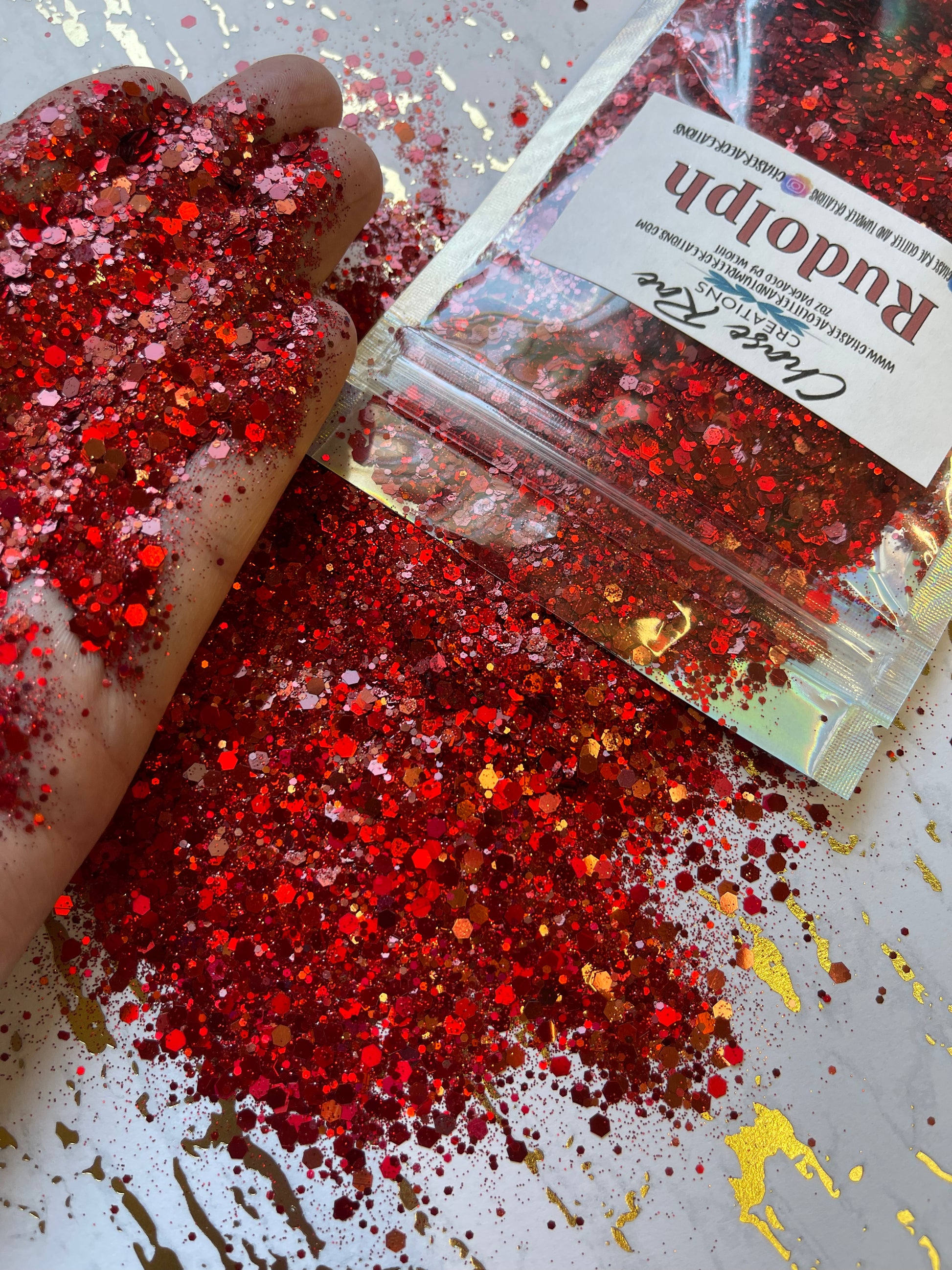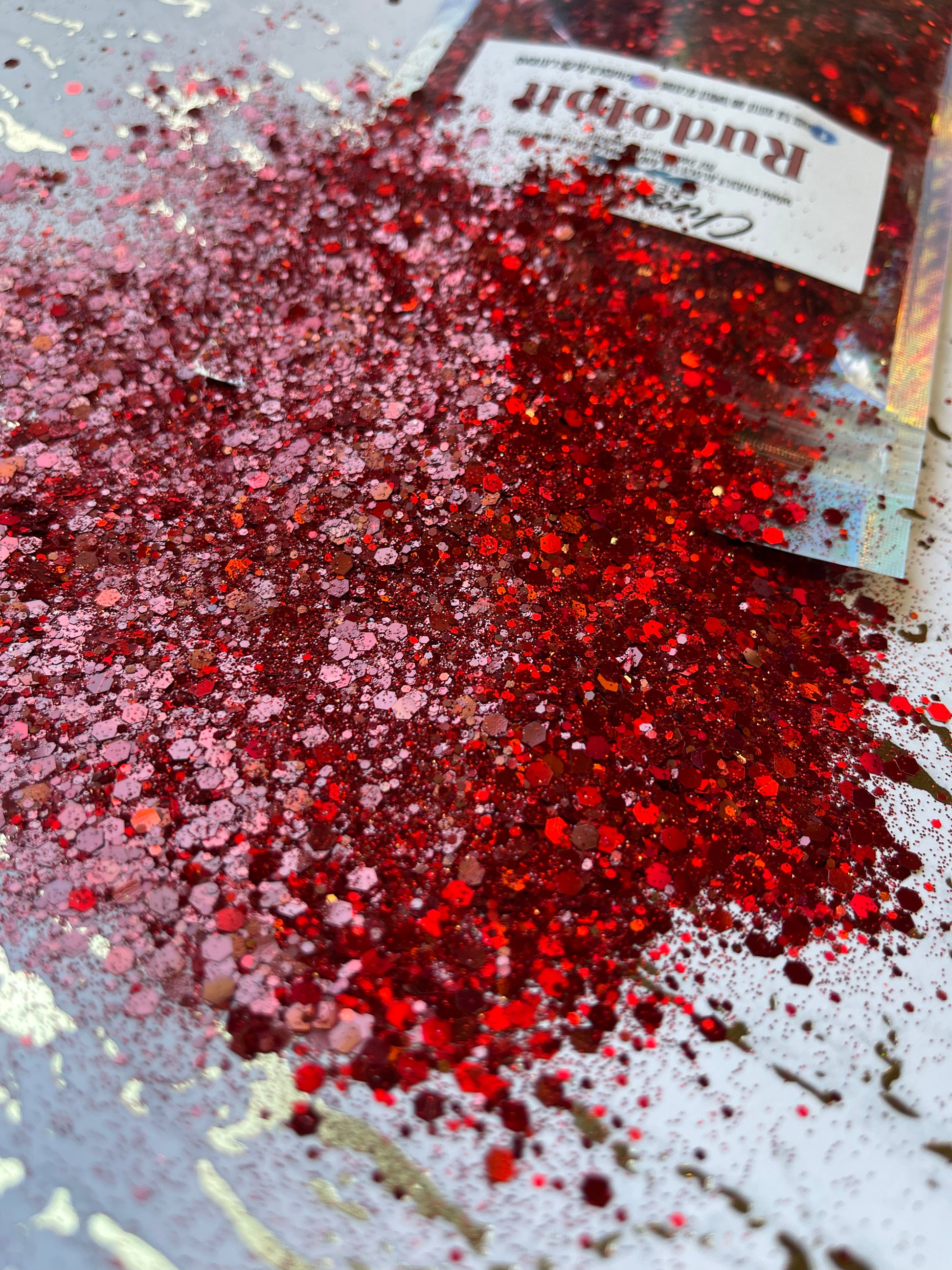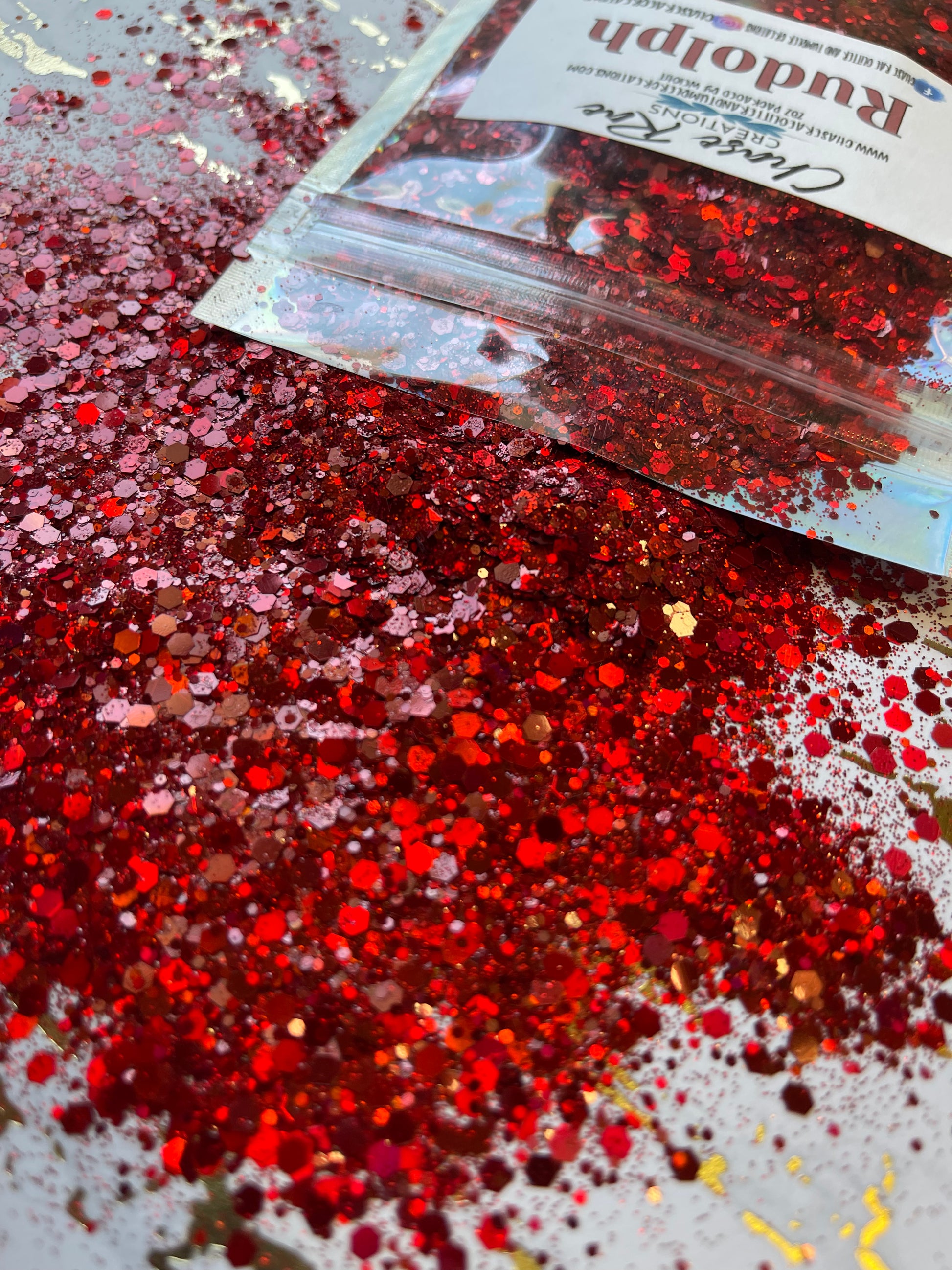 Rudolph is a gorgeous red holographic chunky mix glitter.