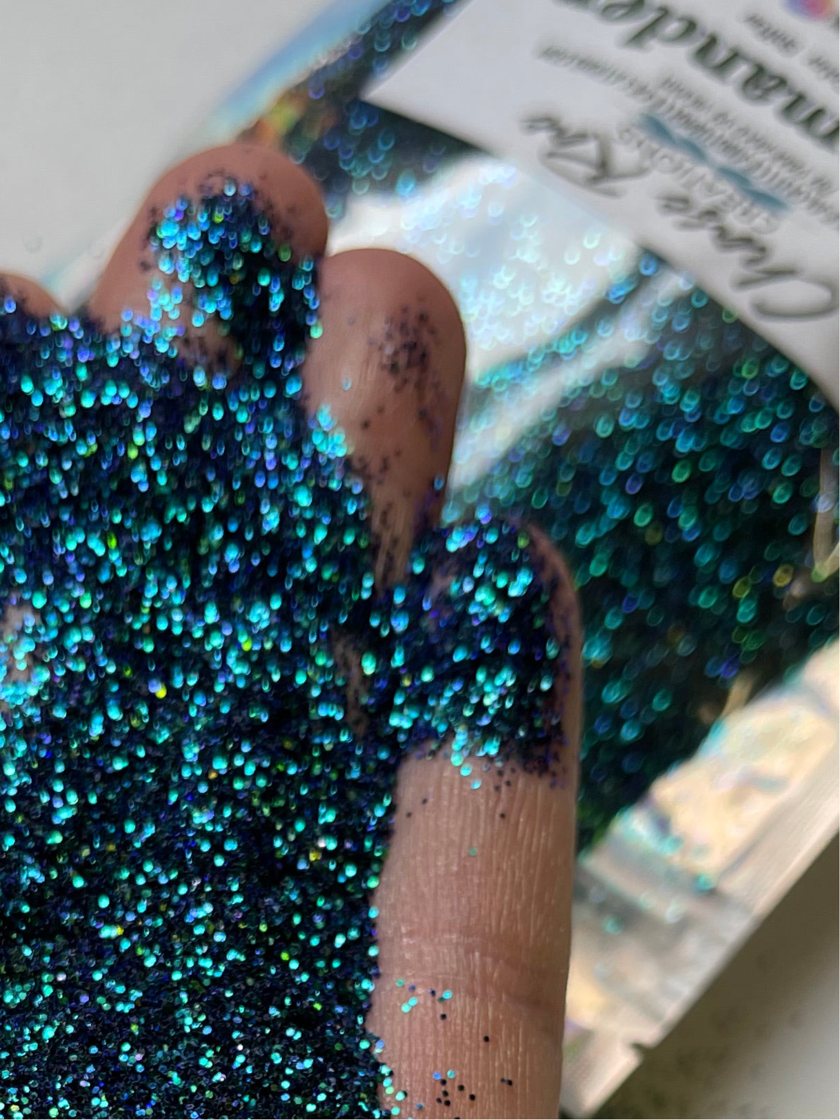 Salamander is a fine, color shifting glitter. Rich, green in color. Shift to blue / purple.
