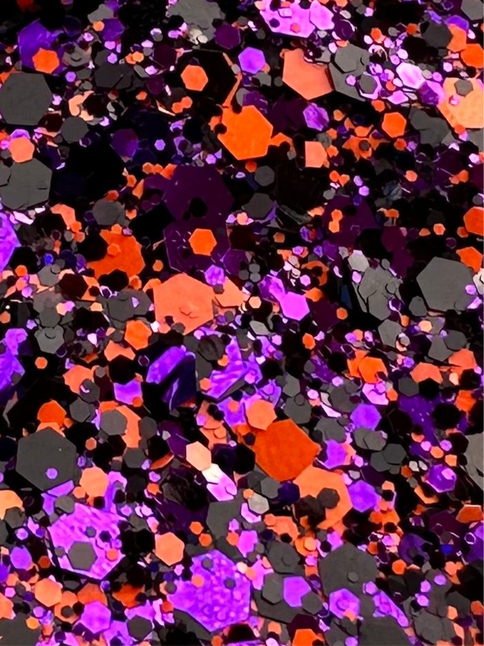Salem is a chunky mix. Orange, black and purple pieces make up the beautiful mix!