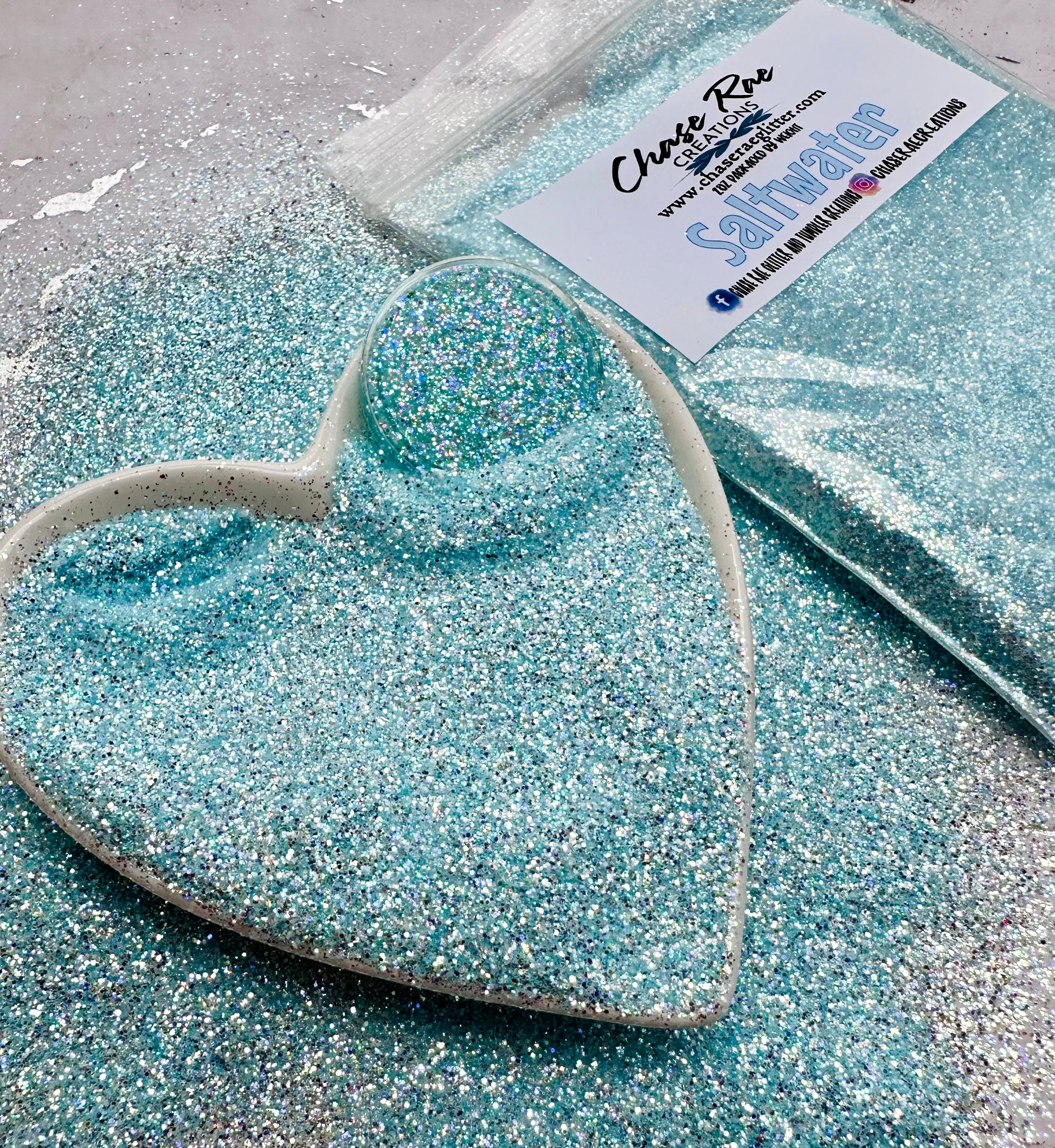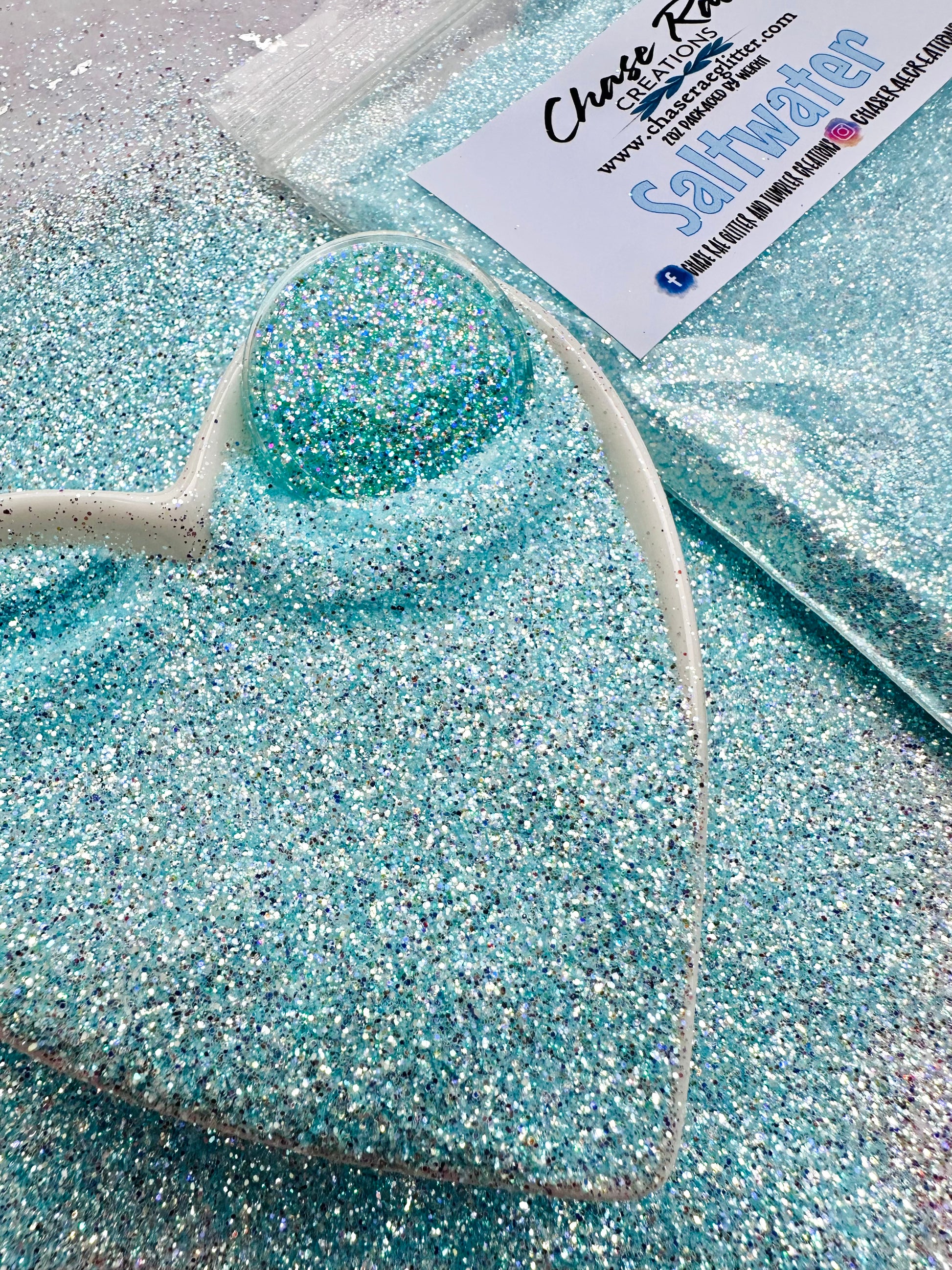 Saltwater is a semi-transparent blue colored glitter. It has a very unique mix of iridescence to give it major sparkle!
