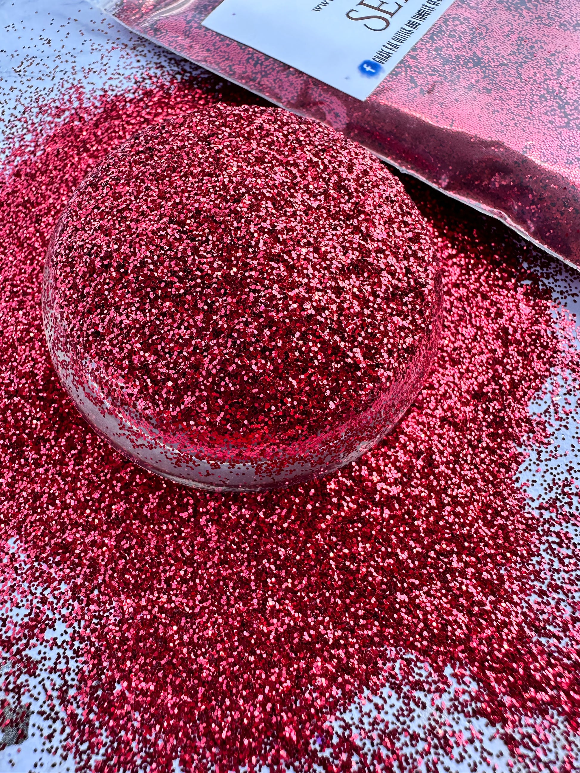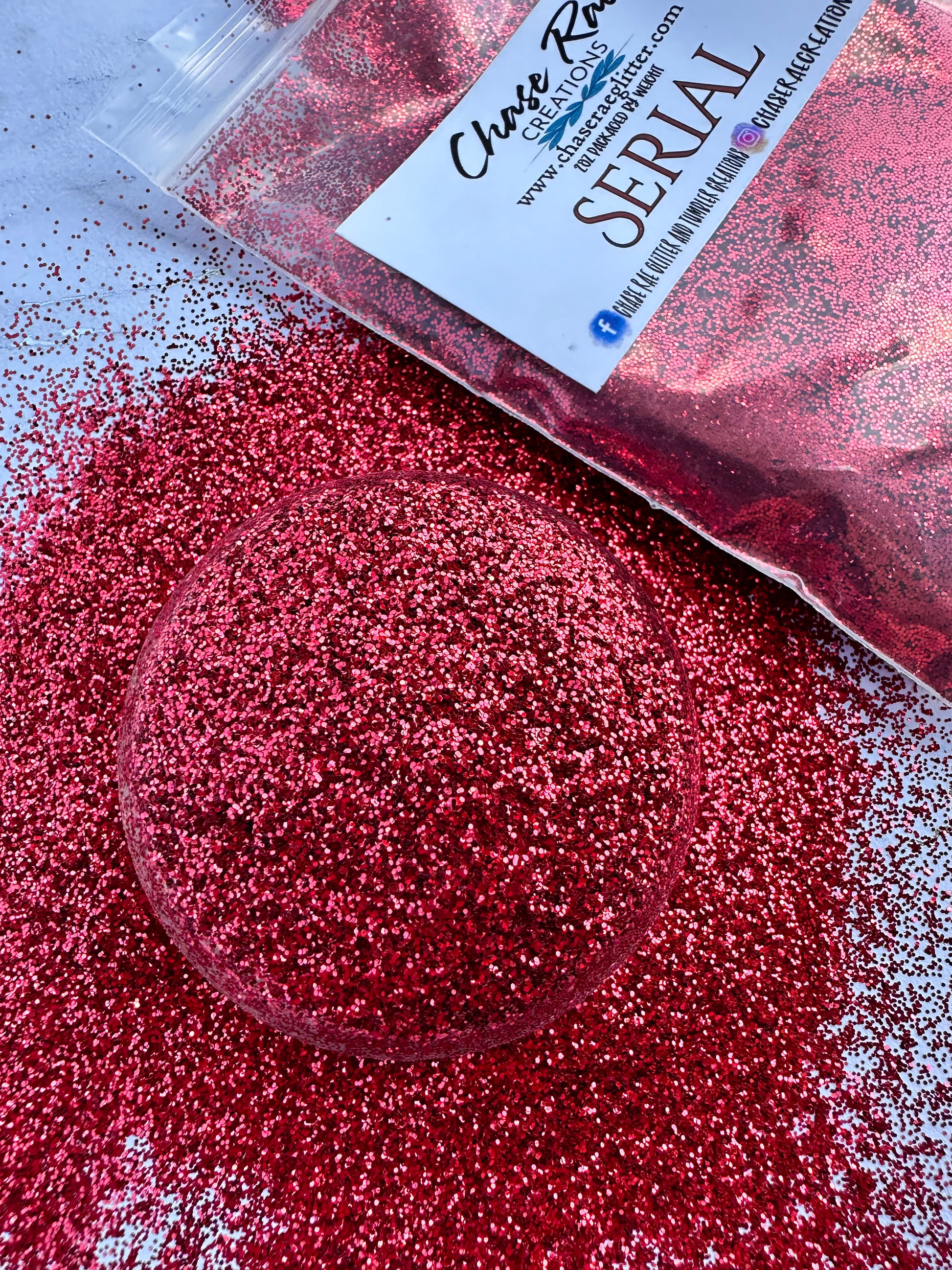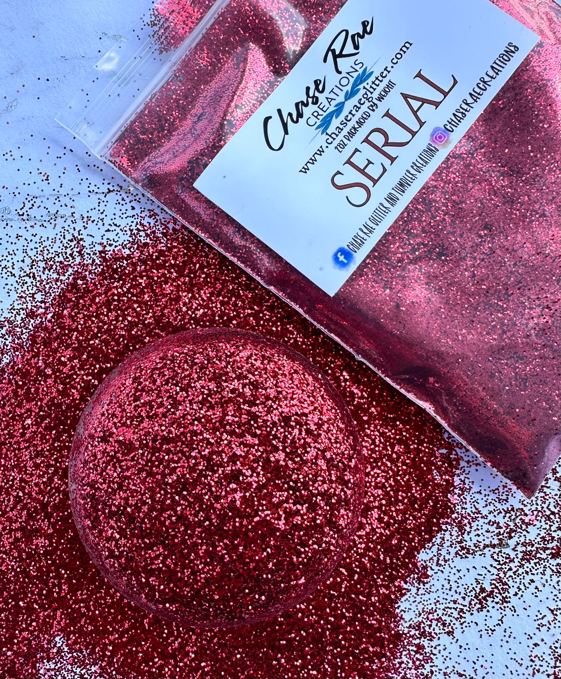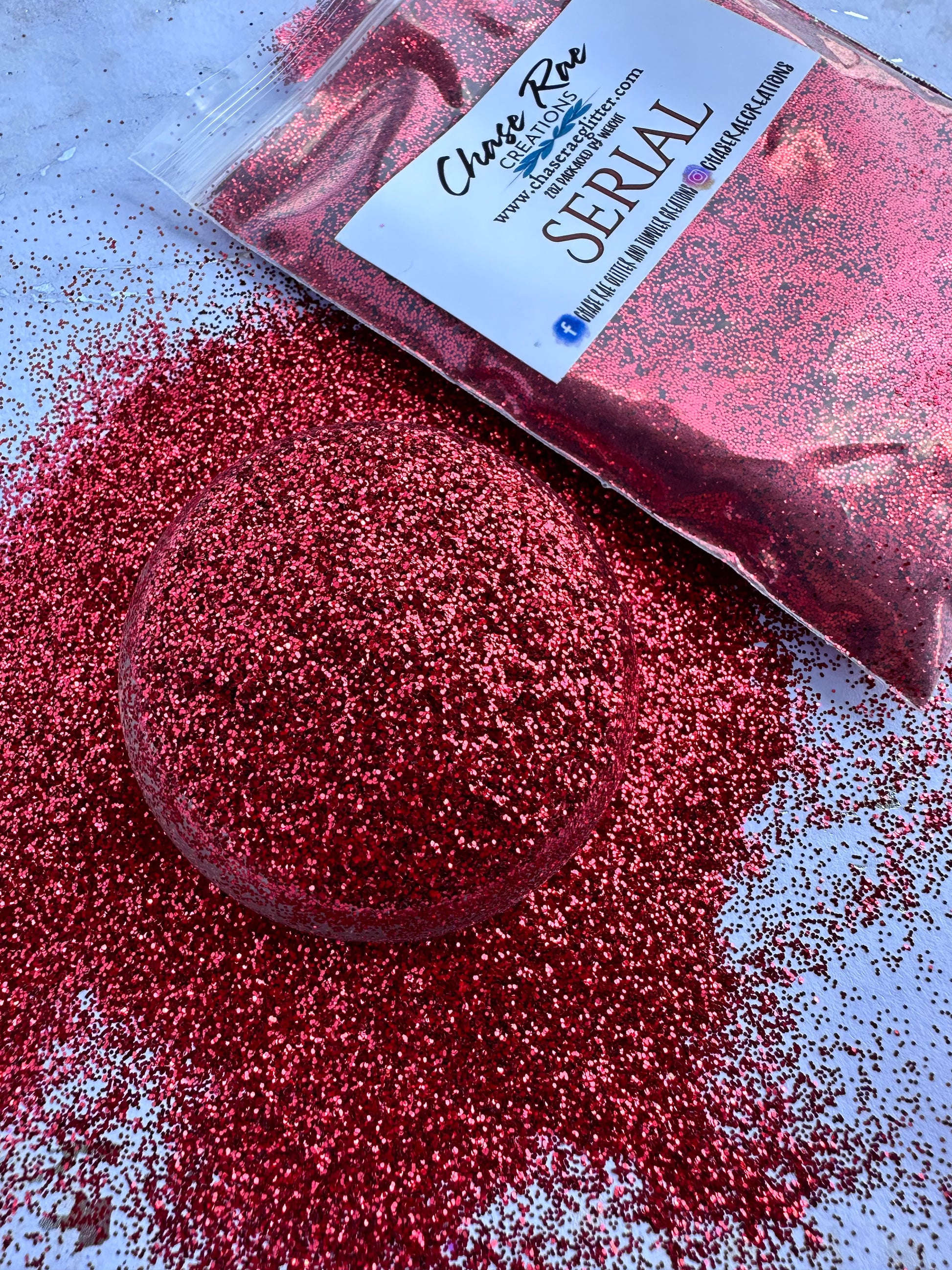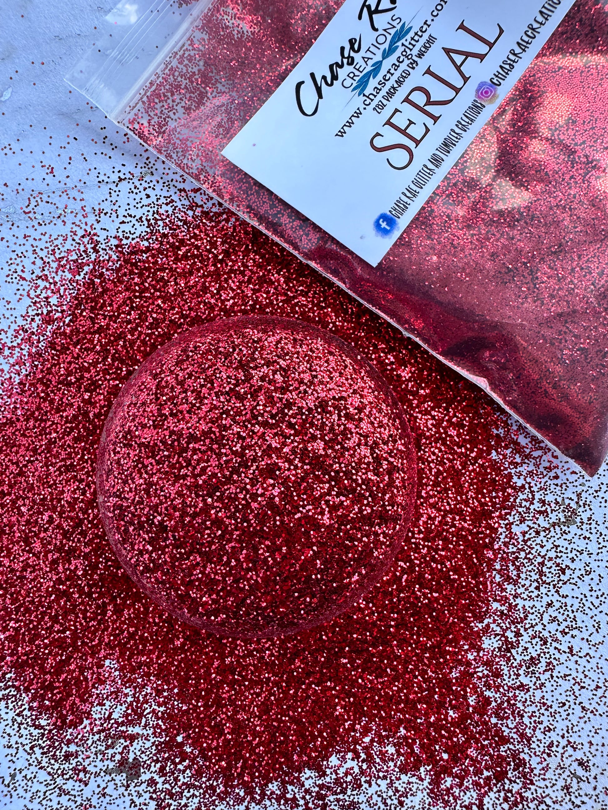 Serial is an all metallic and high sparkle glitter. A perfect Christmas red, or for those true crime junkies. Rich, true red.