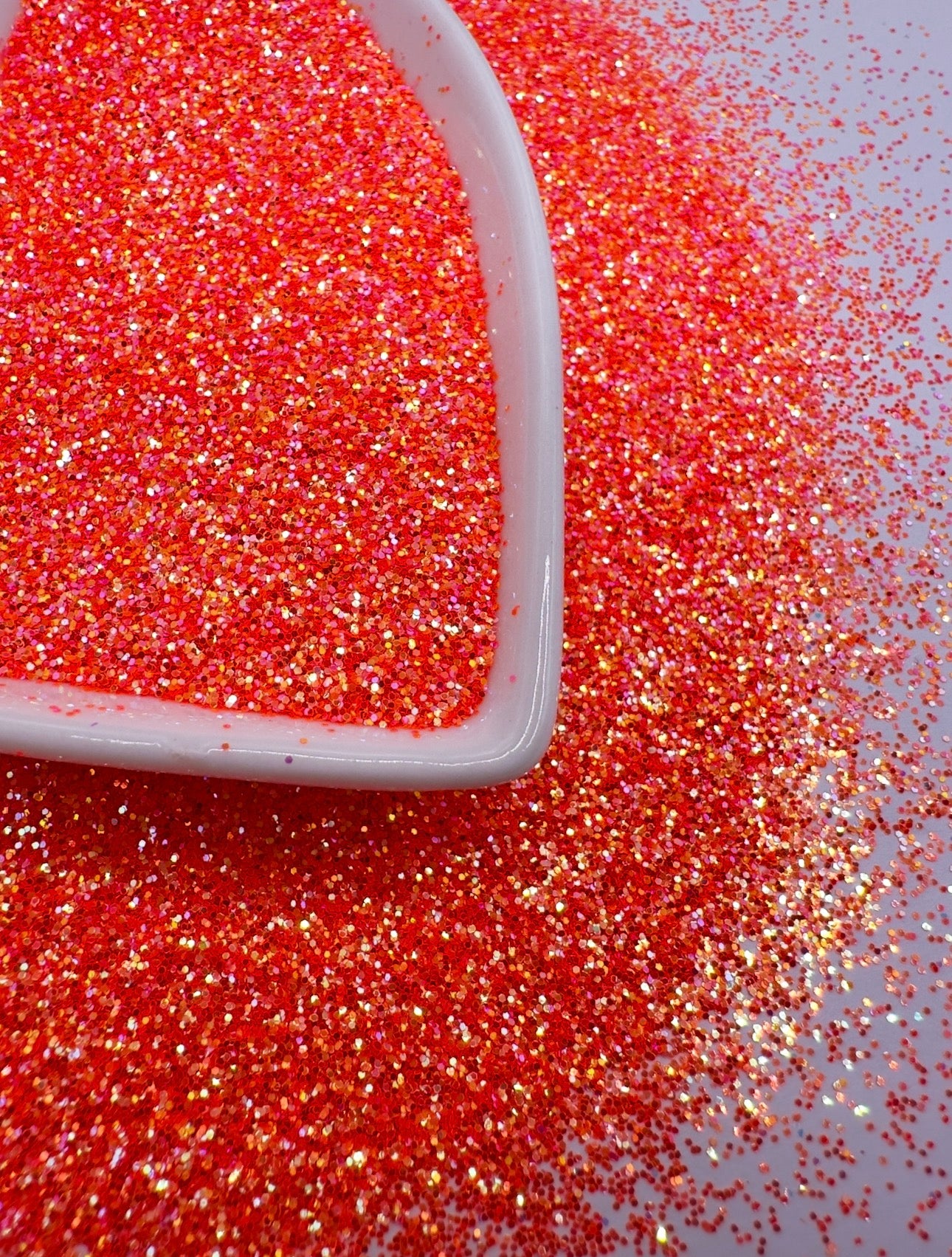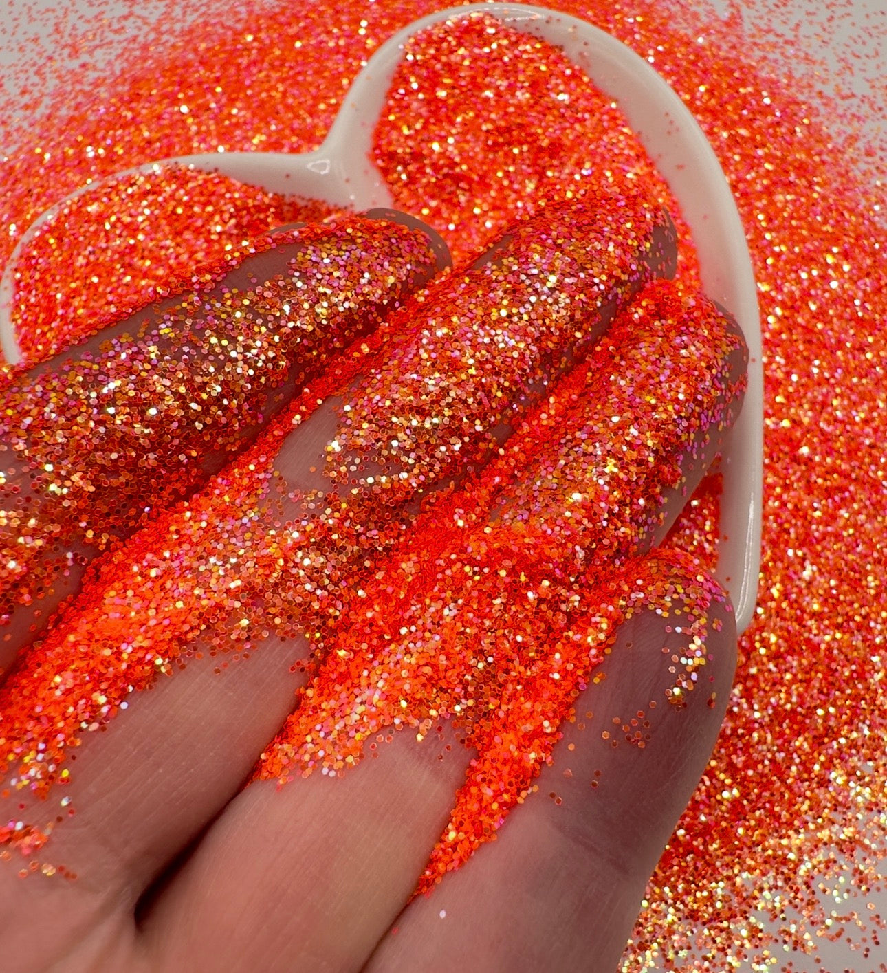 Soleil is a rich, iridescent bright orange glitter.