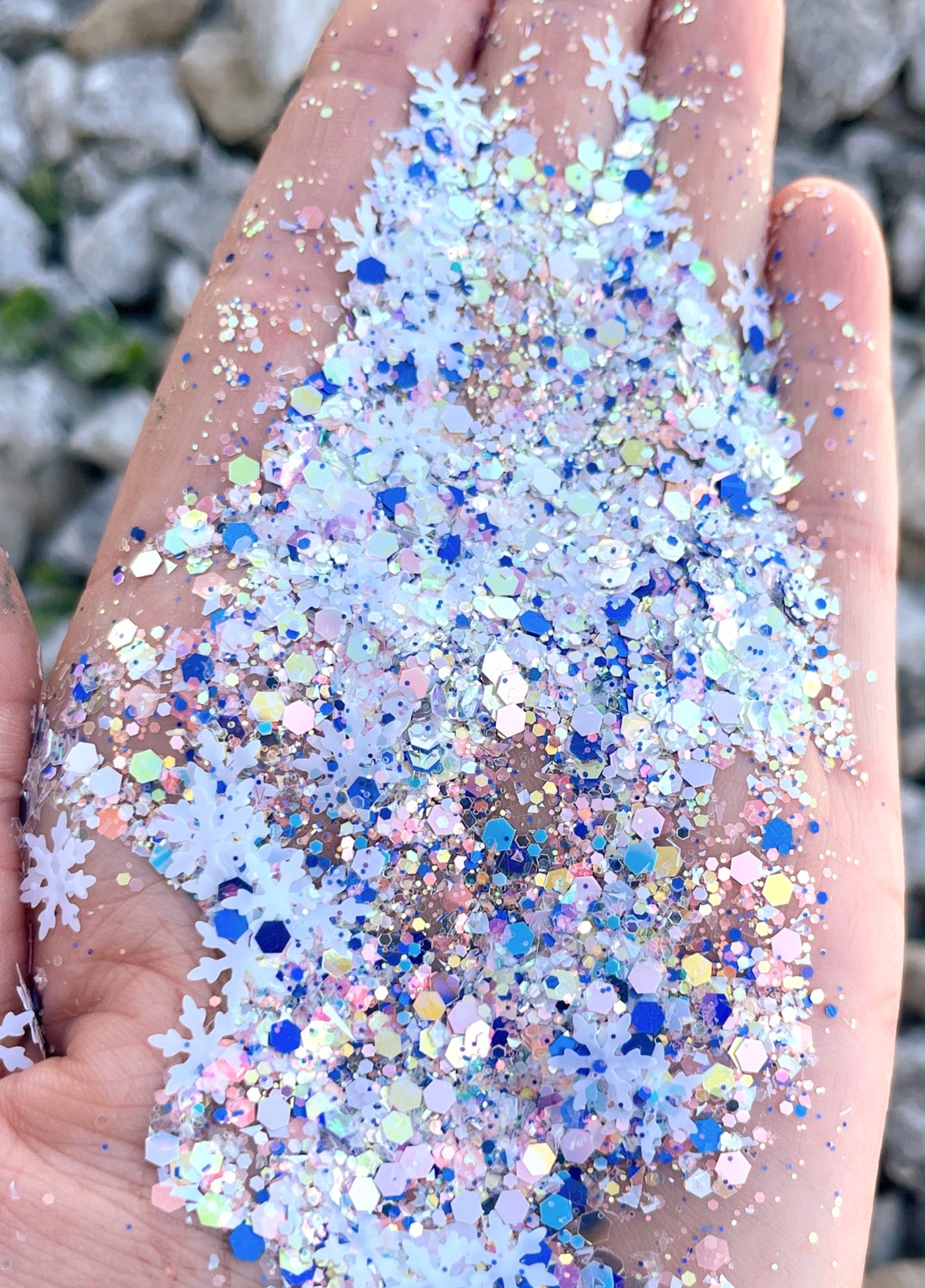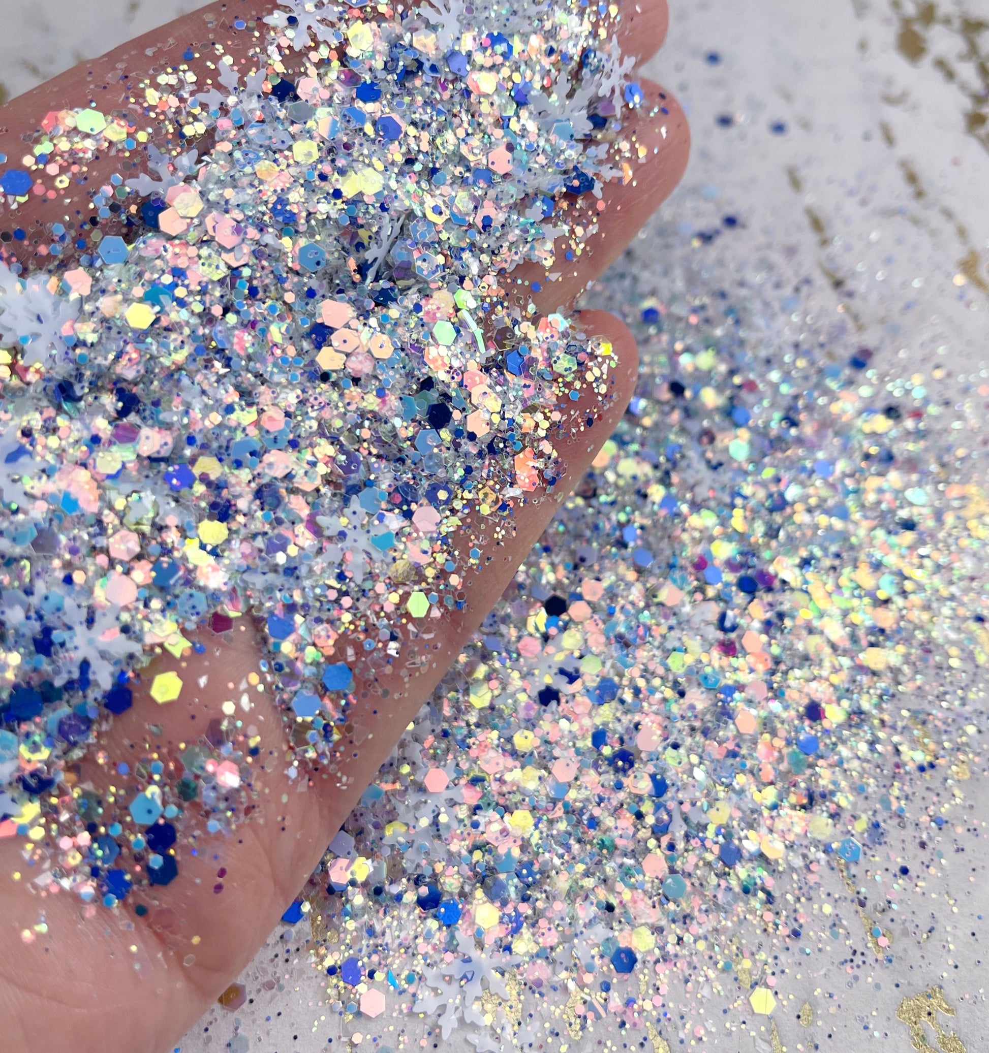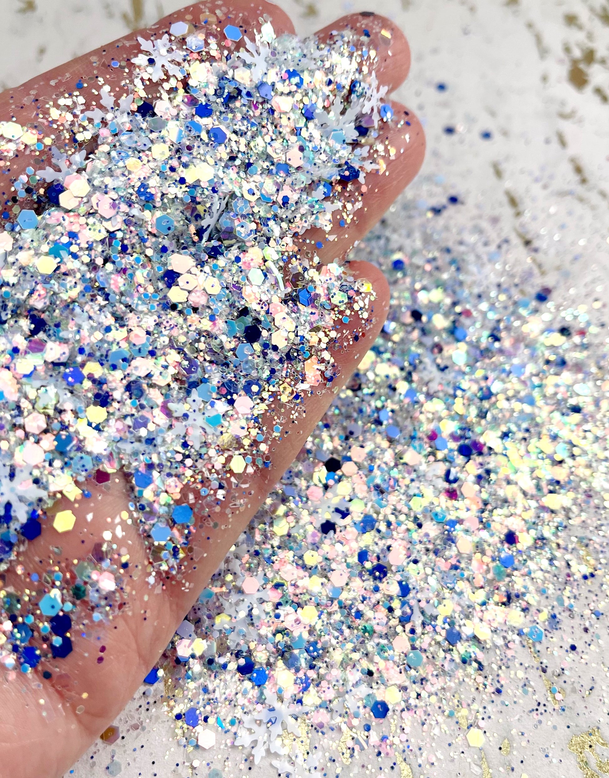 Solstice is a chunky mix of opals and blues. Has an icy look.