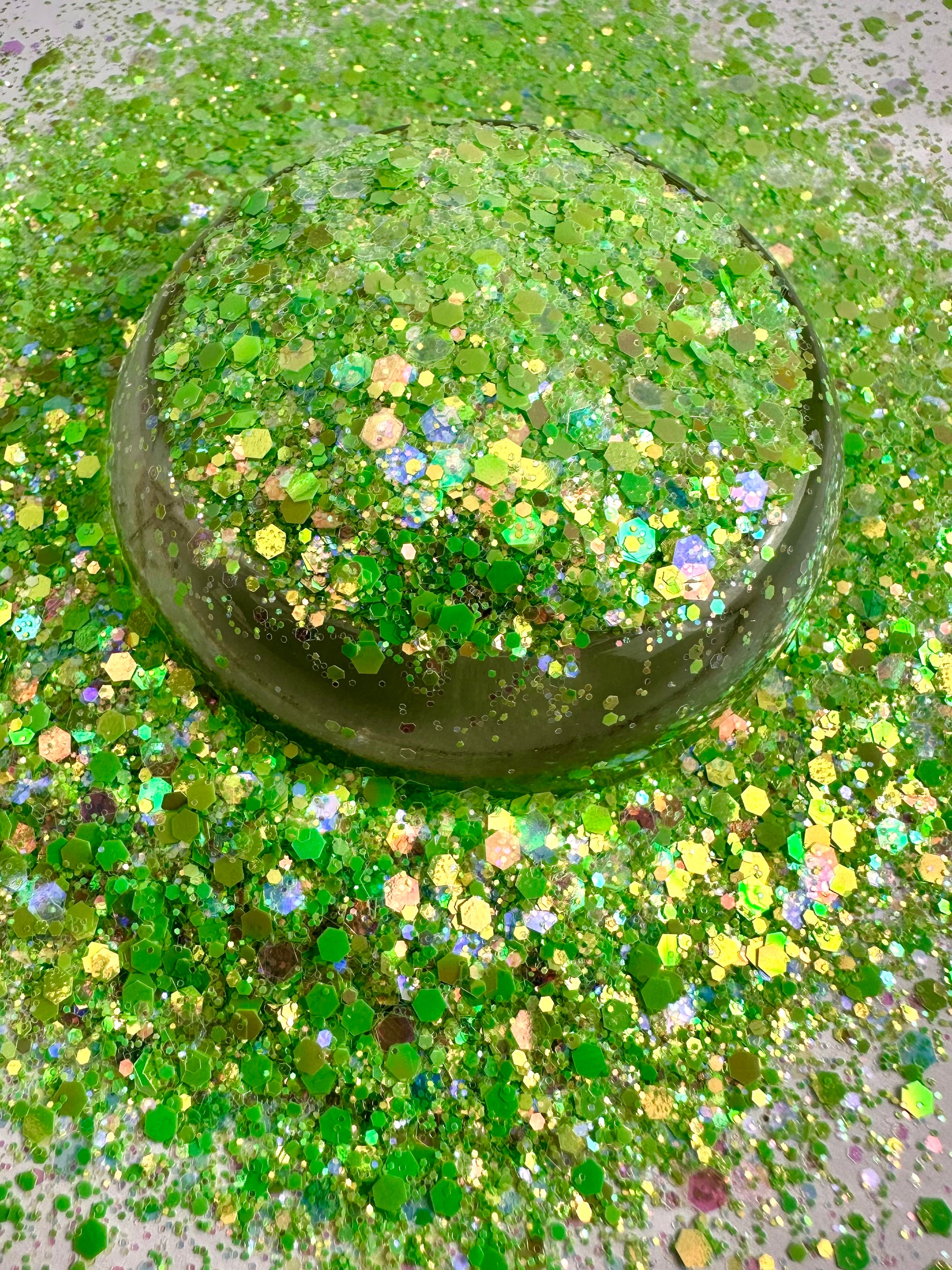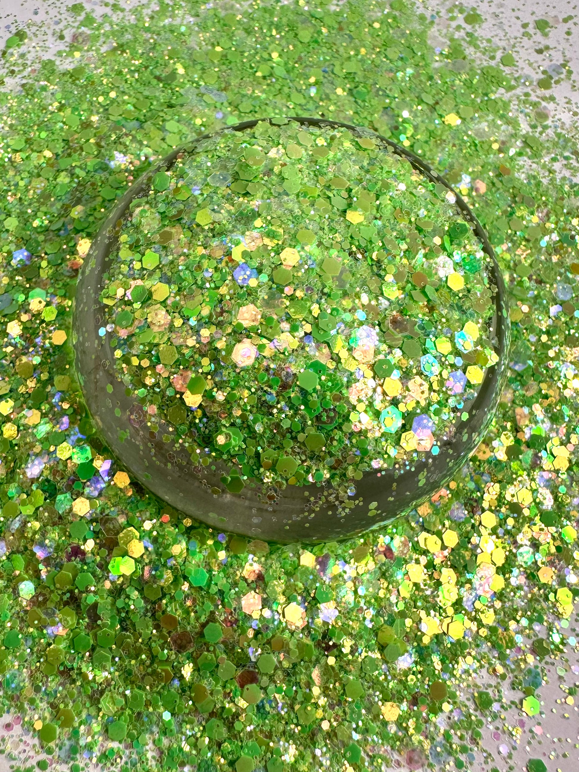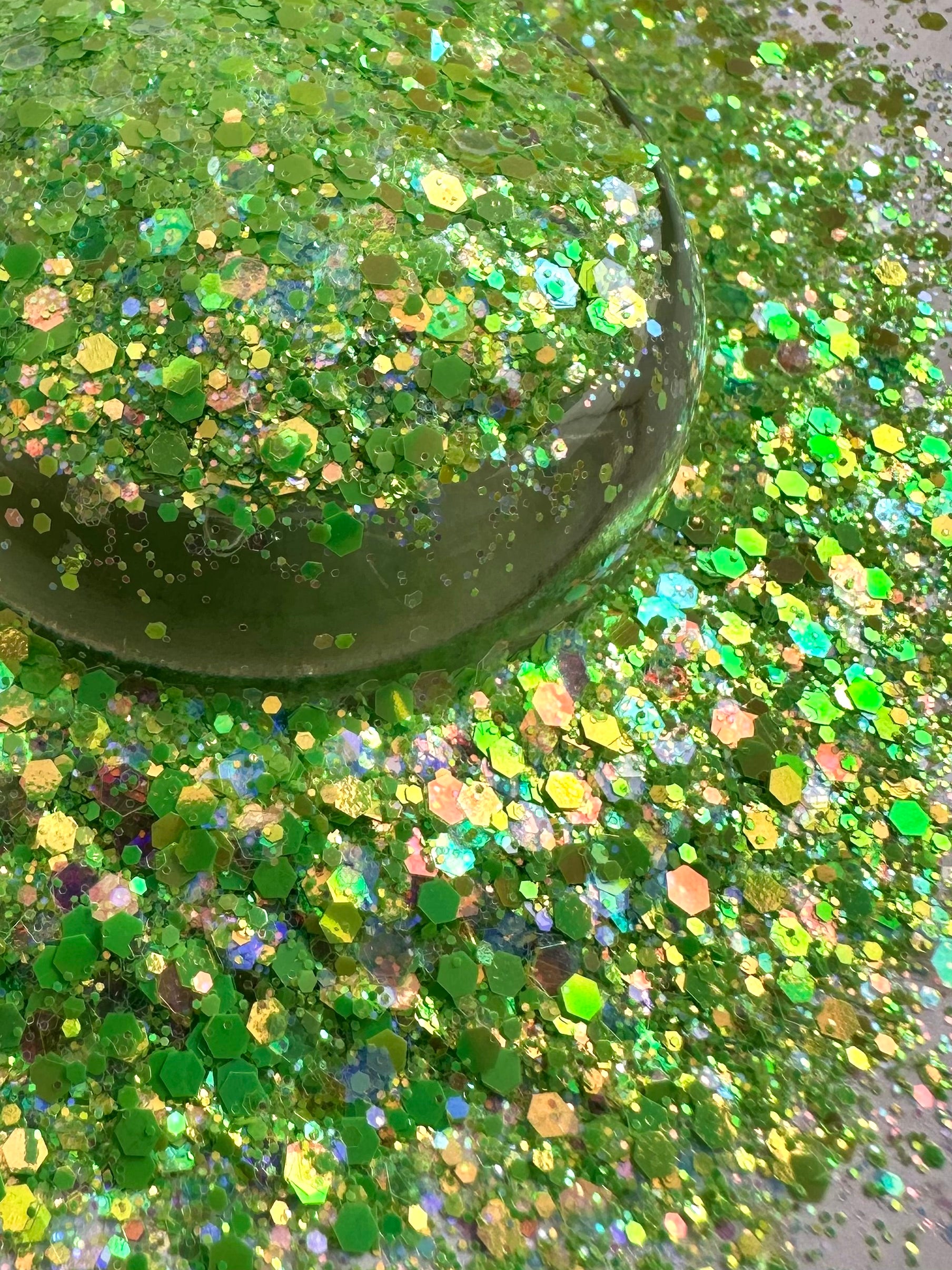 Sprout is such a pretty, bright green. Iridescent chunky mix.