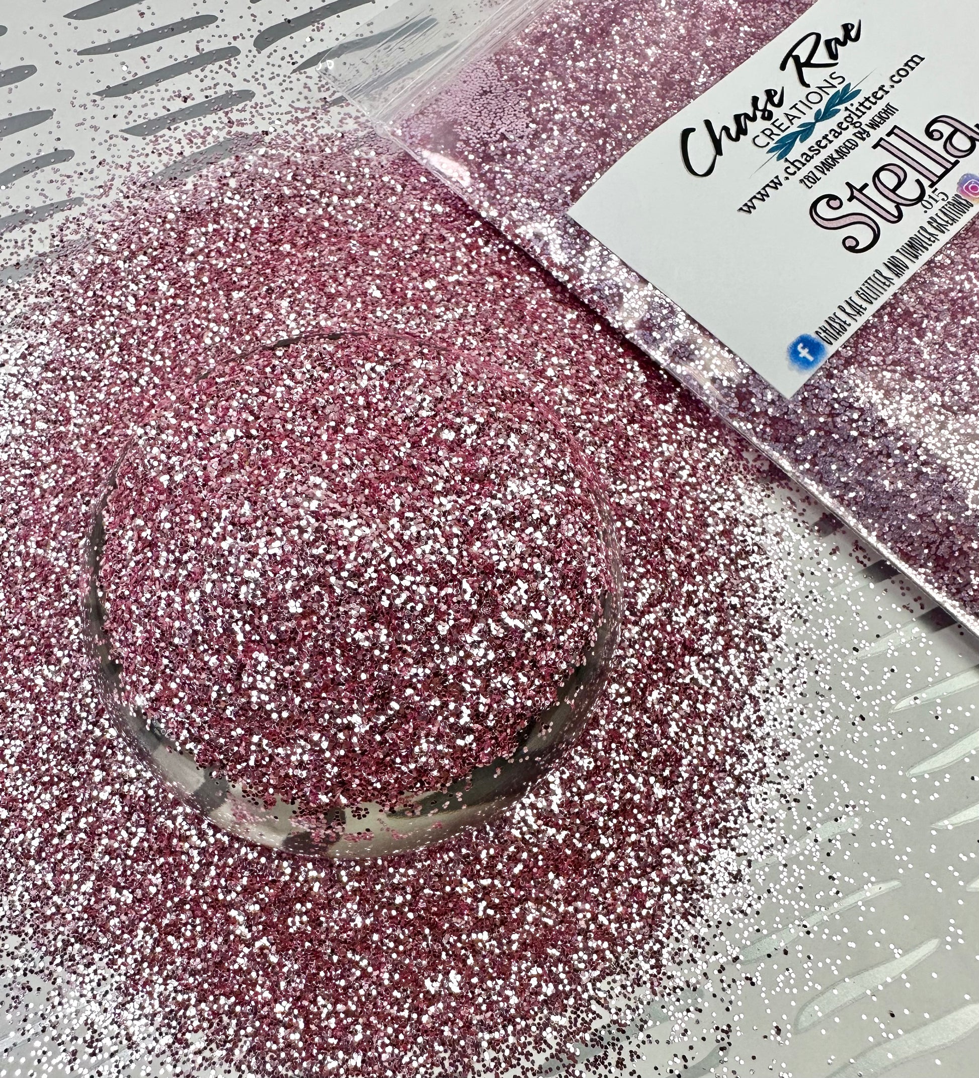Stella is a solid metallic soft pink glitter. A very pretty blush color.