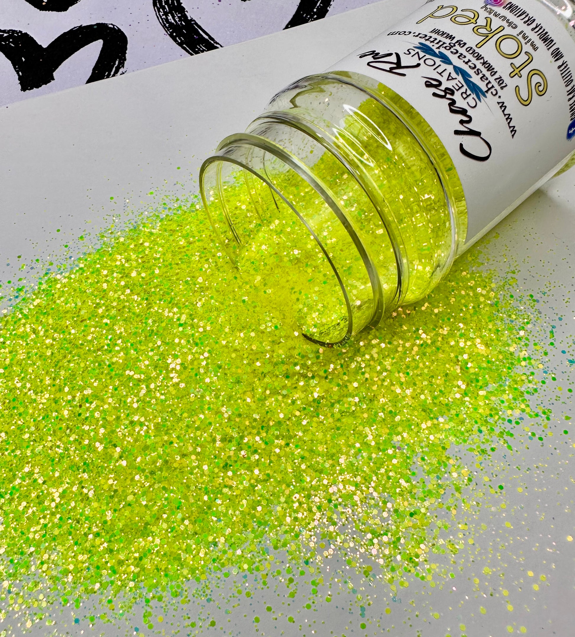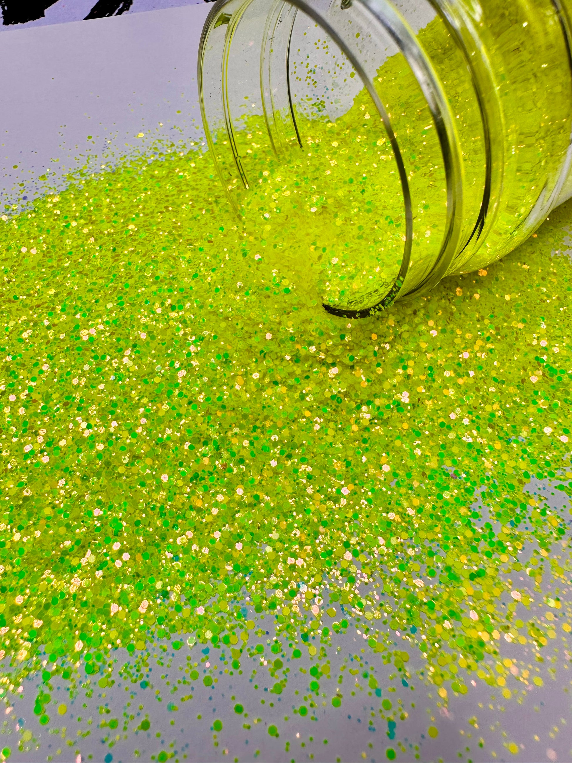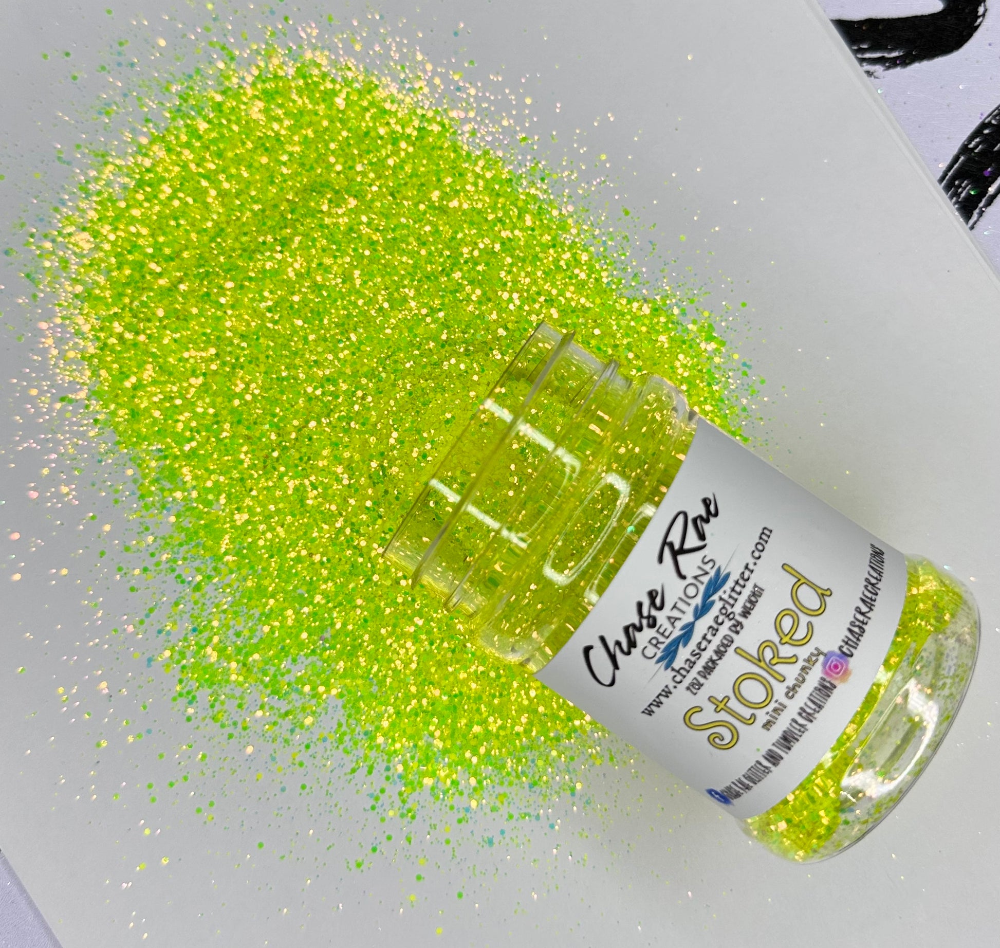 Stoked is an amazing iridescent yellow. A Bright and fun neon glitter!