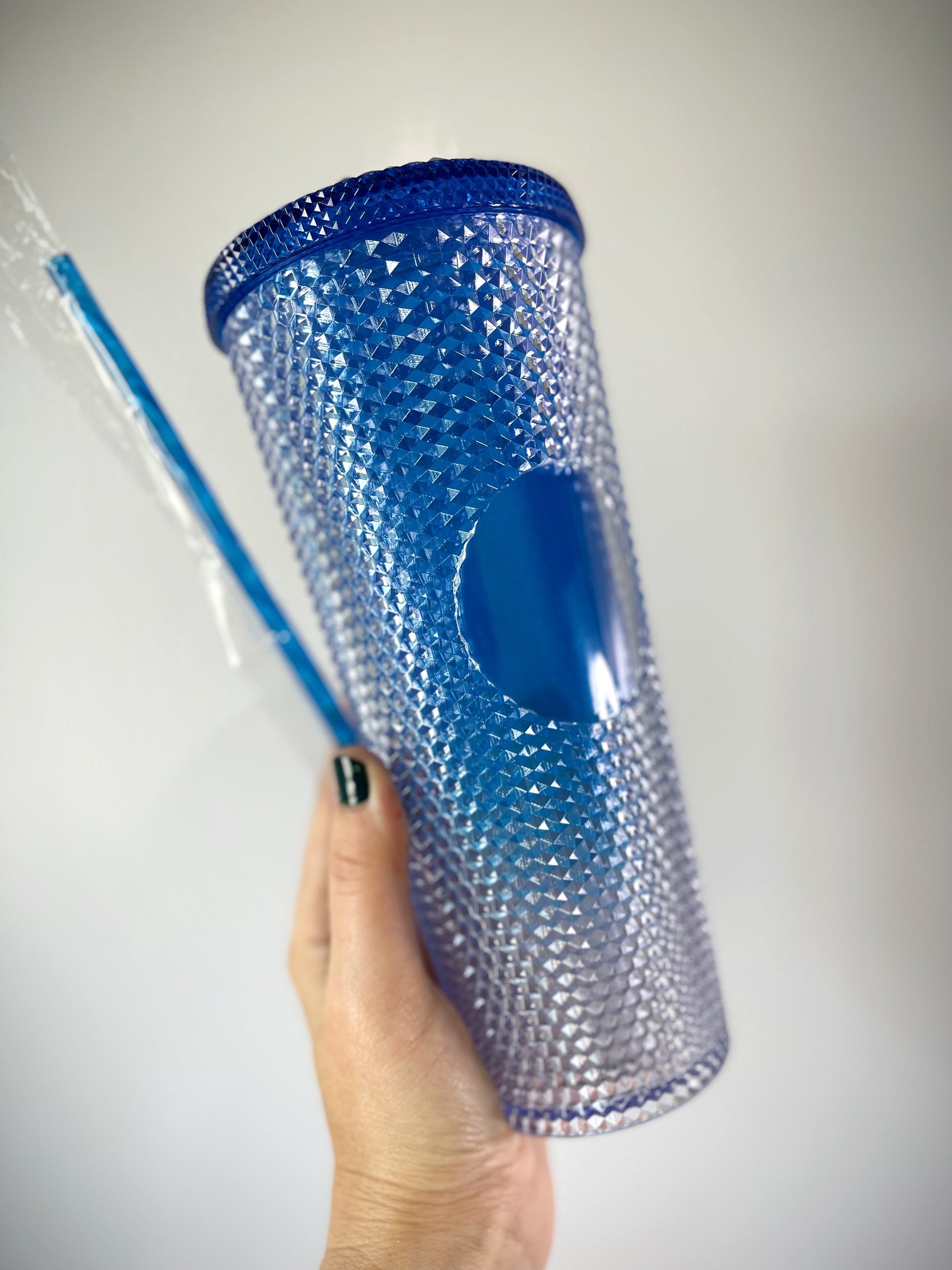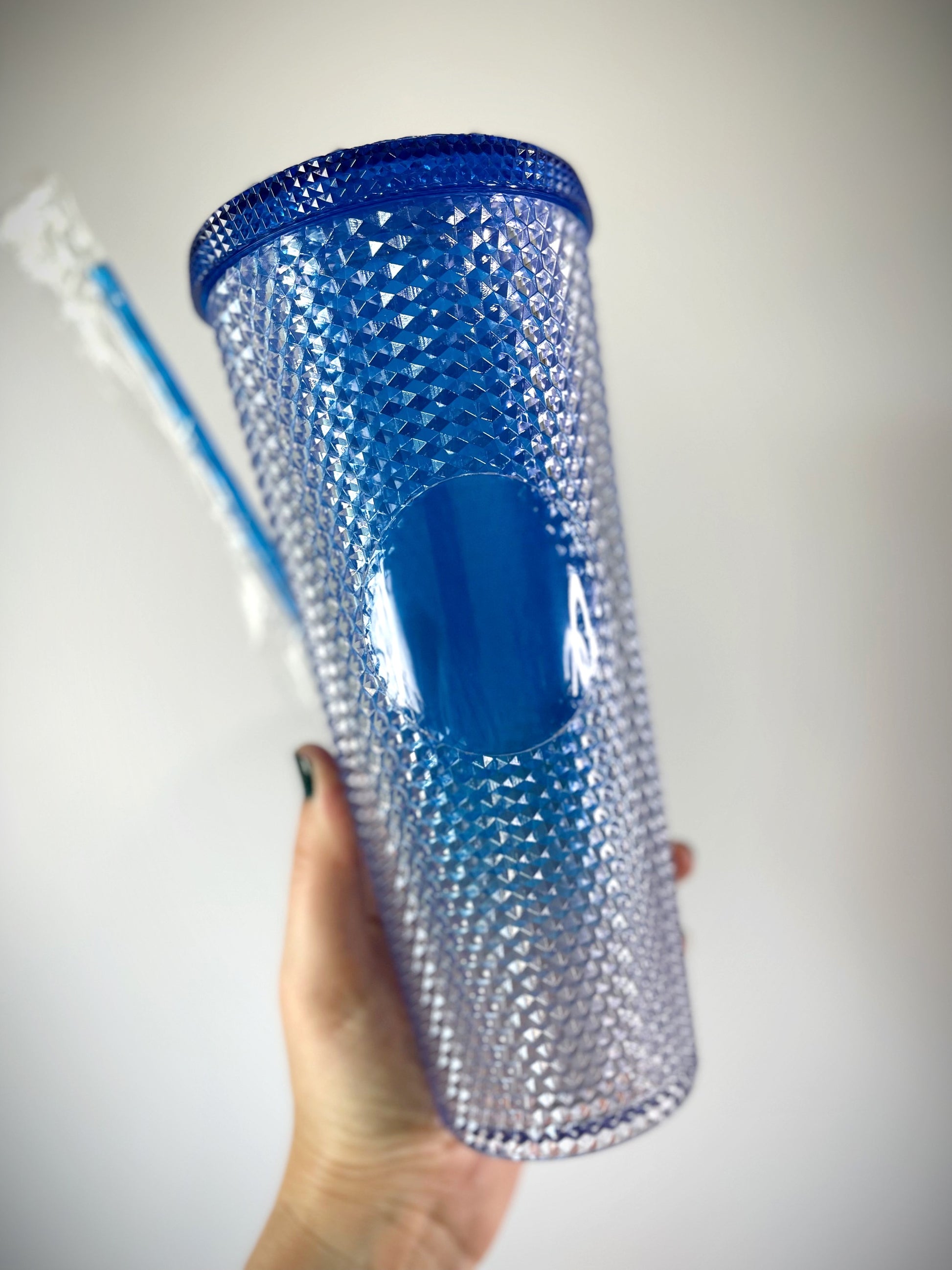 24 oz Studded Blue to Clear Ombre Tumbler. Non Branded. Double walled.