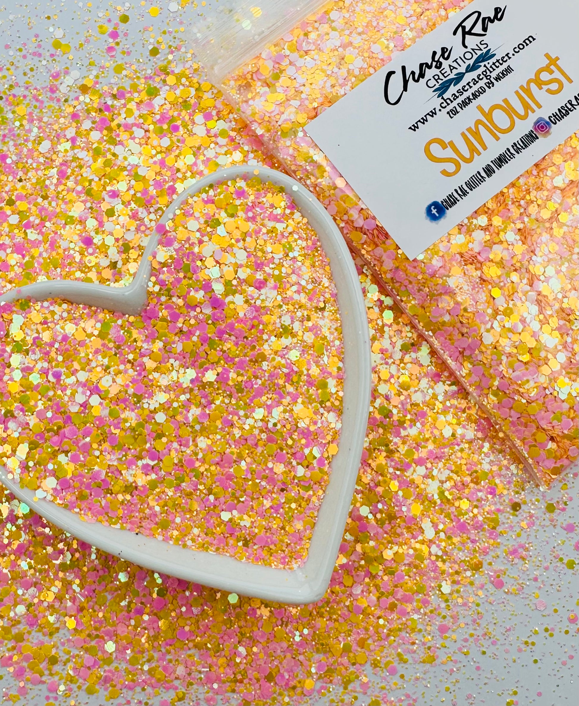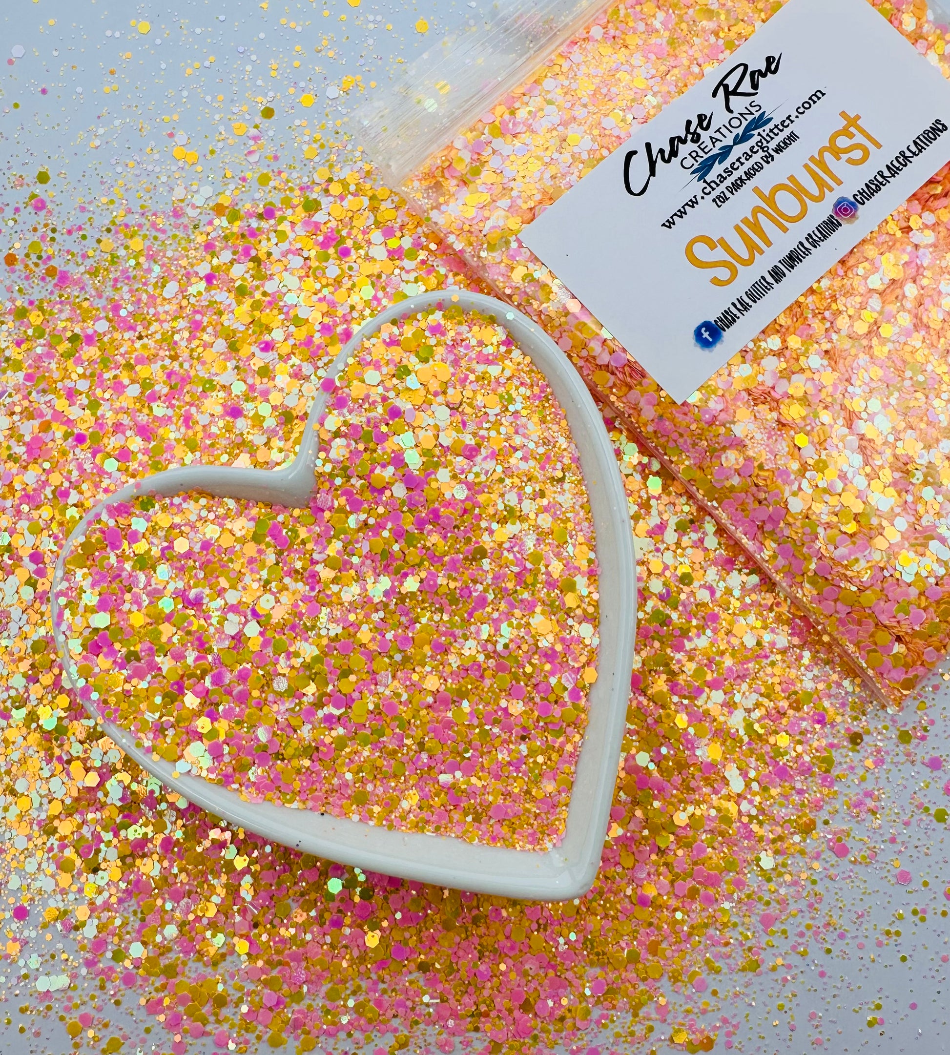 This semi chunky mix is perfect for Spring or Summer! Sunburst is a mix of pastel orange and pink with a beautiful iridescence. Reminds me of a beautiful sunset!