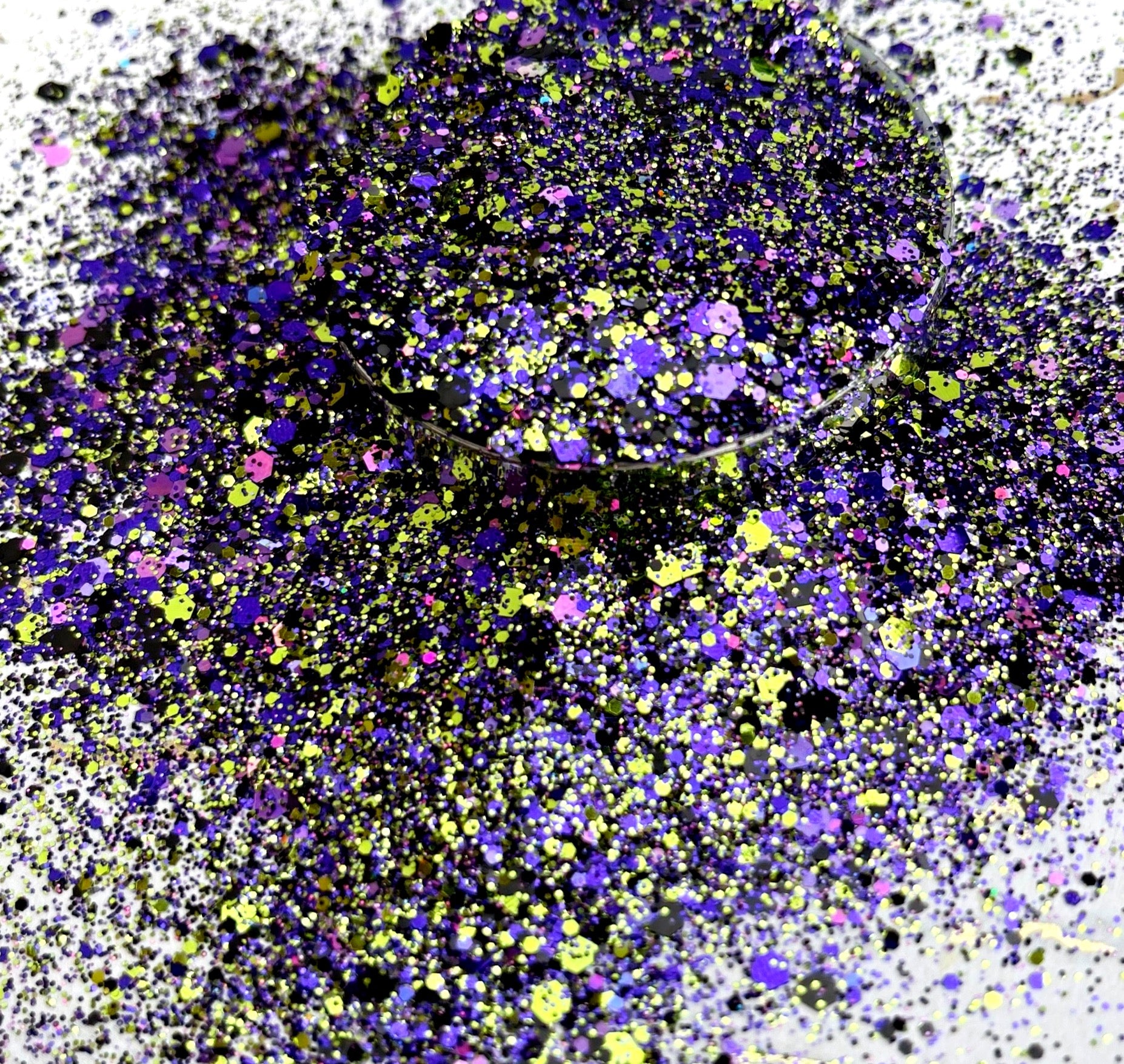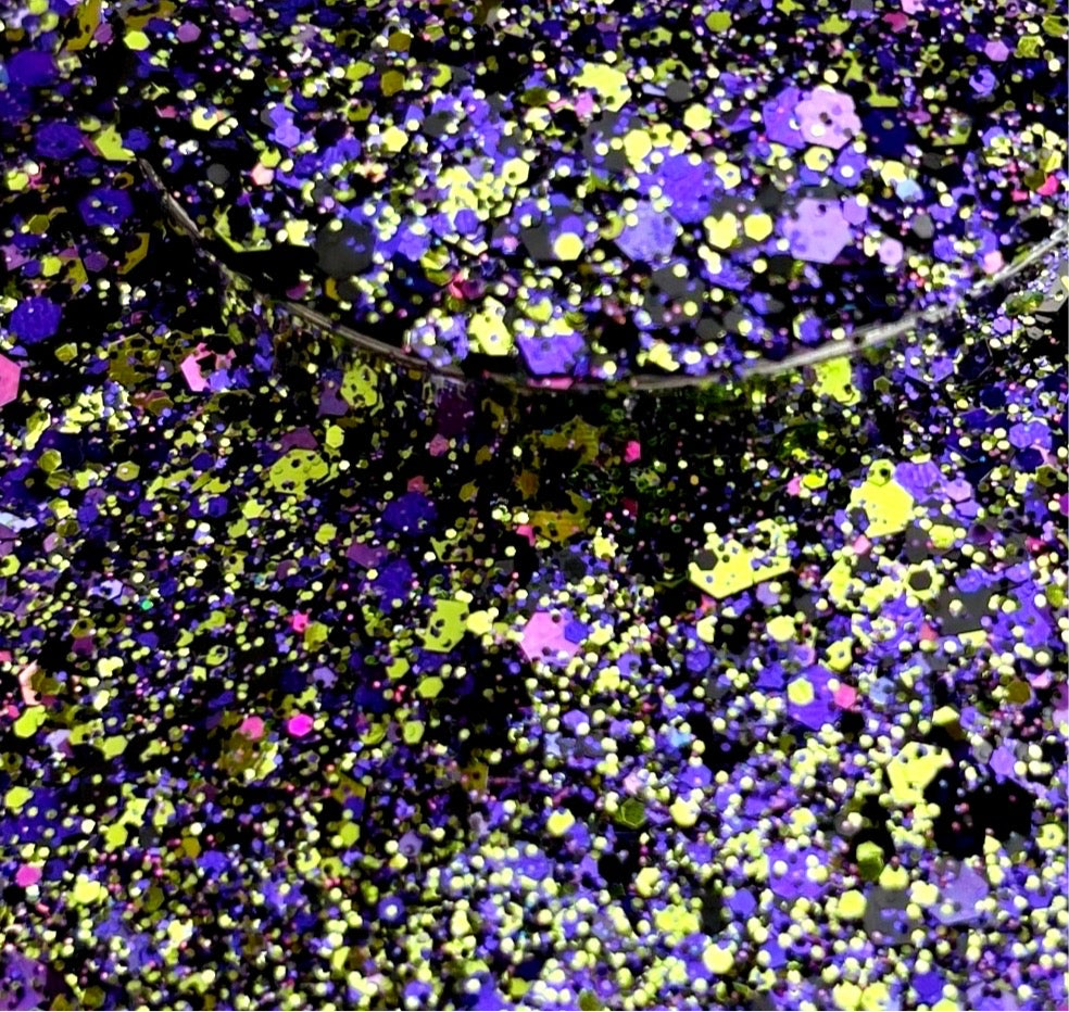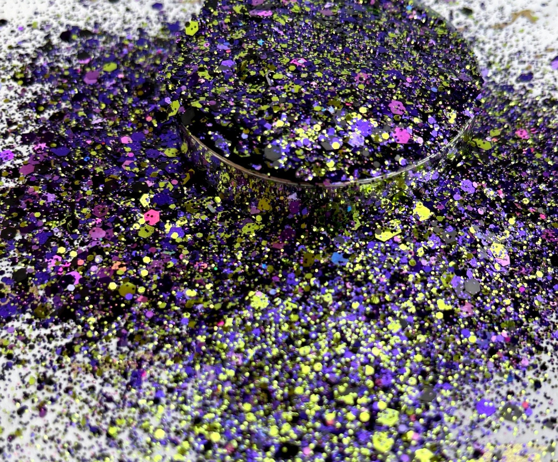 Superstition is a chunky mix. Purple, green and black make up this gorgeous mix! Perfect for Halloween!