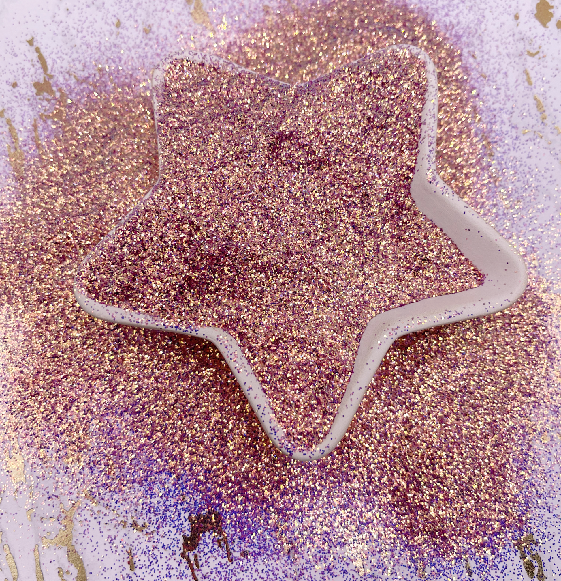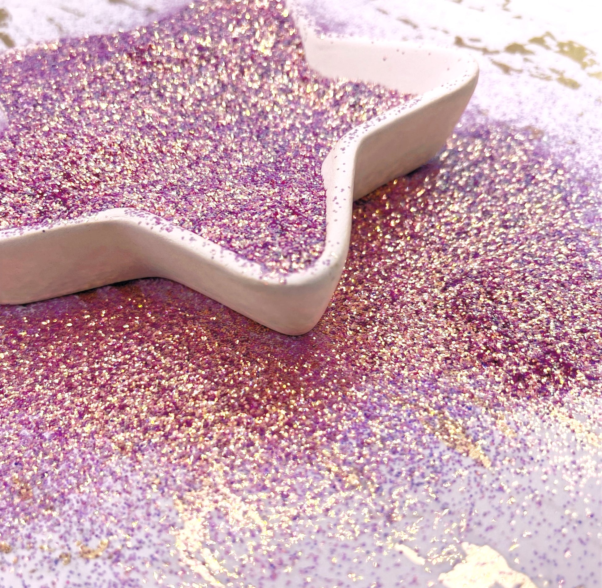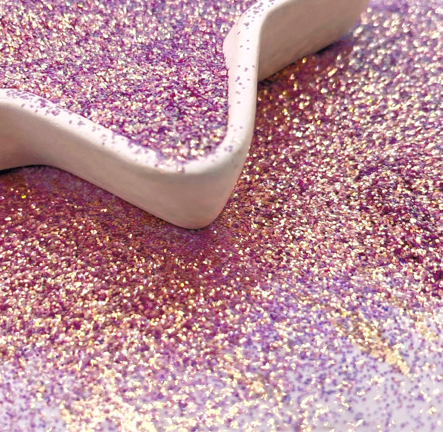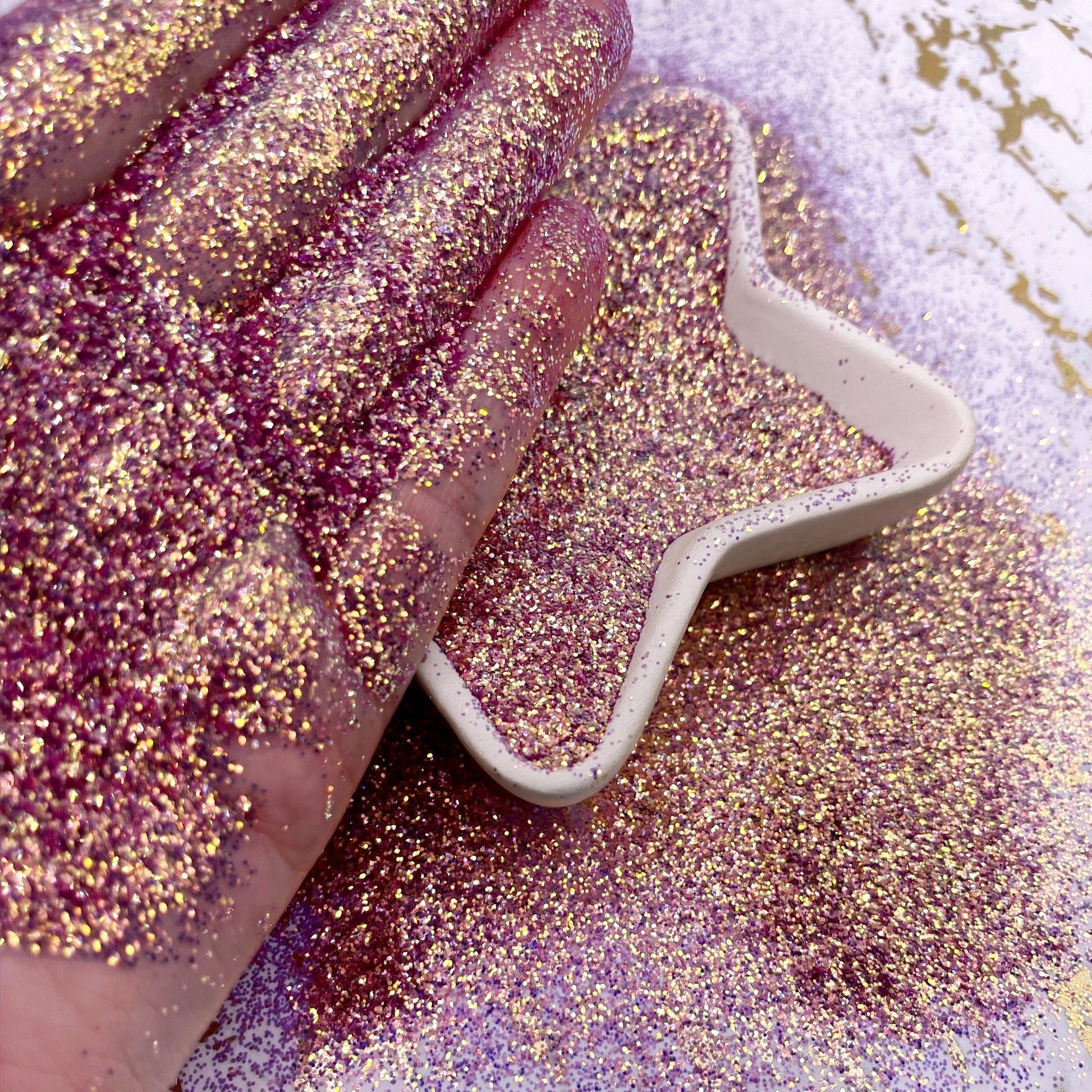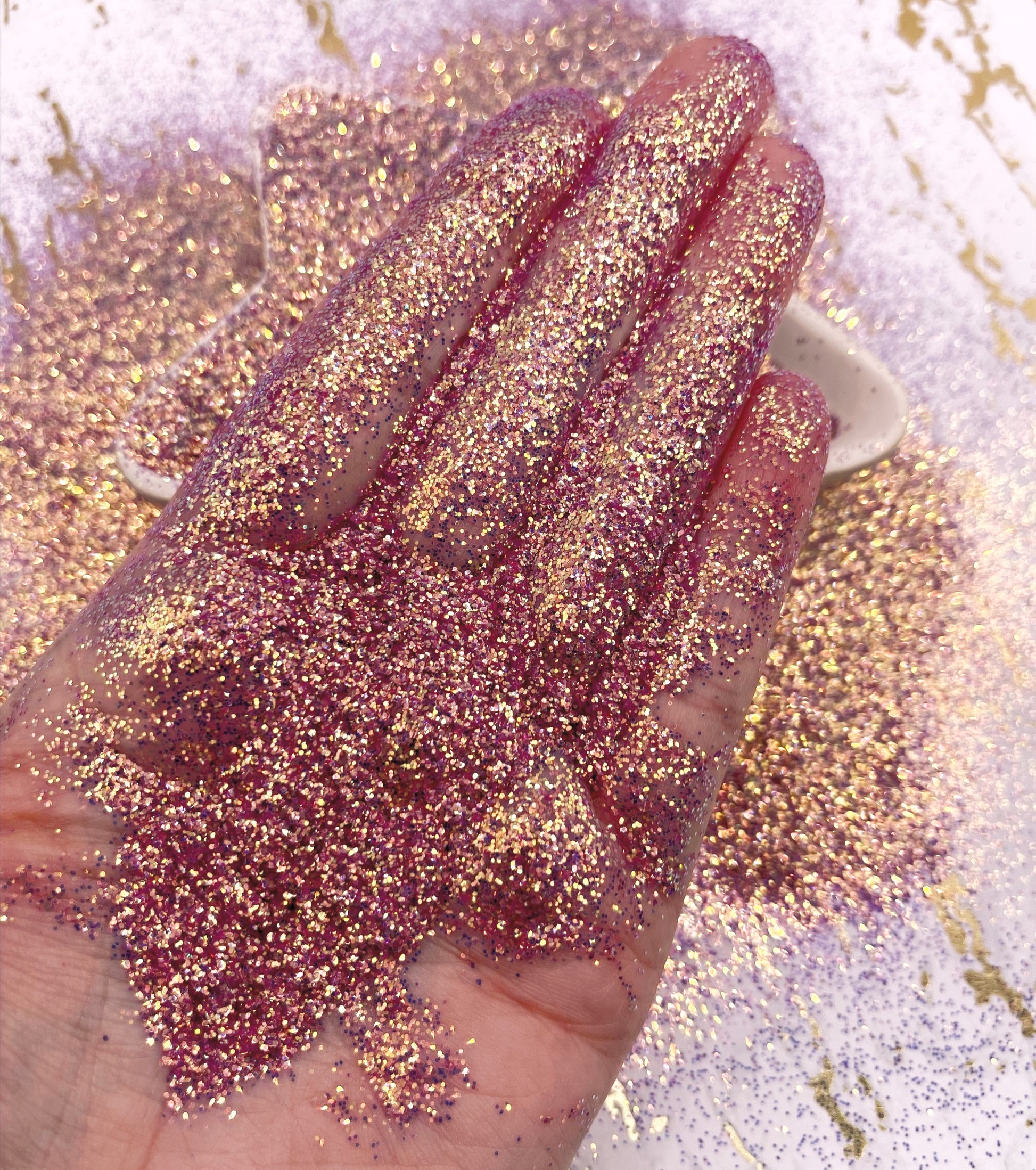 Taro is a high sparkling iridescent glitter. A gorgeous pink with golden undertone.