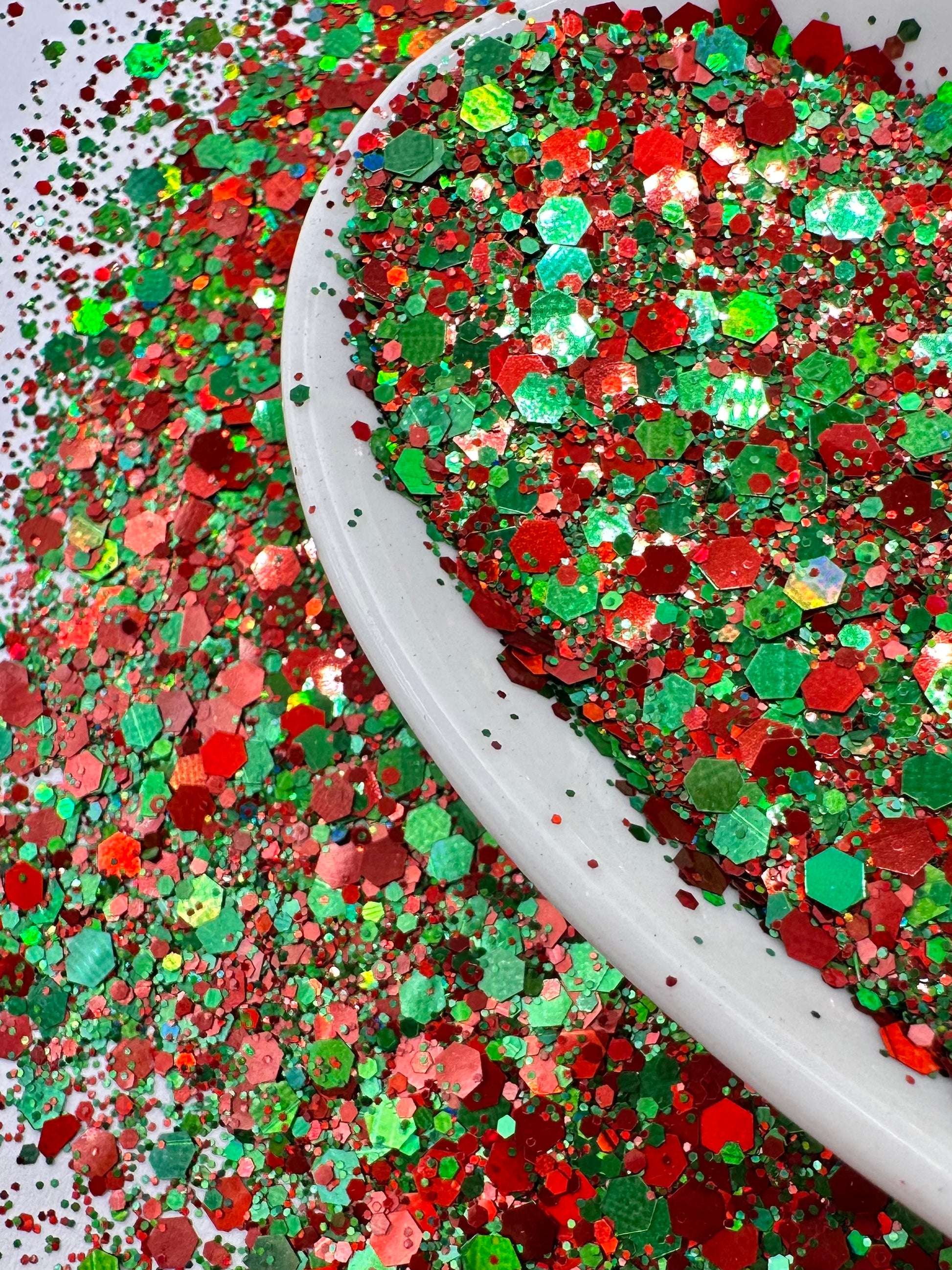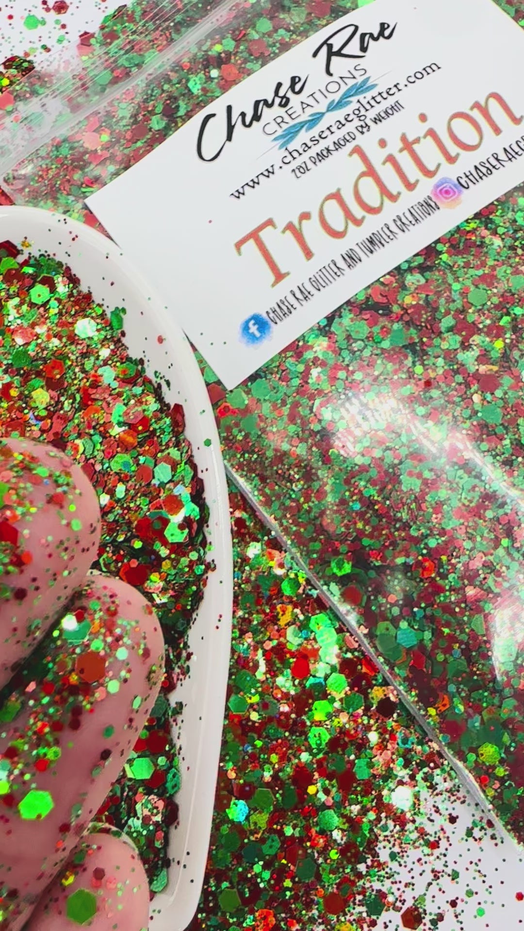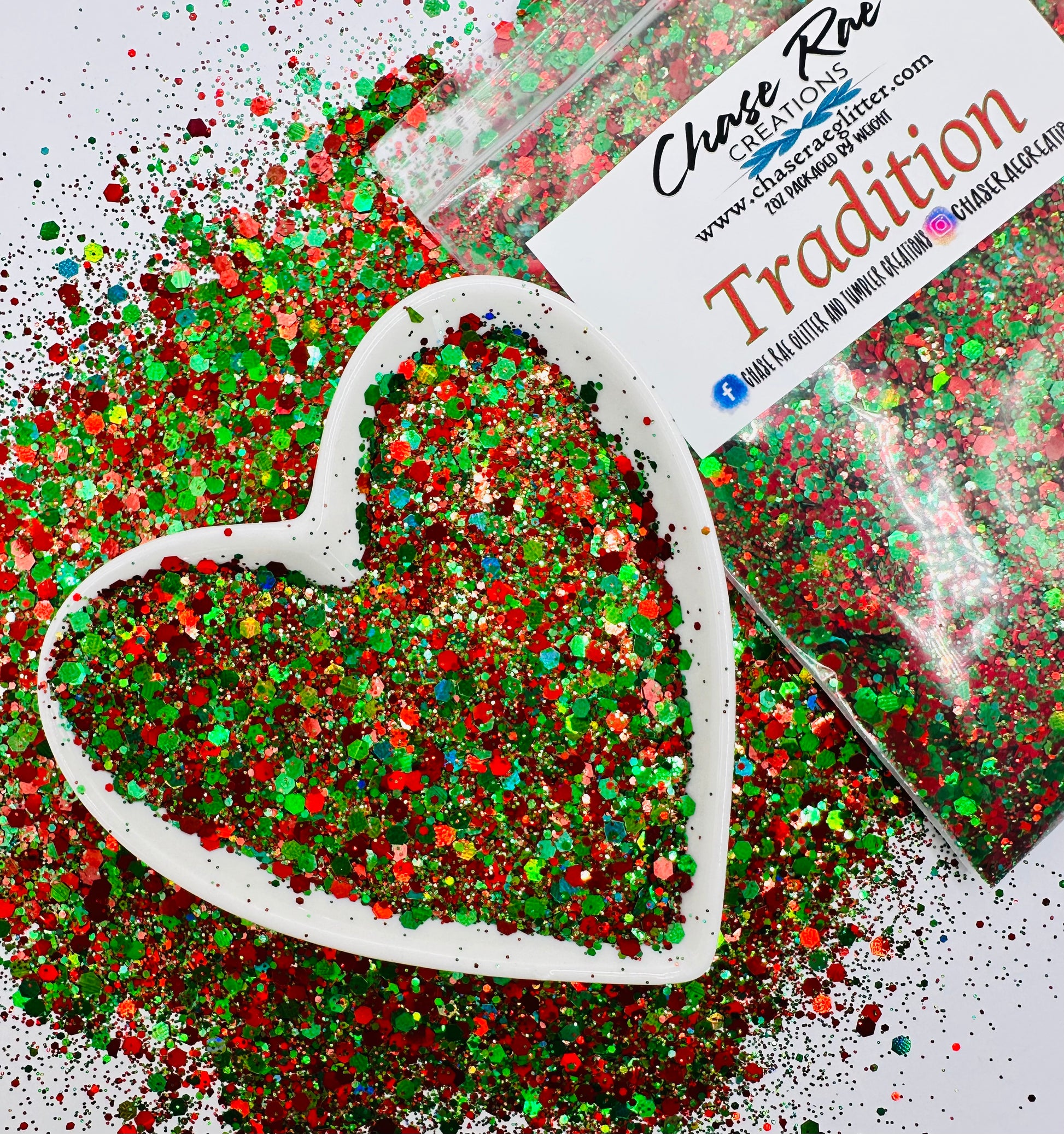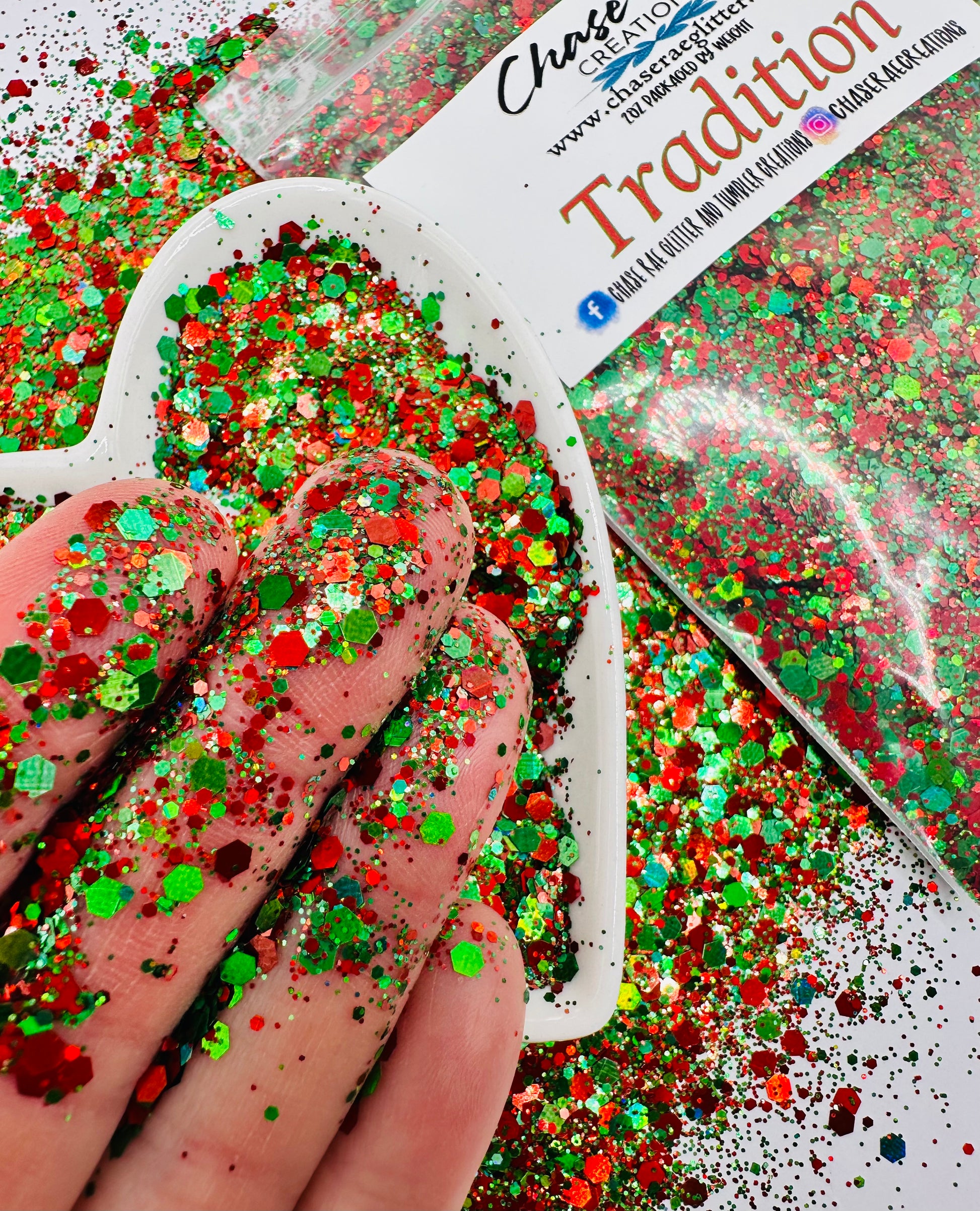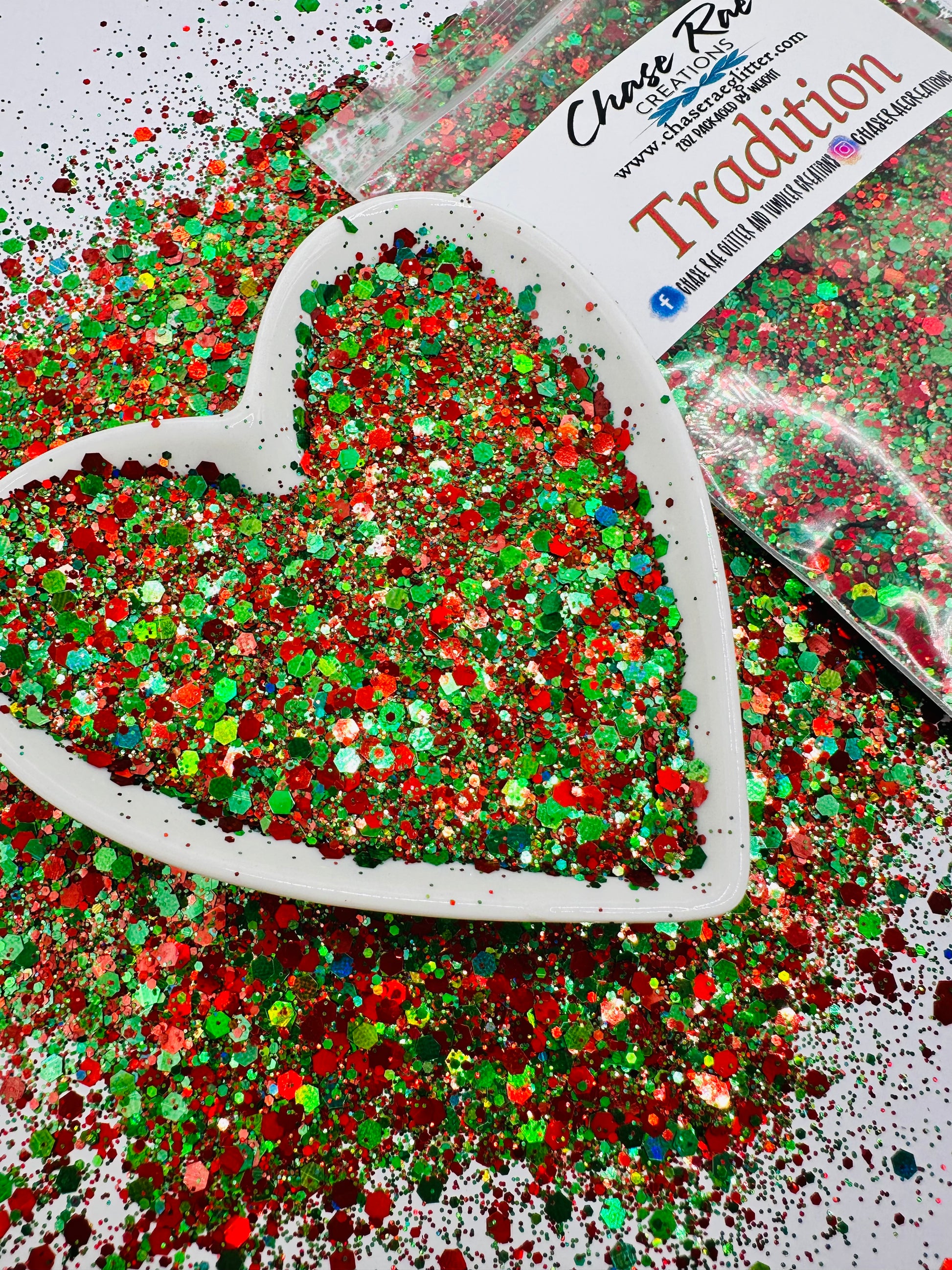 Tradition is a chunky mix of green and red. Perfect for Christmas!!