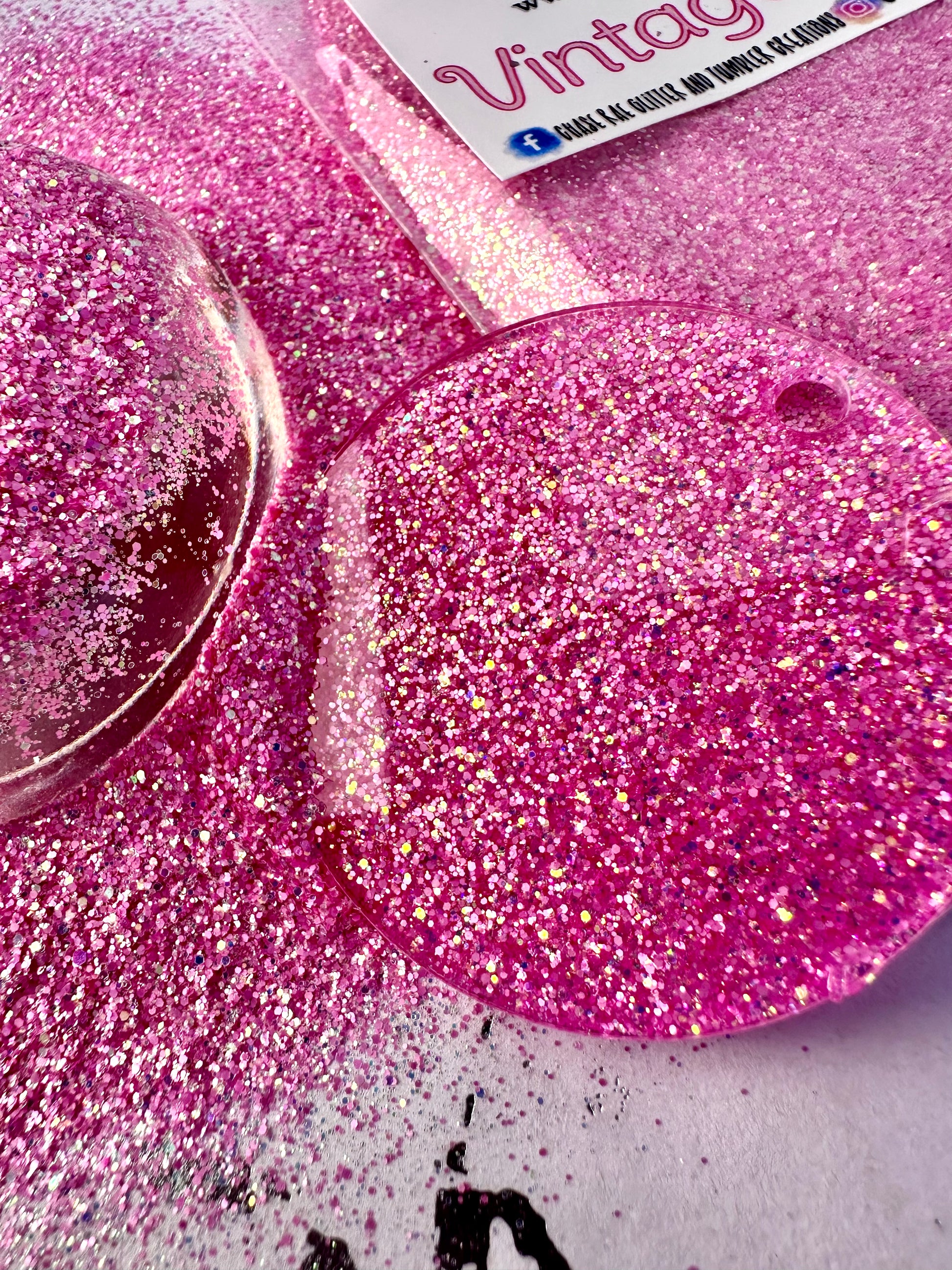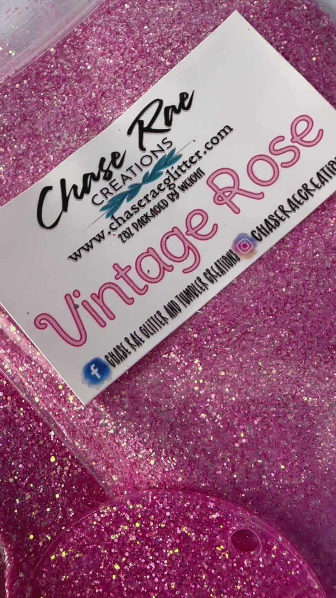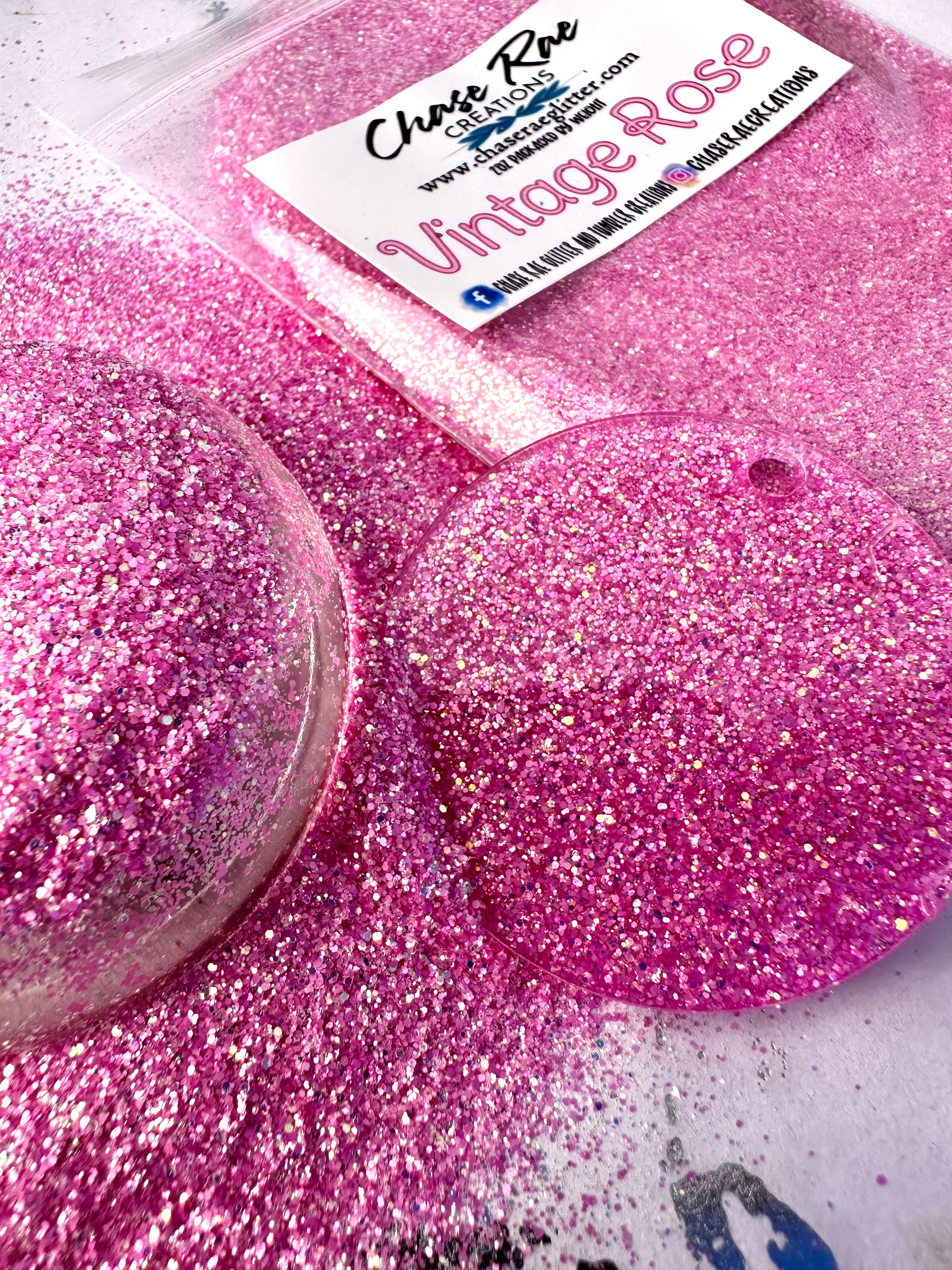 Vintage Rose is a semitransparent pink glitter. This one has some solid pearl pieces and a beautiful rainbow iridescence with opals.