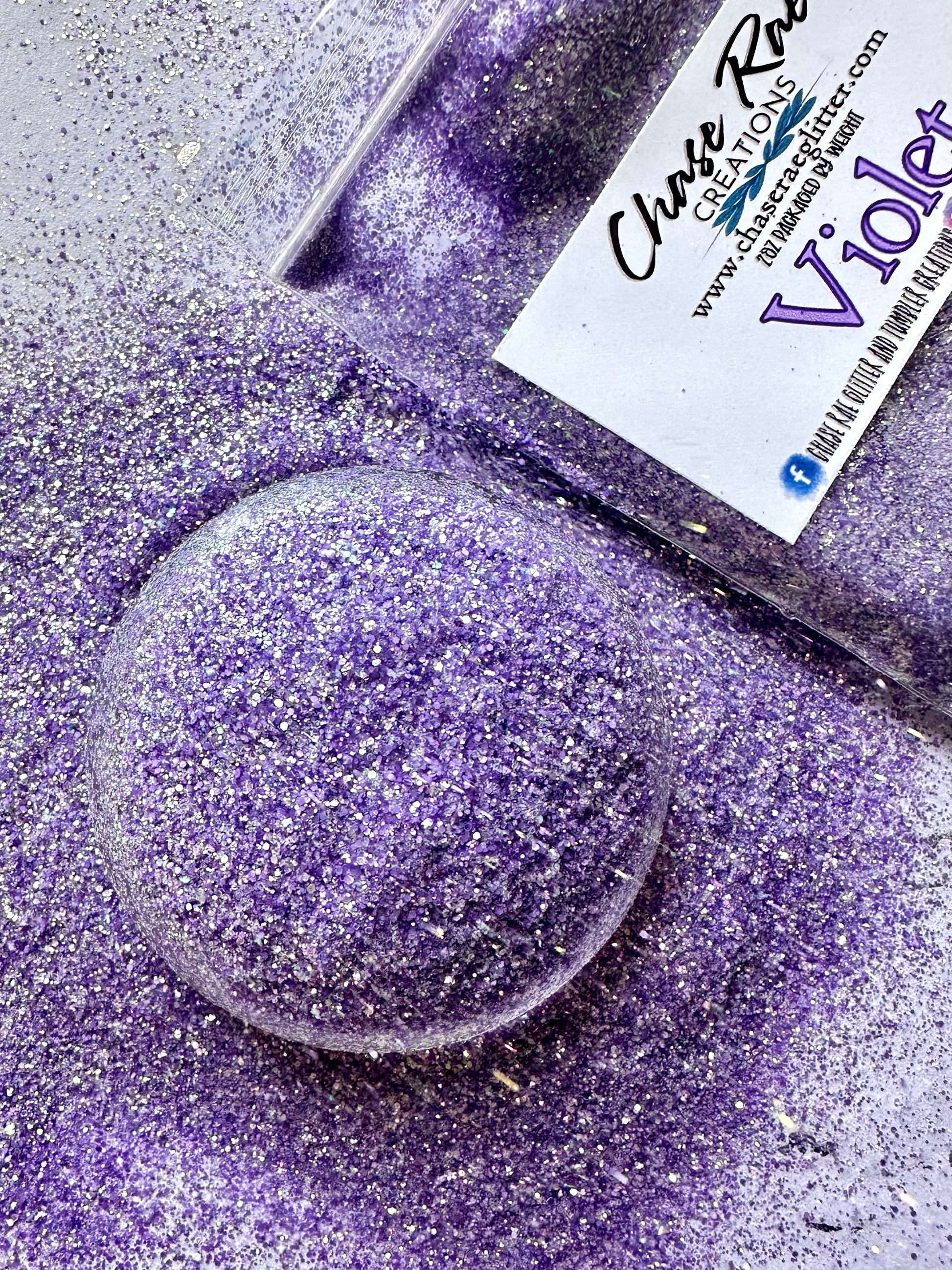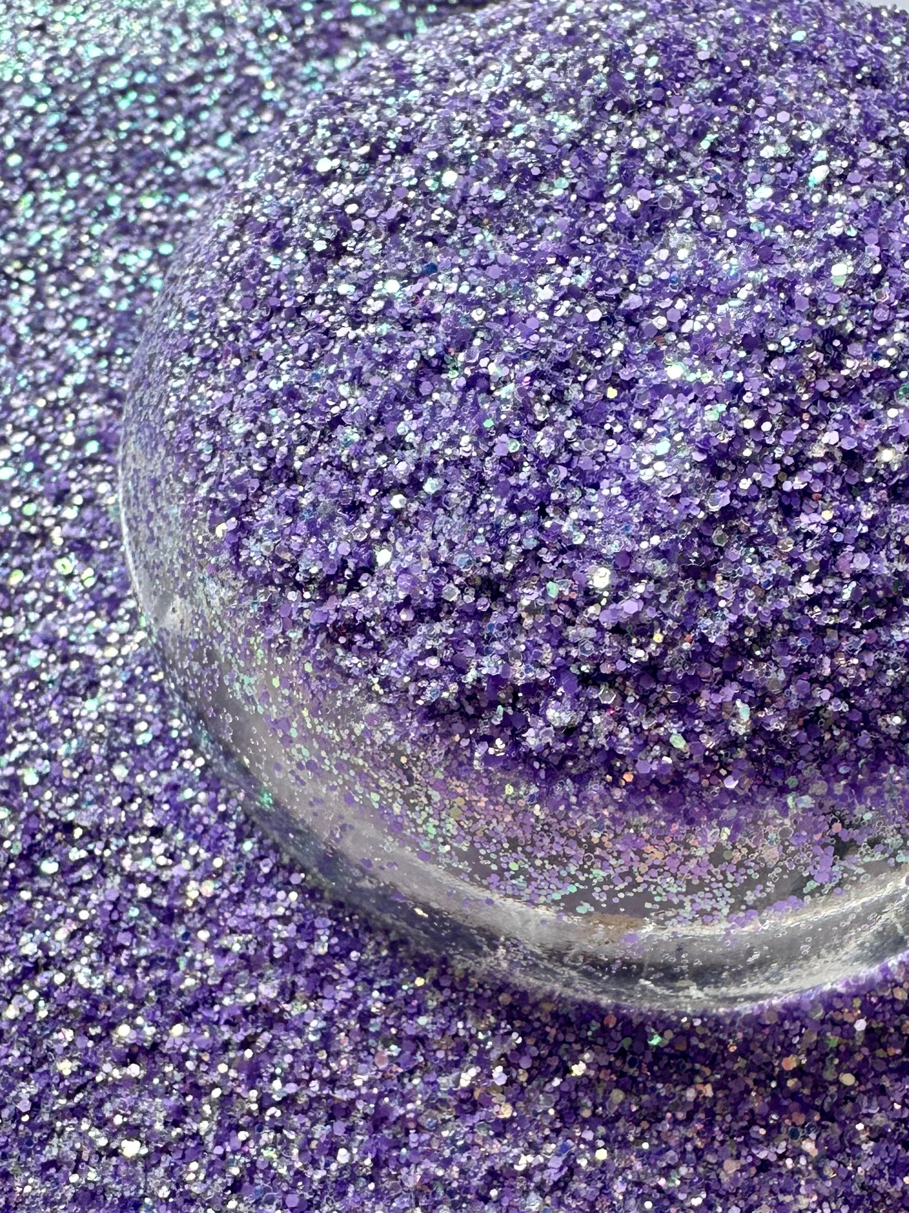 Violet is a semitransparent light purple glitter. This one has some solid pearl pieces and a beautiful rainbow iridescence with opals.