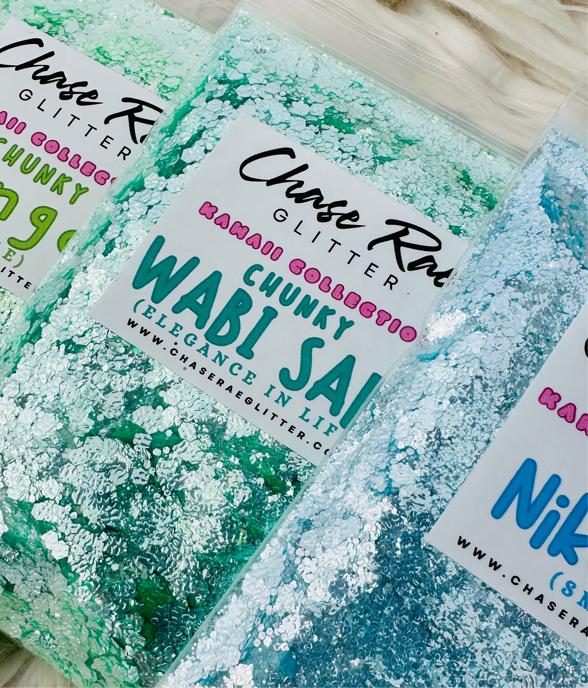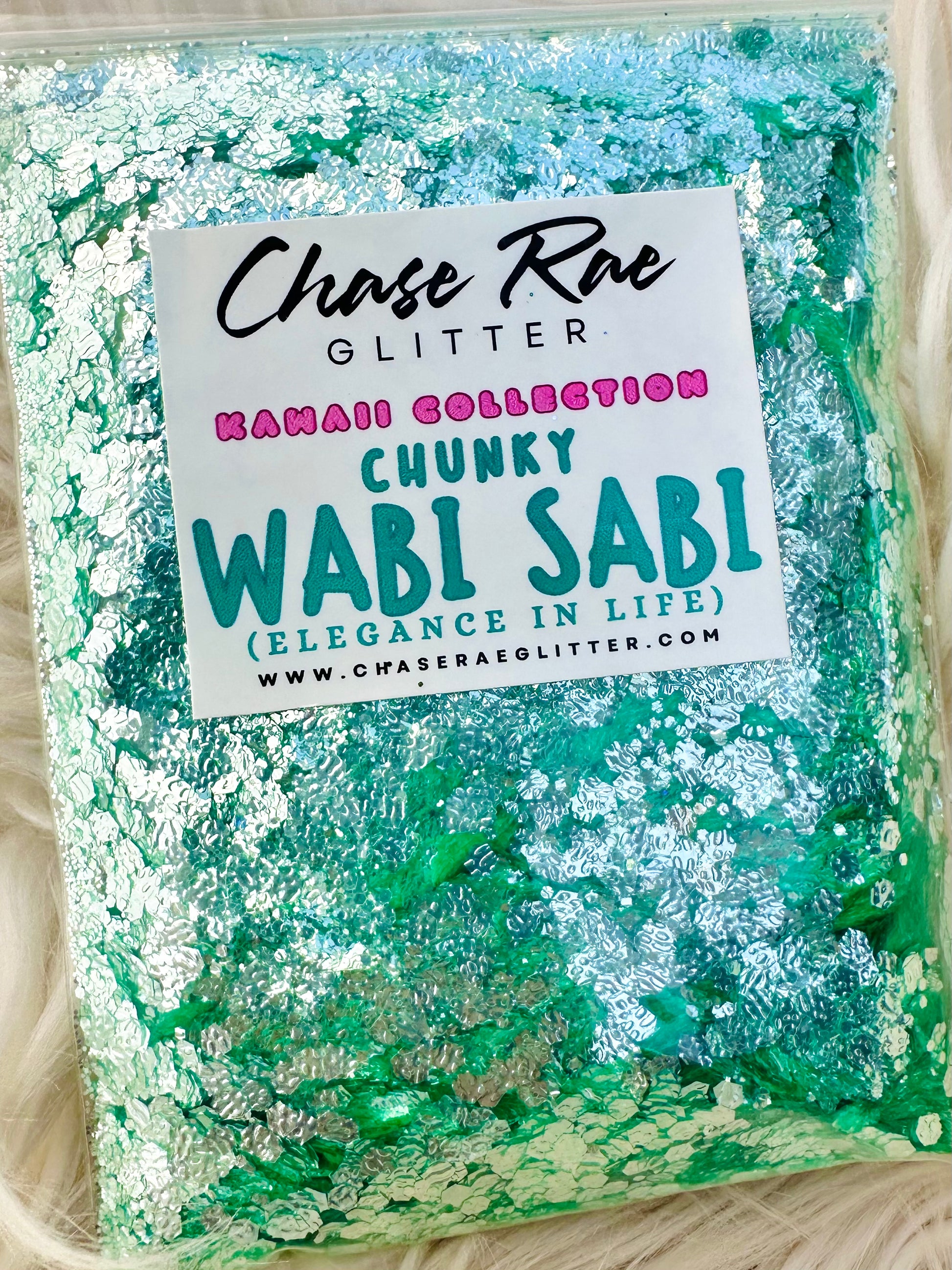 Wabi Sabi is a superior, high sparkle, glitter. The cutest jade green color, and sparkles like specks of diamonds. Has a mirror effect. Part of the Kawaii Collection