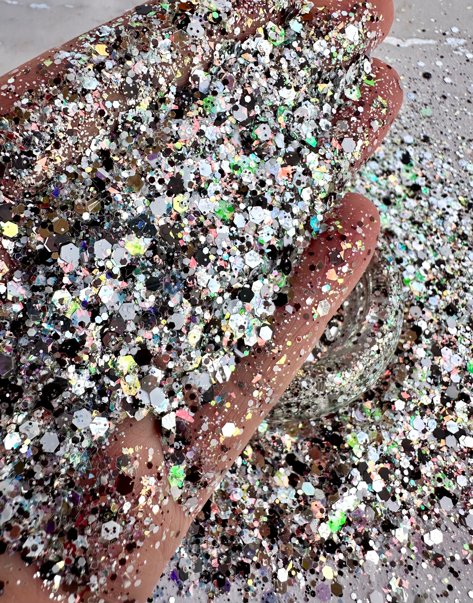 All photographed in natural light to depict the truest color of the glitter.