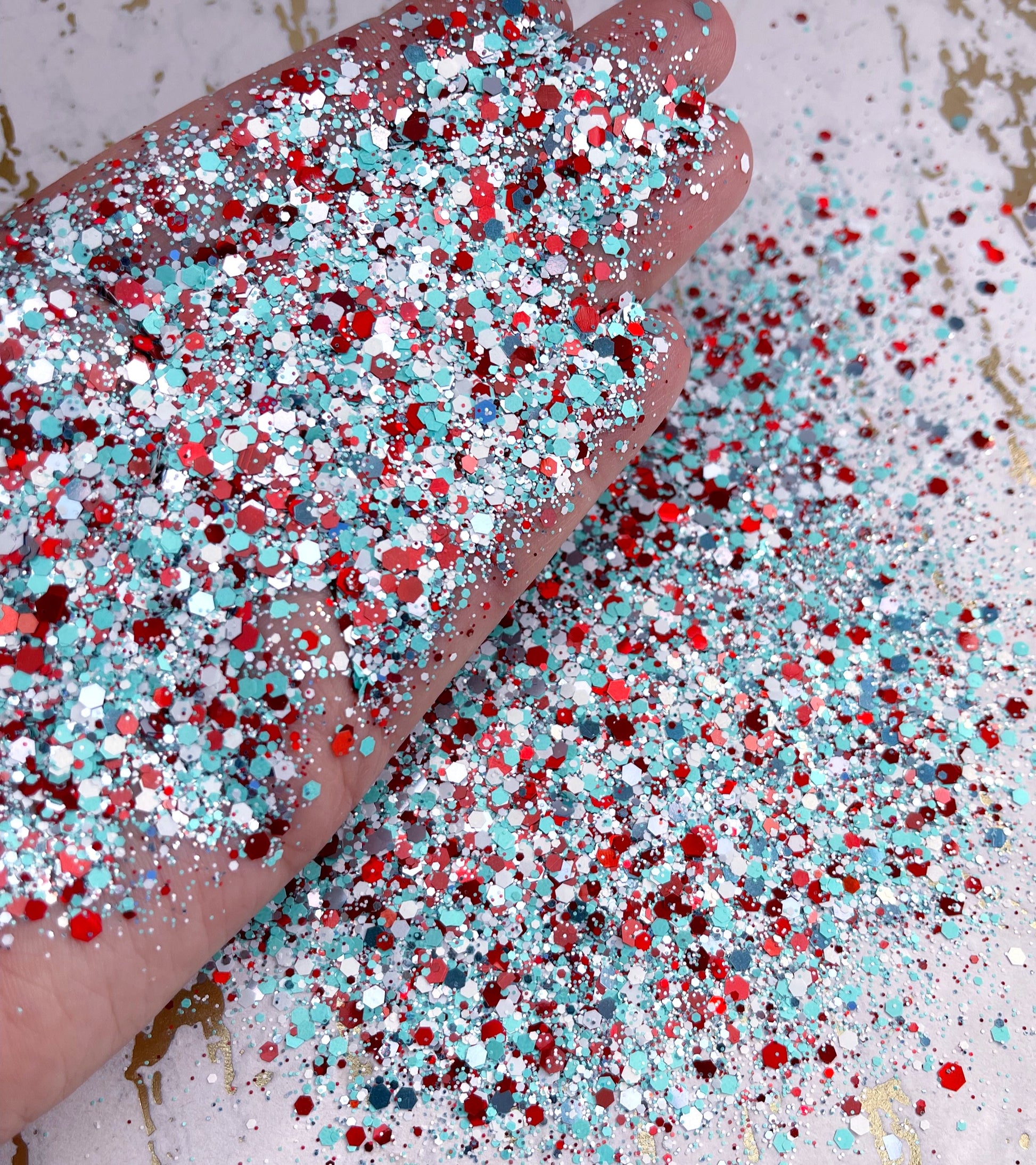Wintermint is a beautiful mix of teal, red, white and silver!