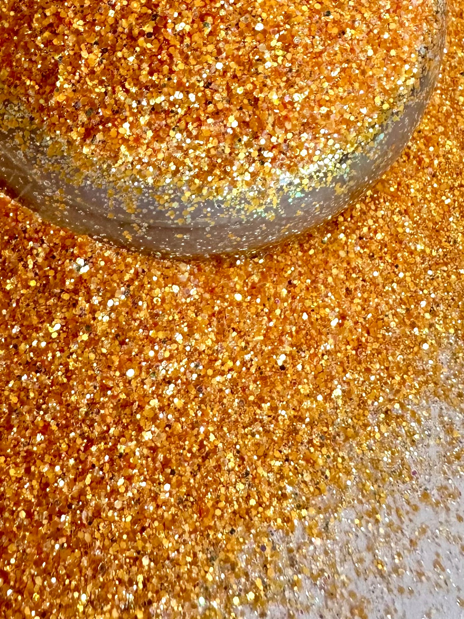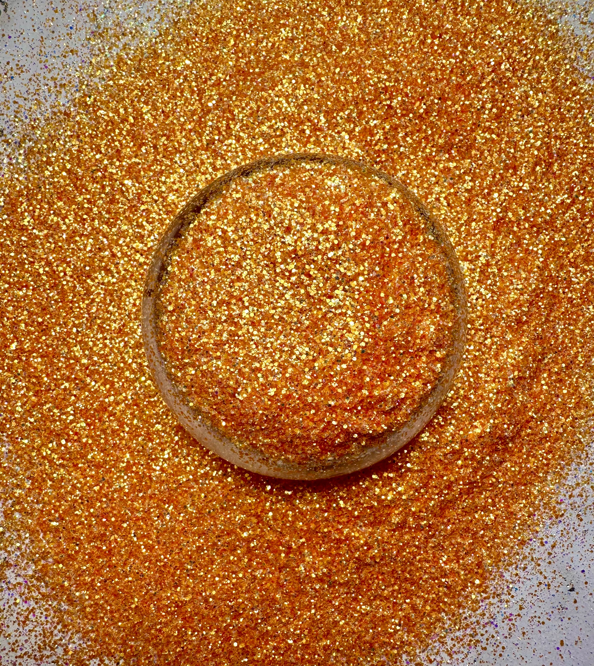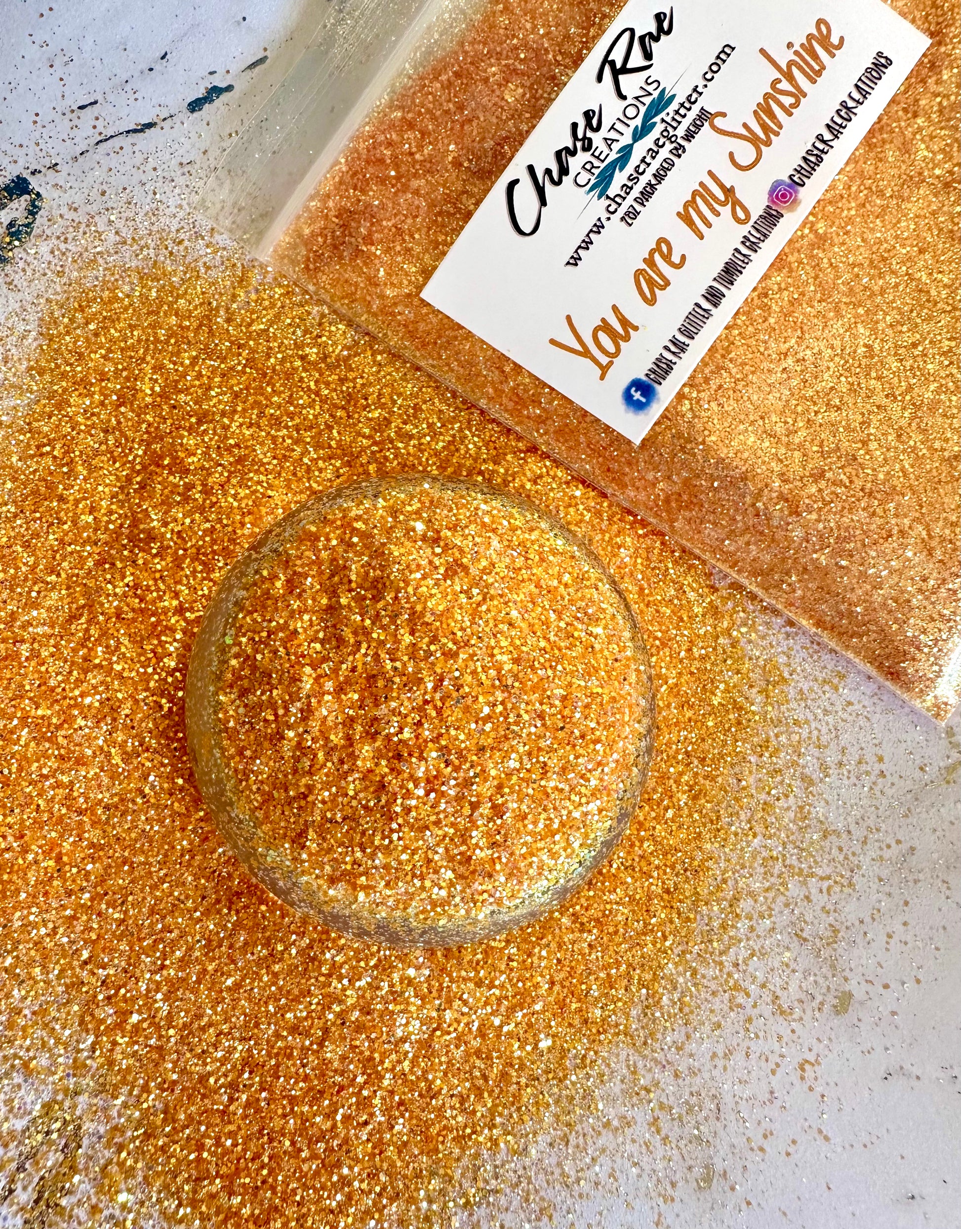 You are My Sunshine is a semi transparent soft orange glitter. This one has pearl shimmer and a beautiful rainbow iridescence.